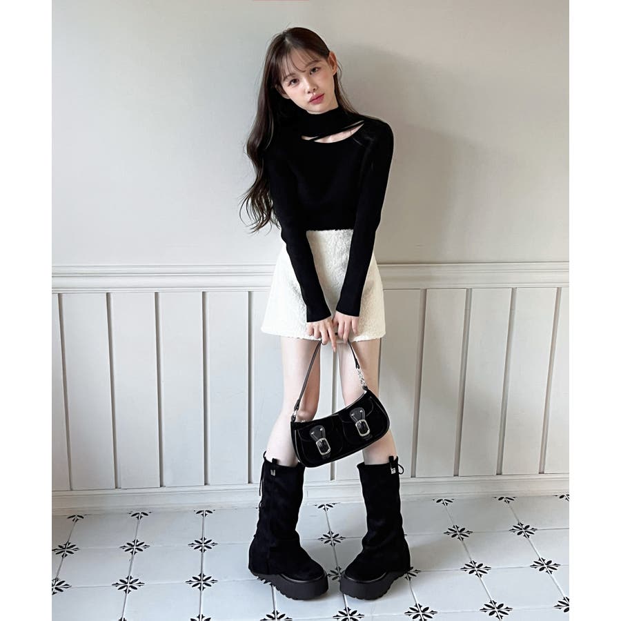 フロント中央に施されたカットアウトが、ほどよい色気とモードな雰囲気を添えてくれます。