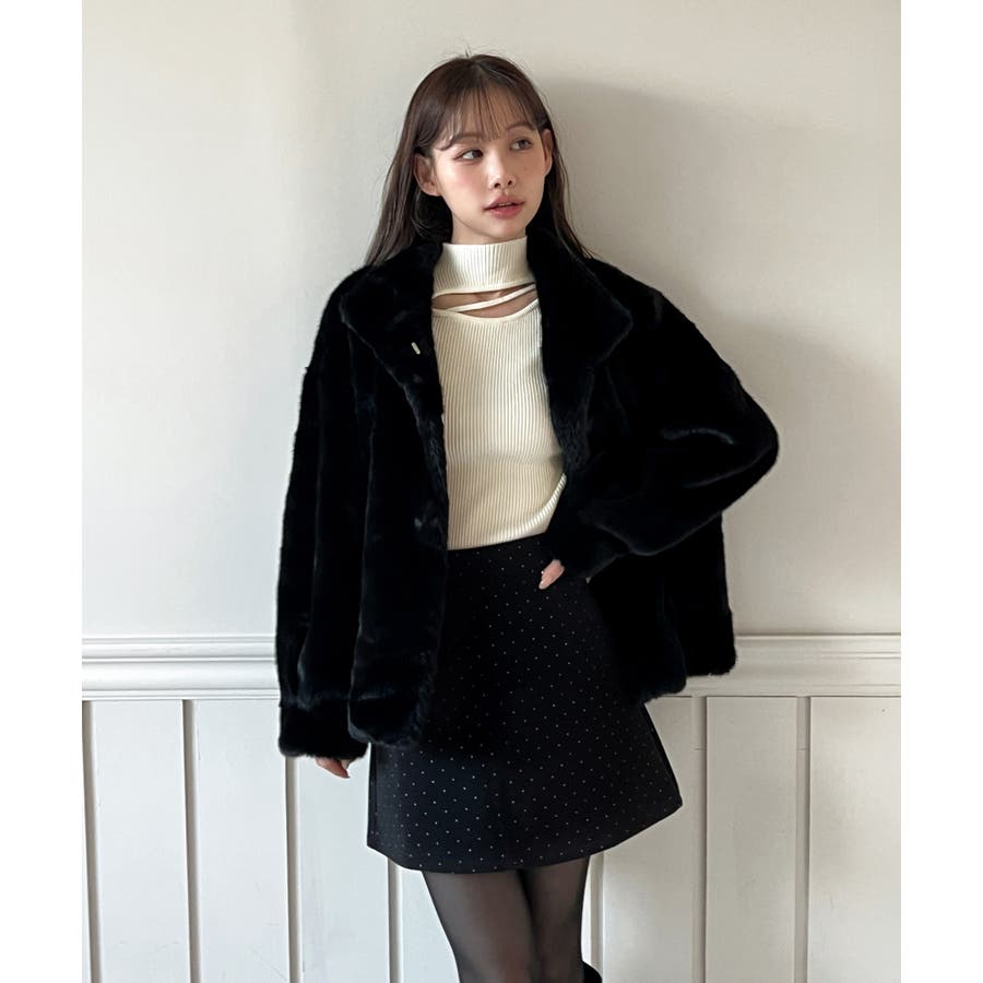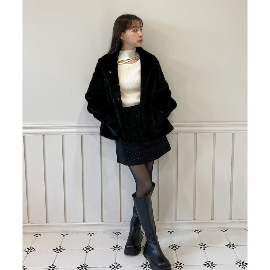 デートルック → レザースカートやフレアスカートと合わせると、フェミニンムードがさらにアップ