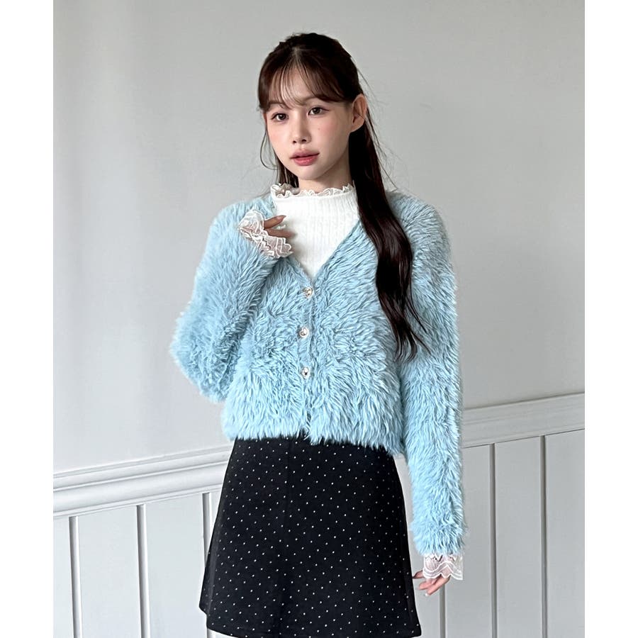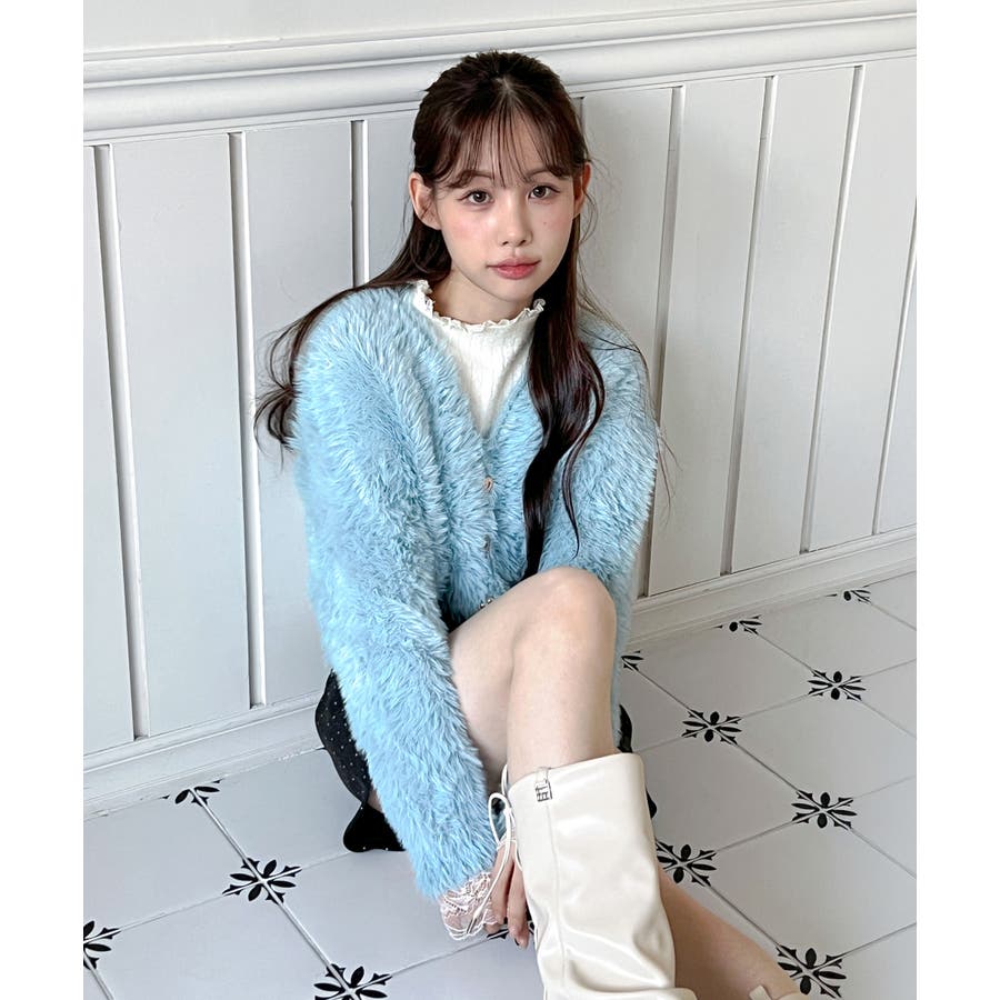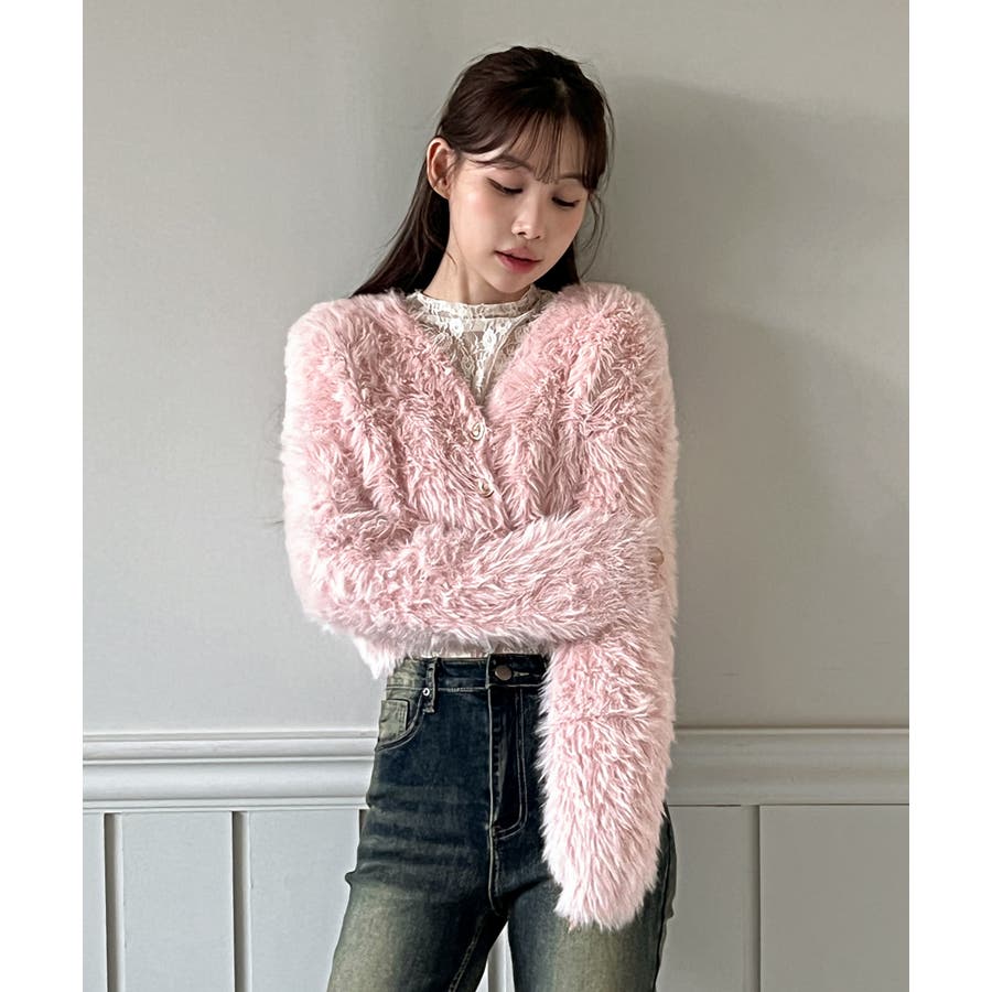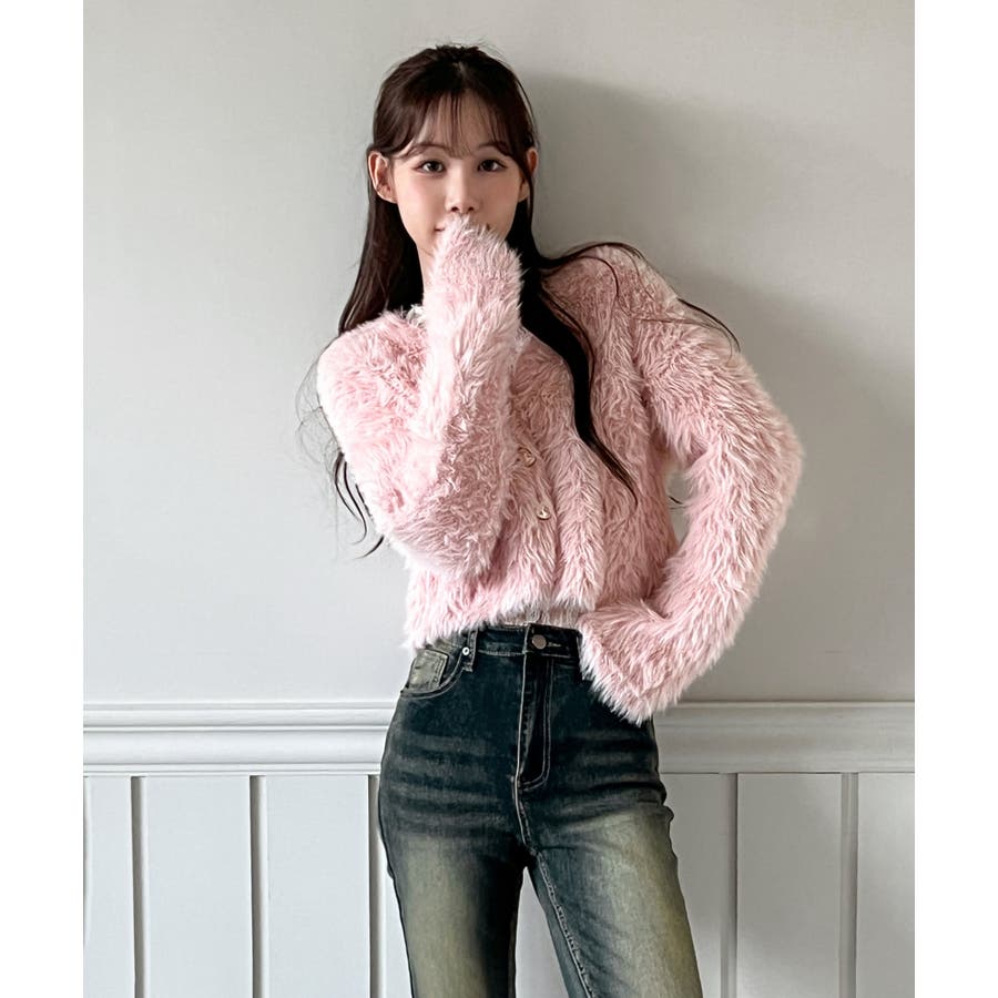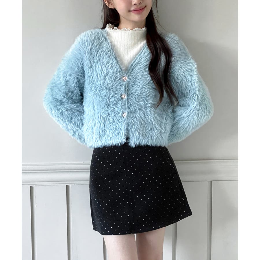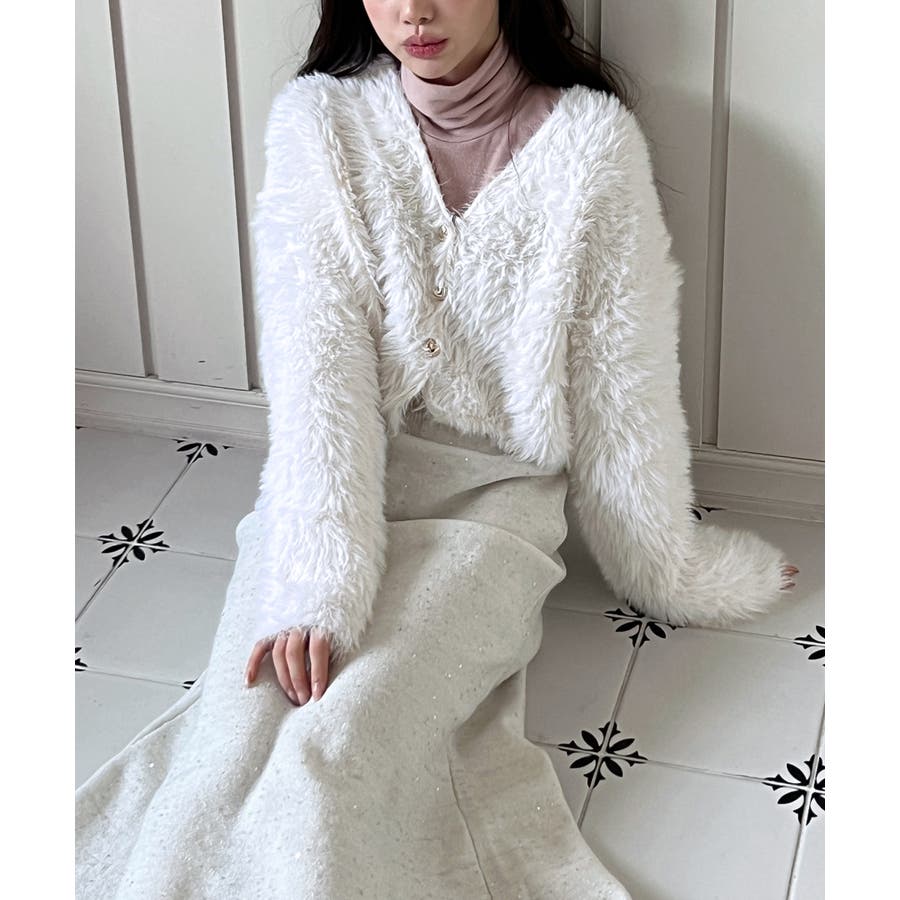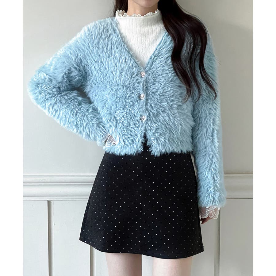 ふわふわで柔らかな質感が魅力の、ハートキュービックファー ニットカーディガン。