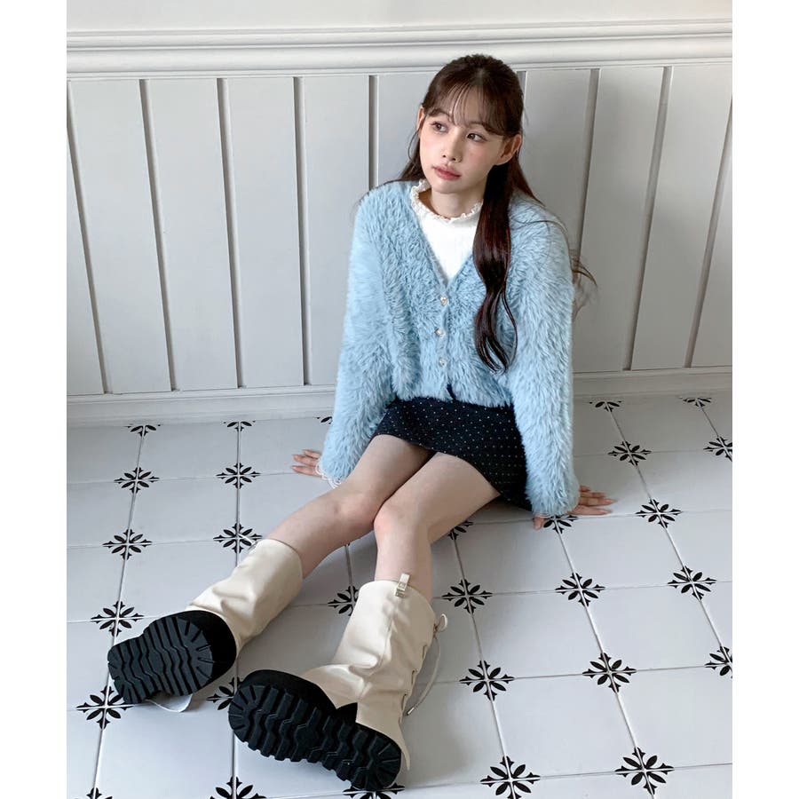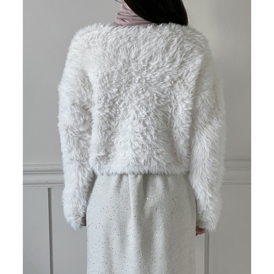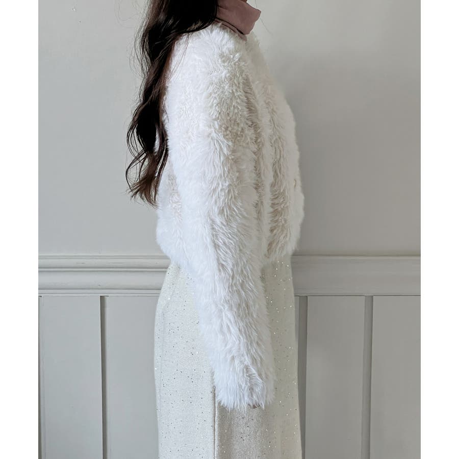 ふんわりとしたボリューム感のあるファーライクな素材で、あたたかく優しい着心地