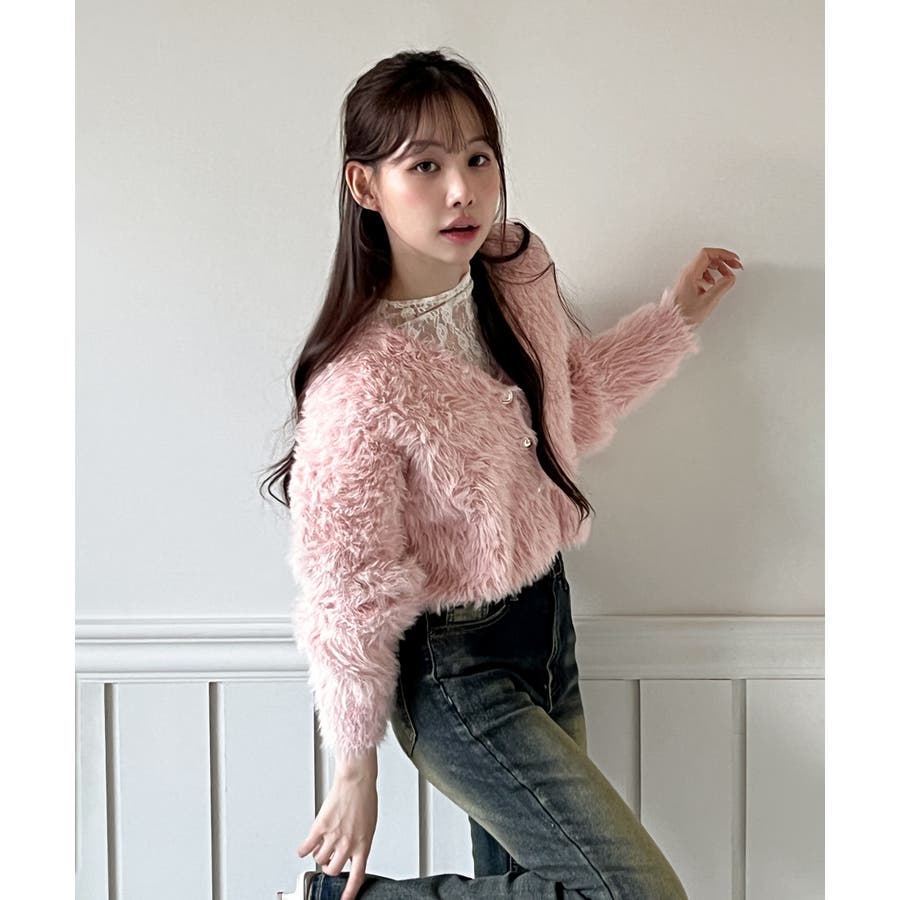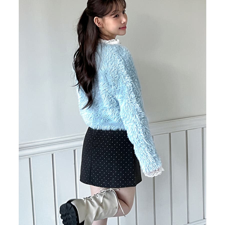 身体をやさしく包み込むファーライクニットで、軽やかで快適な着心地です。