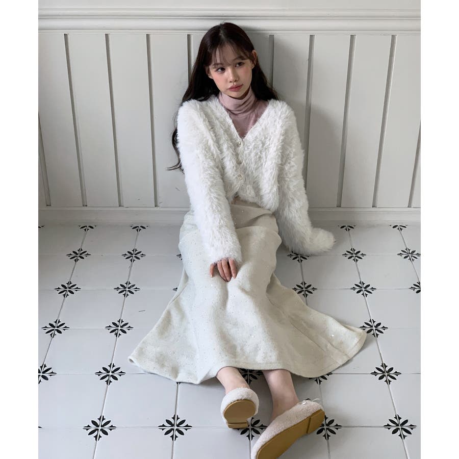 冬のA/Wスタイリングに、華やかで可愛らしいアクセントを添えてくれる一着です。