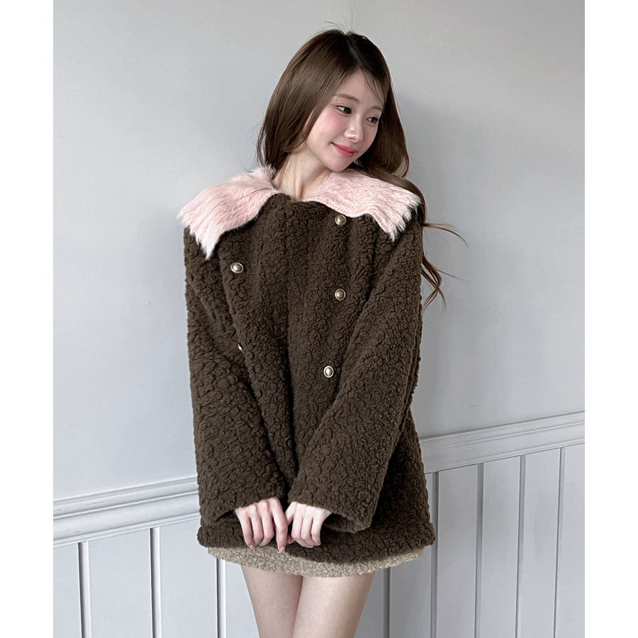 FLUFFY COLLAR BUTTON KNIT CARDIGAN