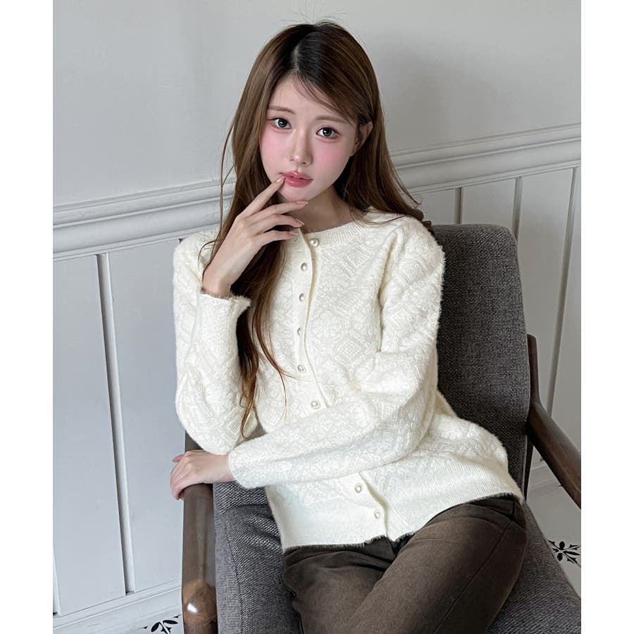 【着用動画あり 2色展開】クラシックパールニットカーディガン 2025