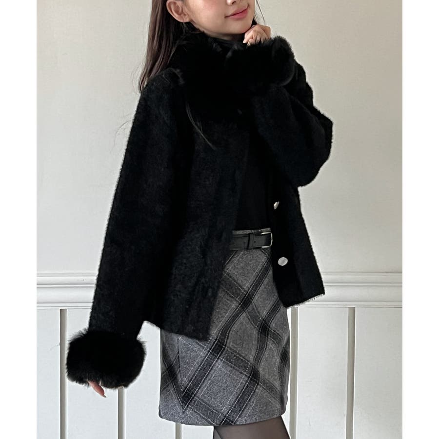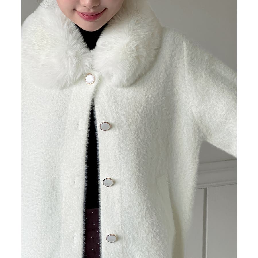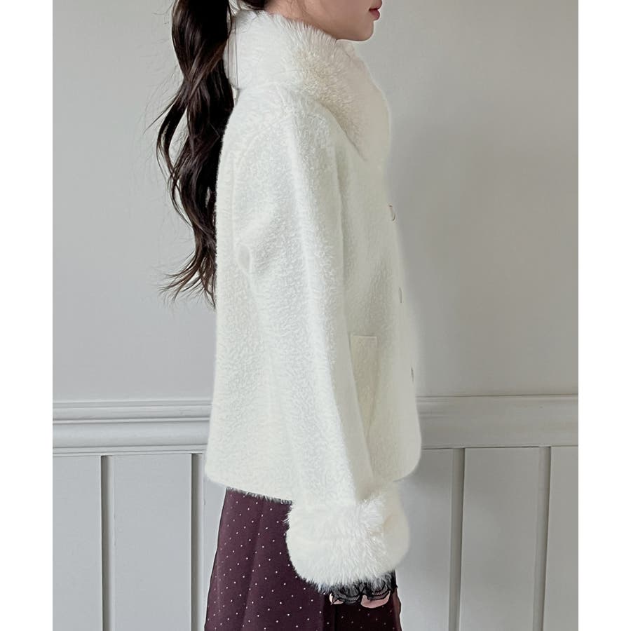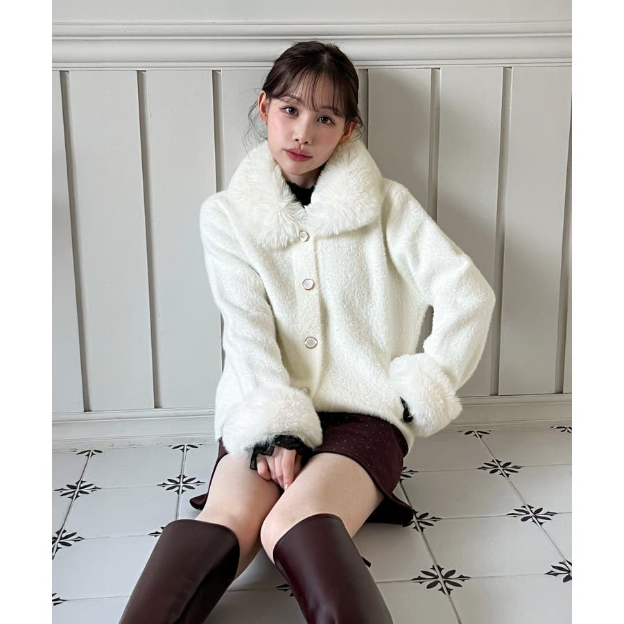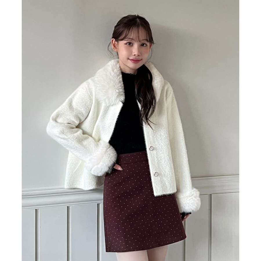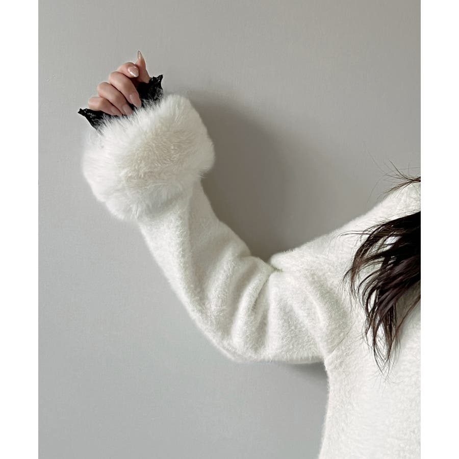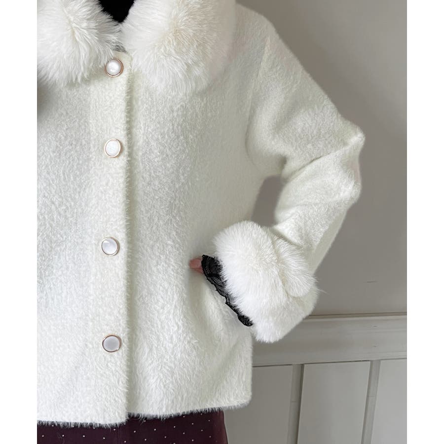 柔らかなニット素材にファートリミングをあしらったショートコート。