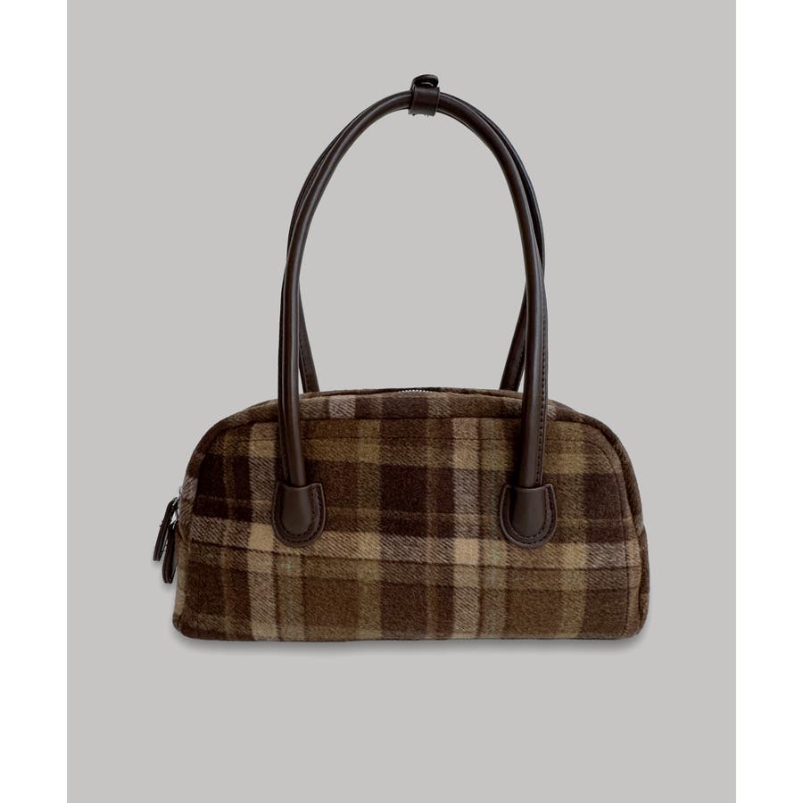 あたたかみのあるクラシックな雰囲気が魅力の、ウィンターチェック ボストンバッグ。