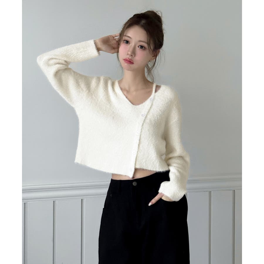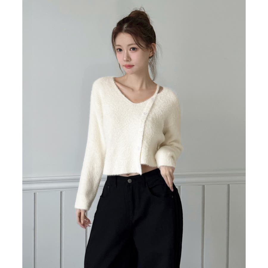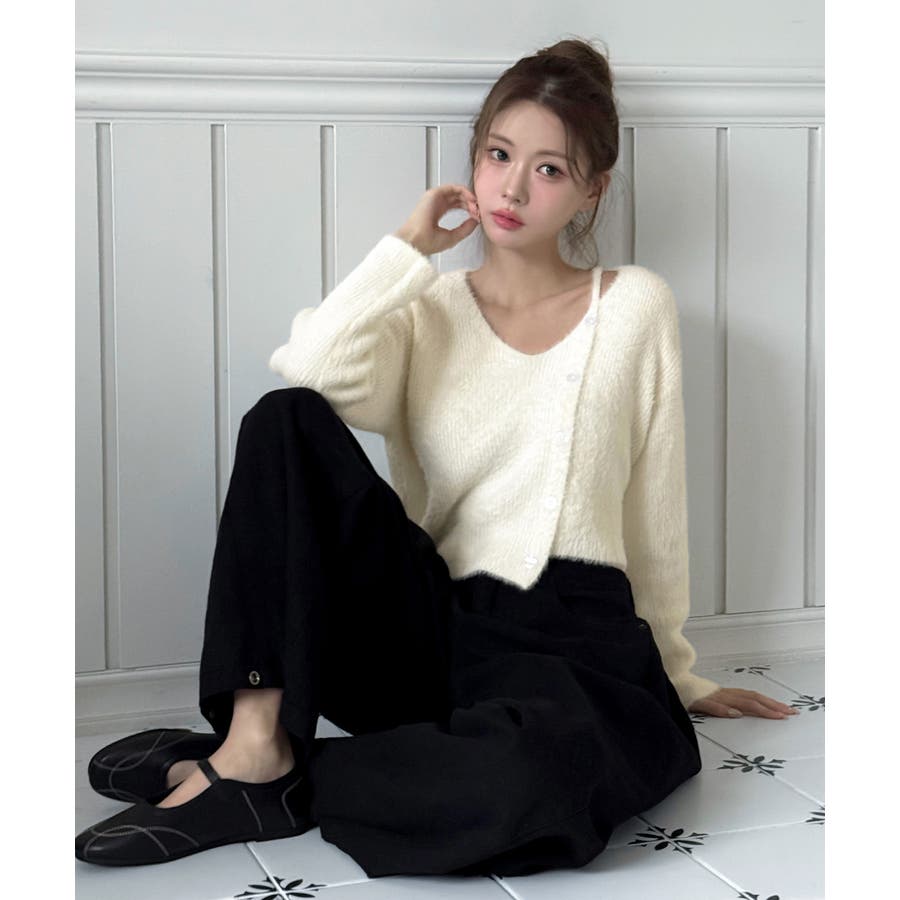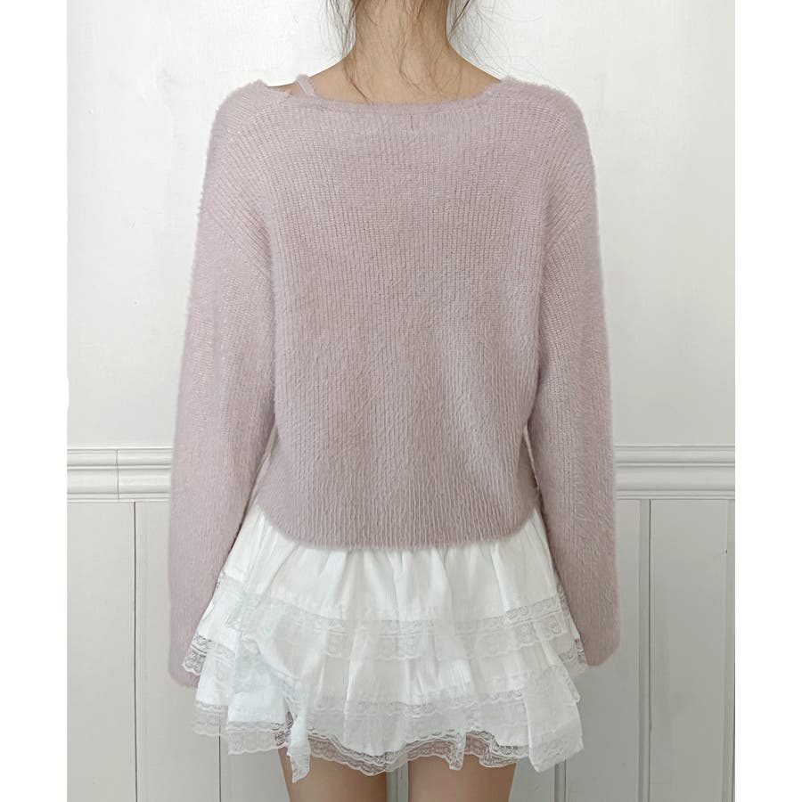 やわらかなファーテクスチャーが魅力のニットトップス。