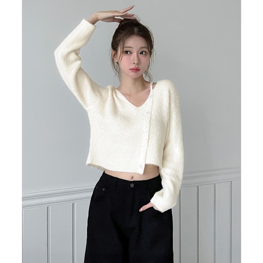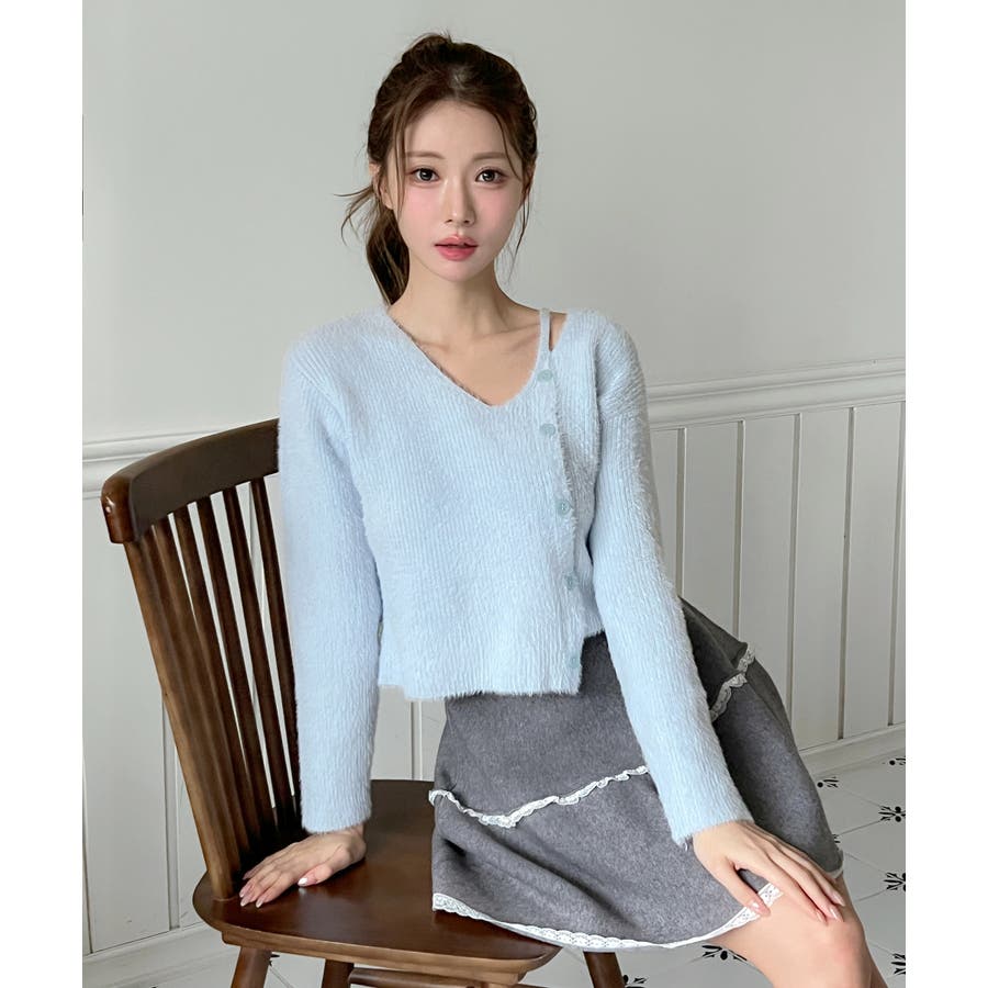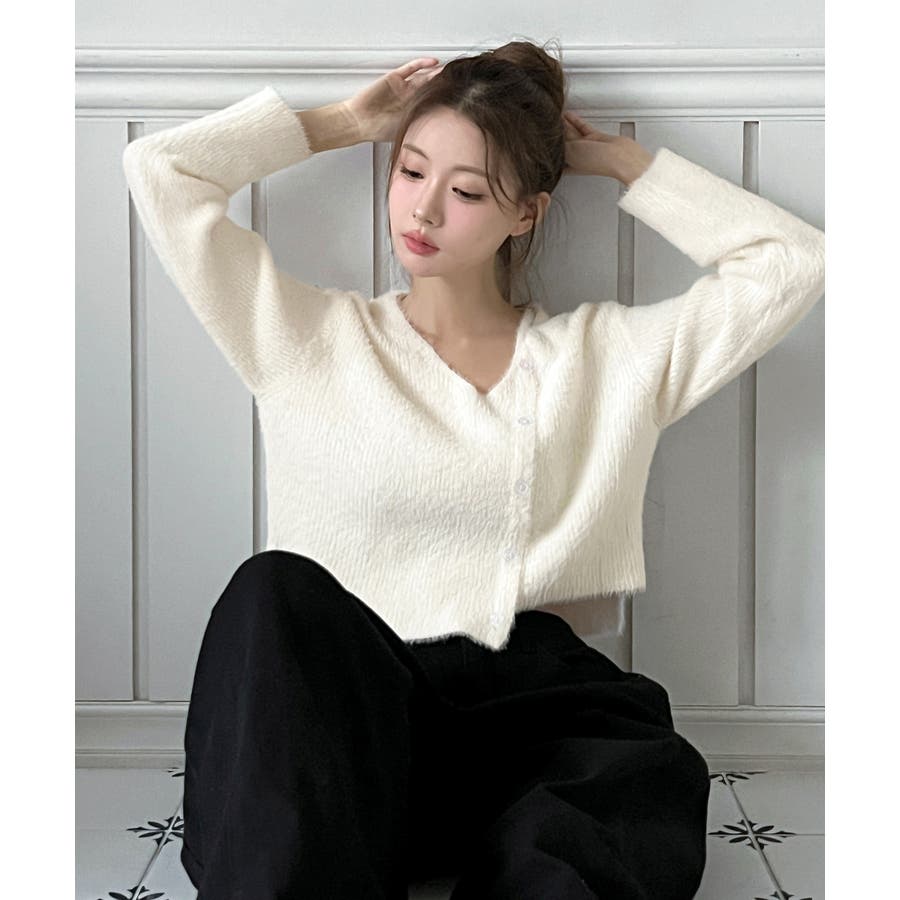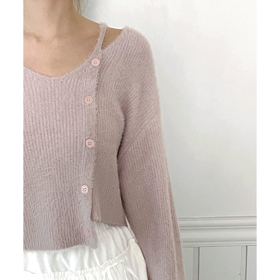 やわらかなファーテクスチャーが魅力のニットトップス。