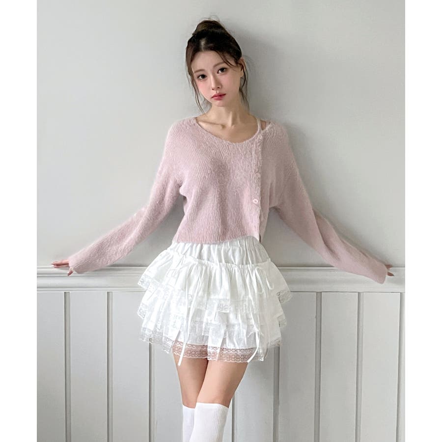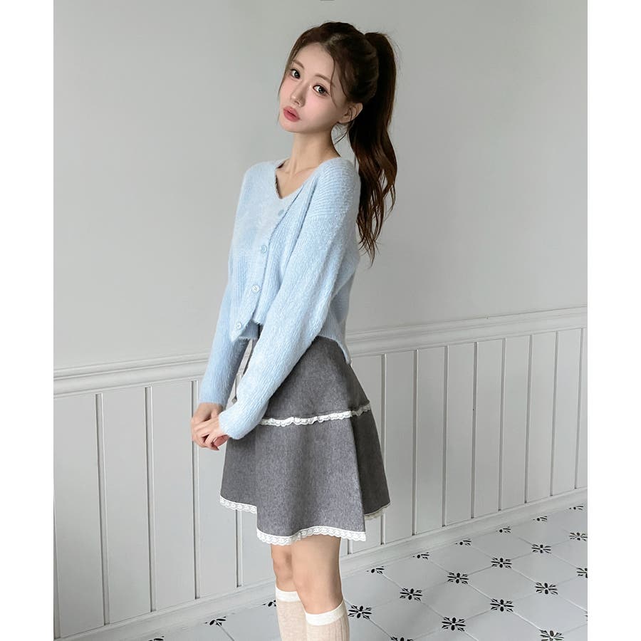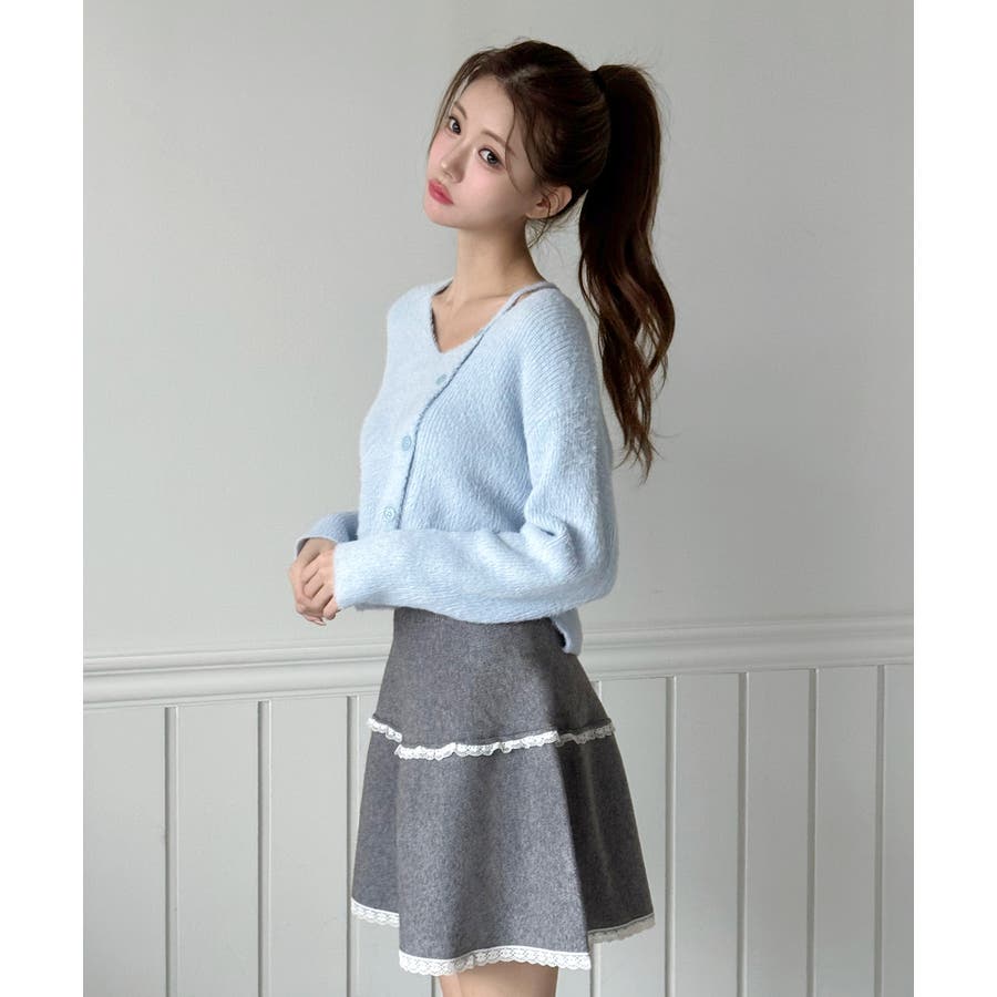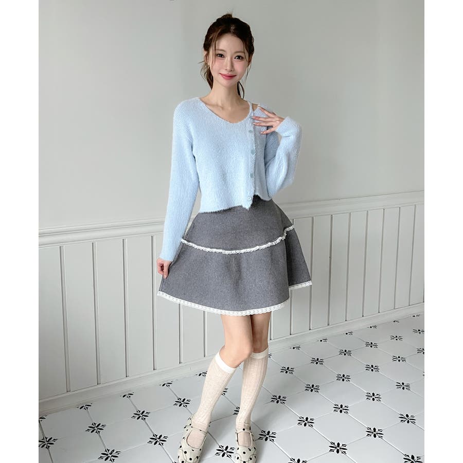 ラブリールック → ミニスカートと合わせて、やわらかくフェミニンなムードに