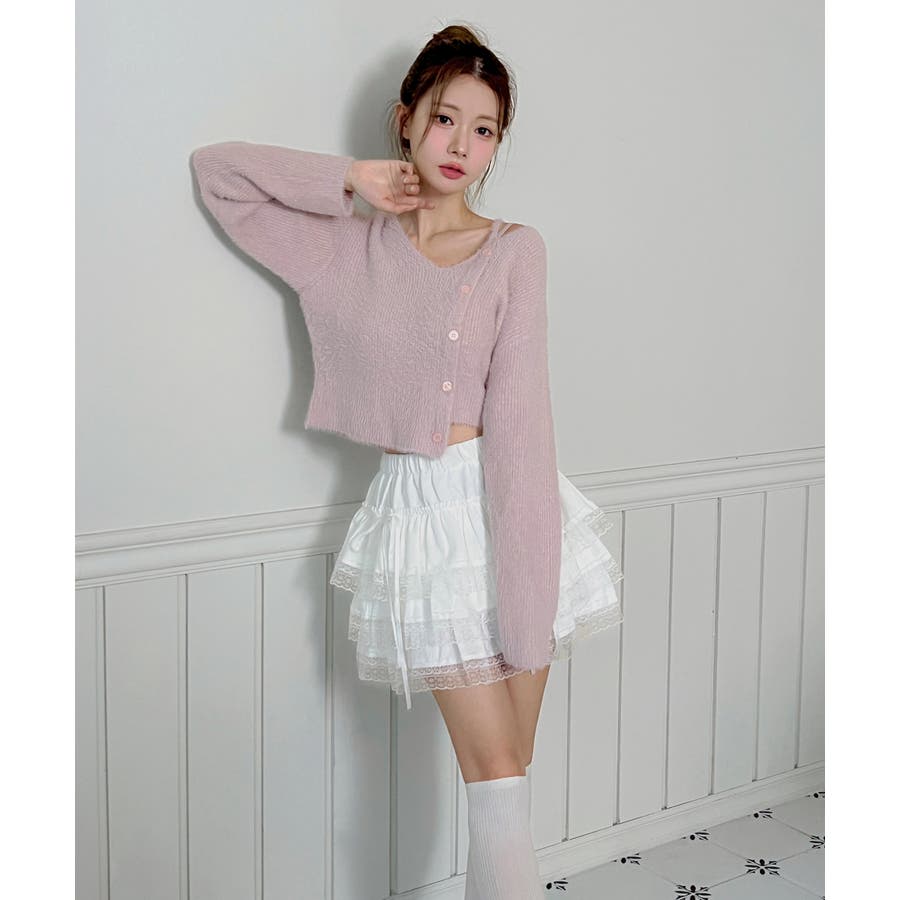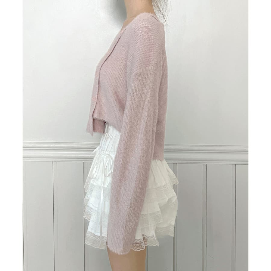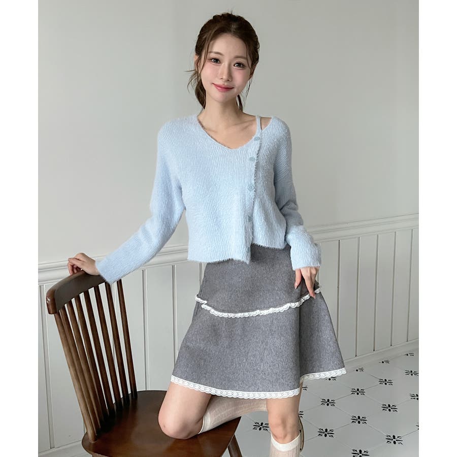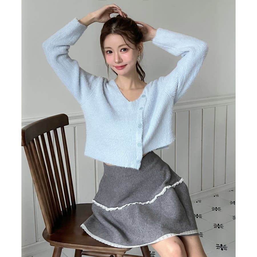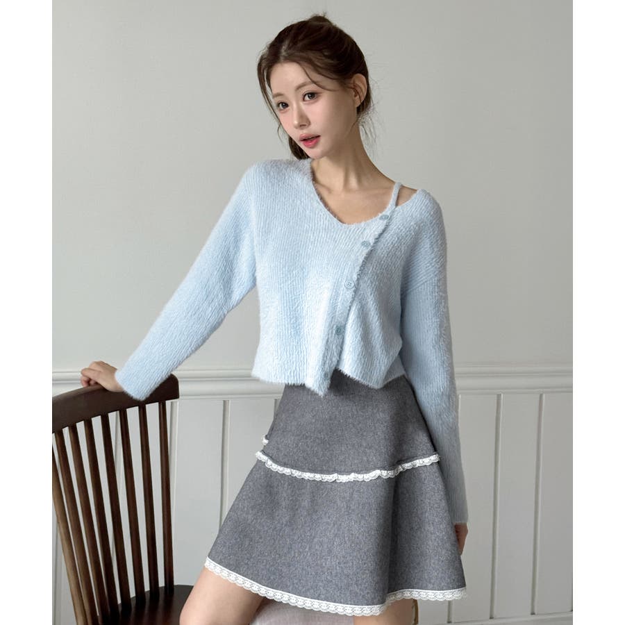 ラブリールック → ミニスカートと合わせて、やわらかくフェミニンなムードに