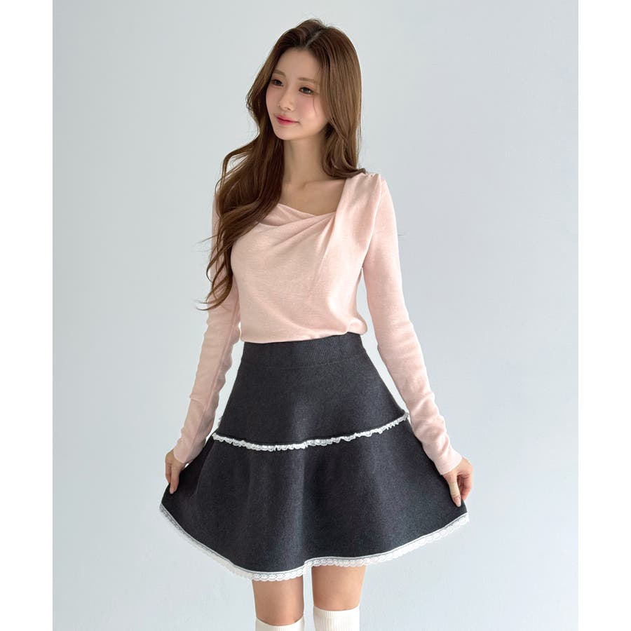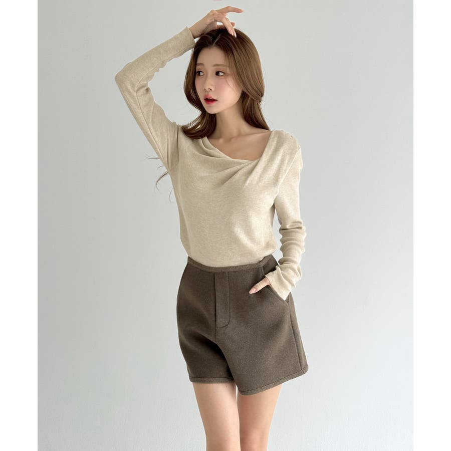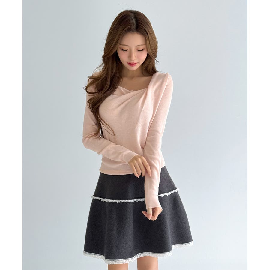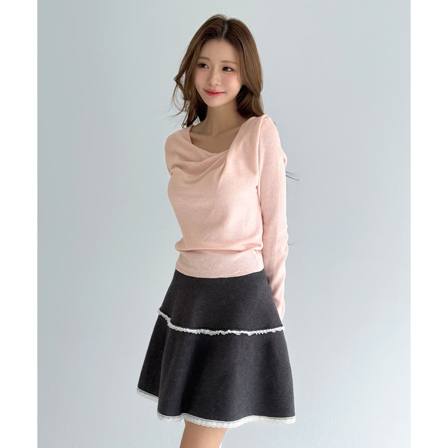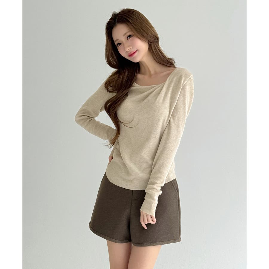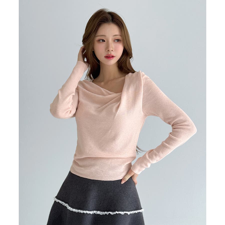 自然に落ちるドレープディテールが魅力のニットトップです。