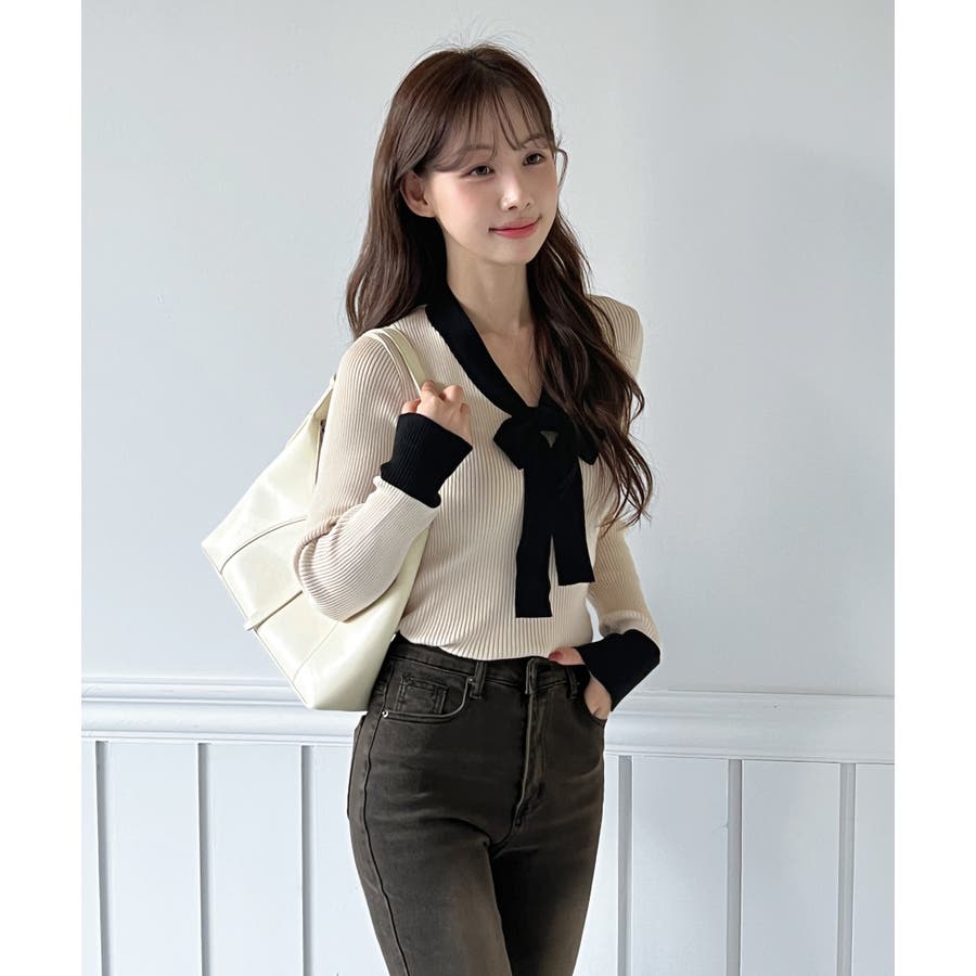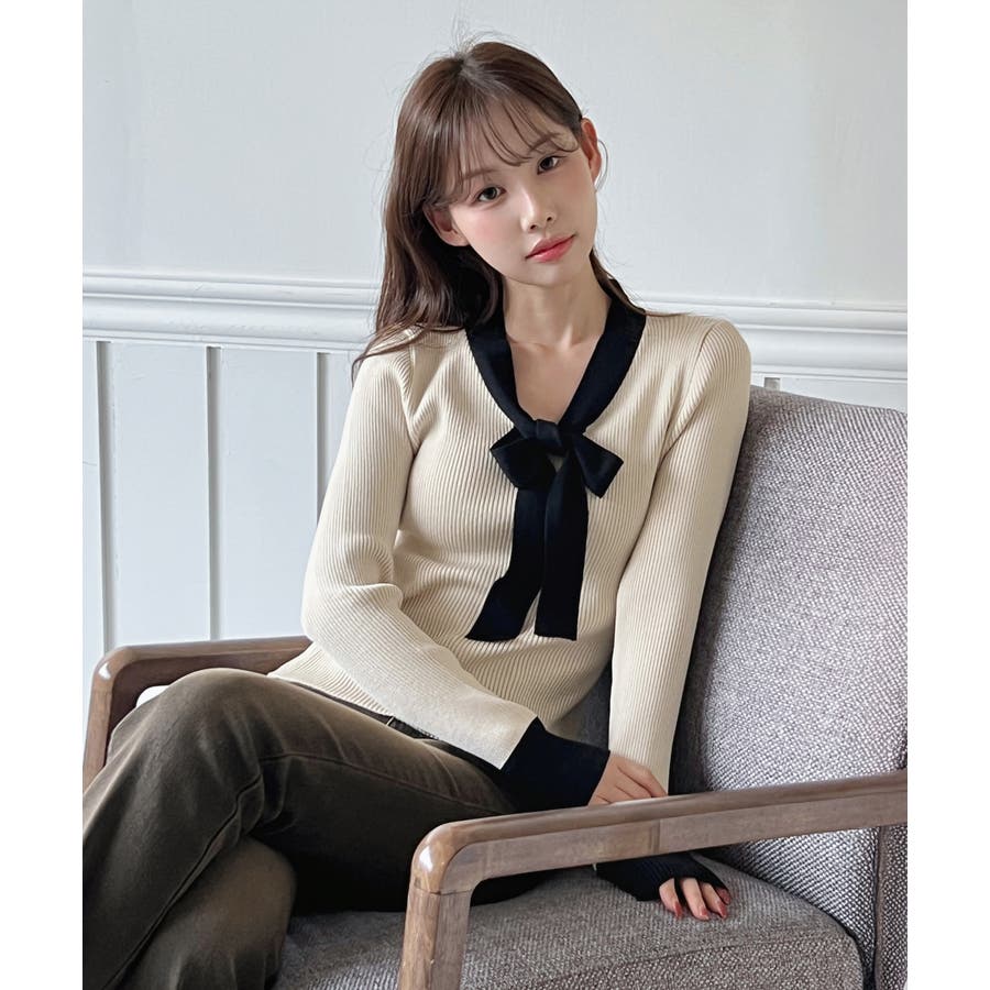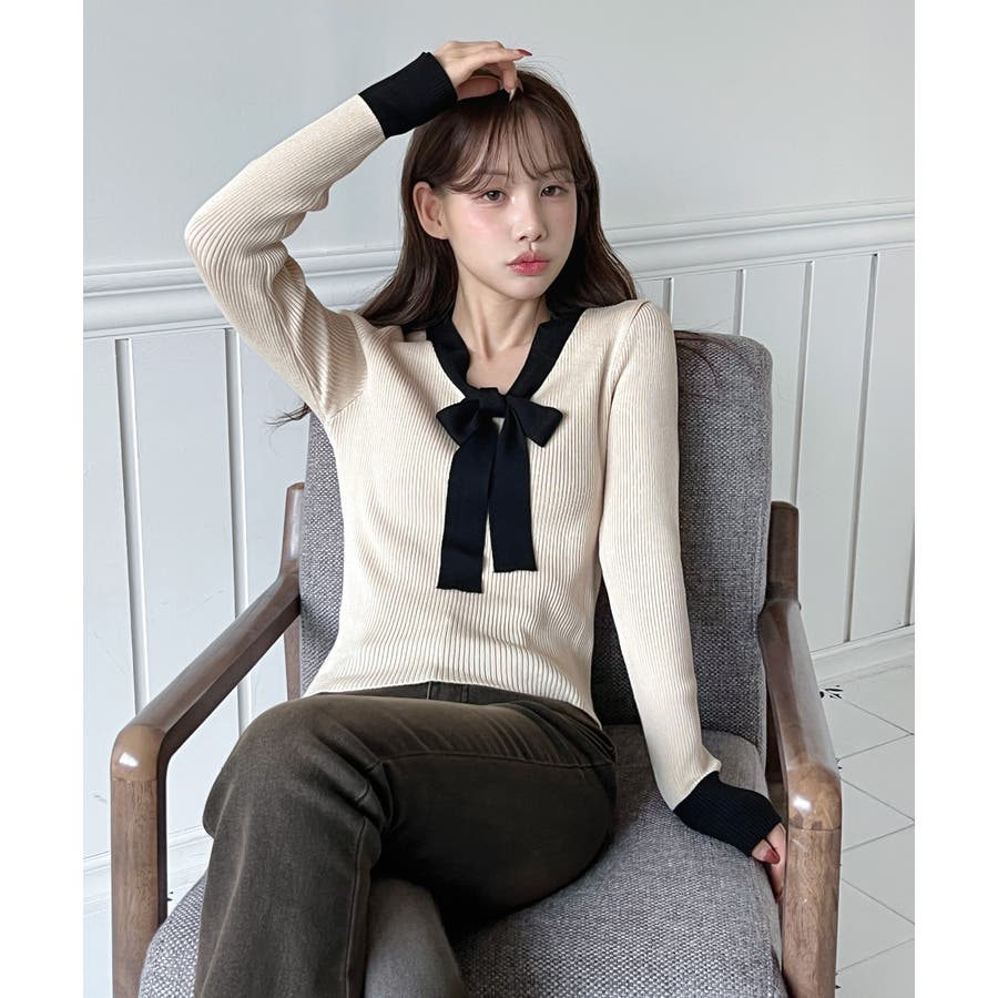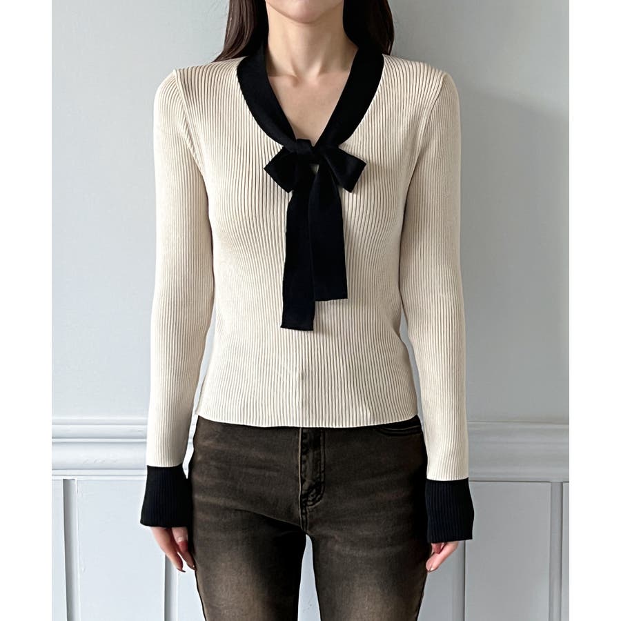 【2WAY】リボンタイ配色リブニット/2026 SS COLLECTION