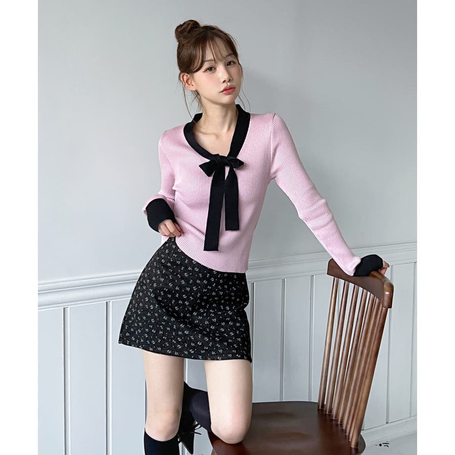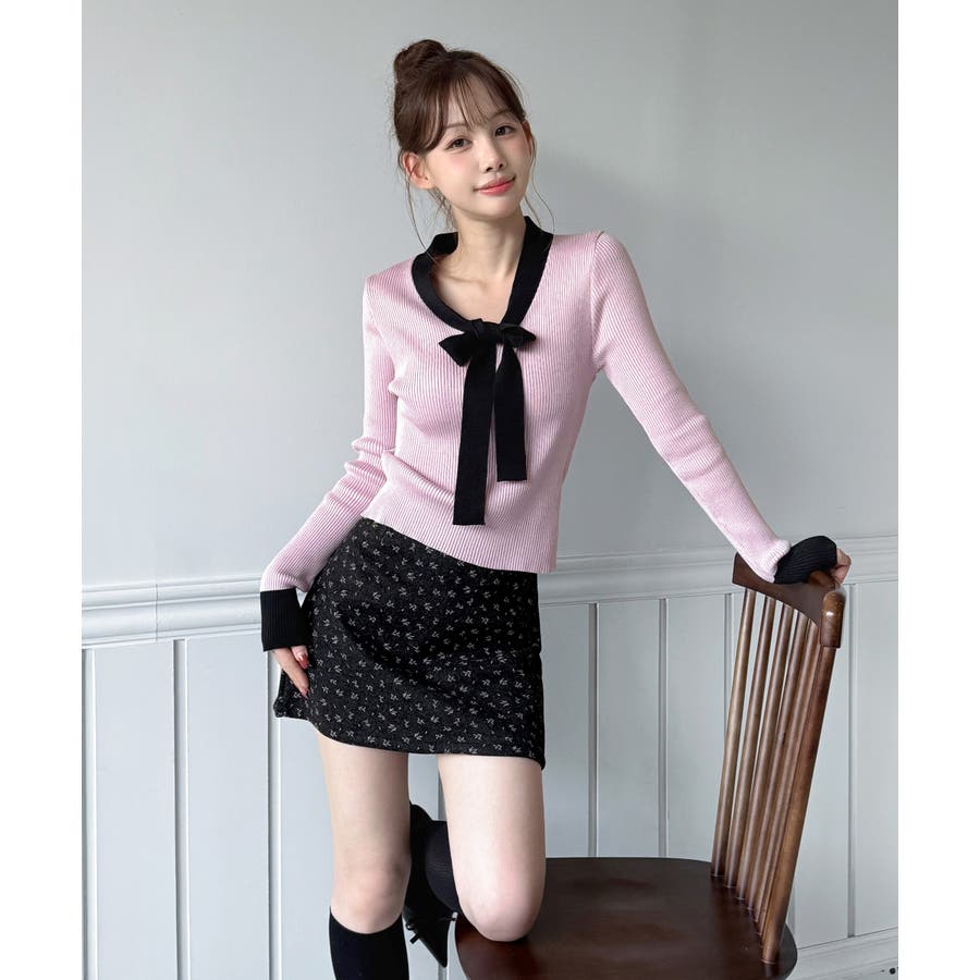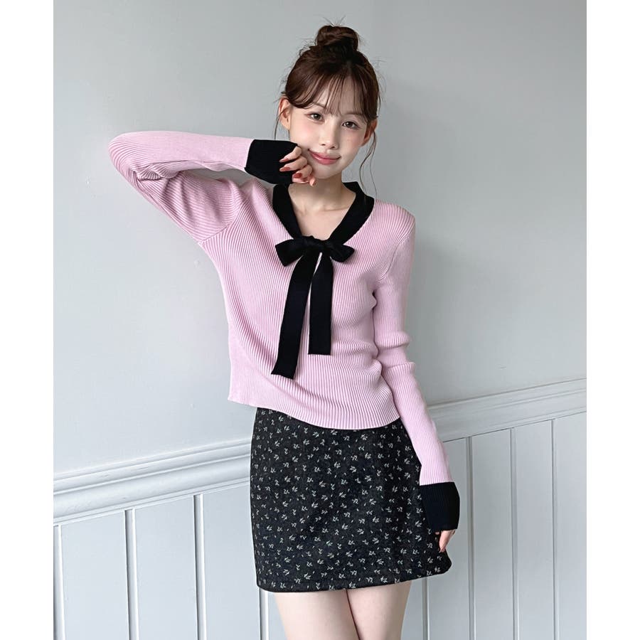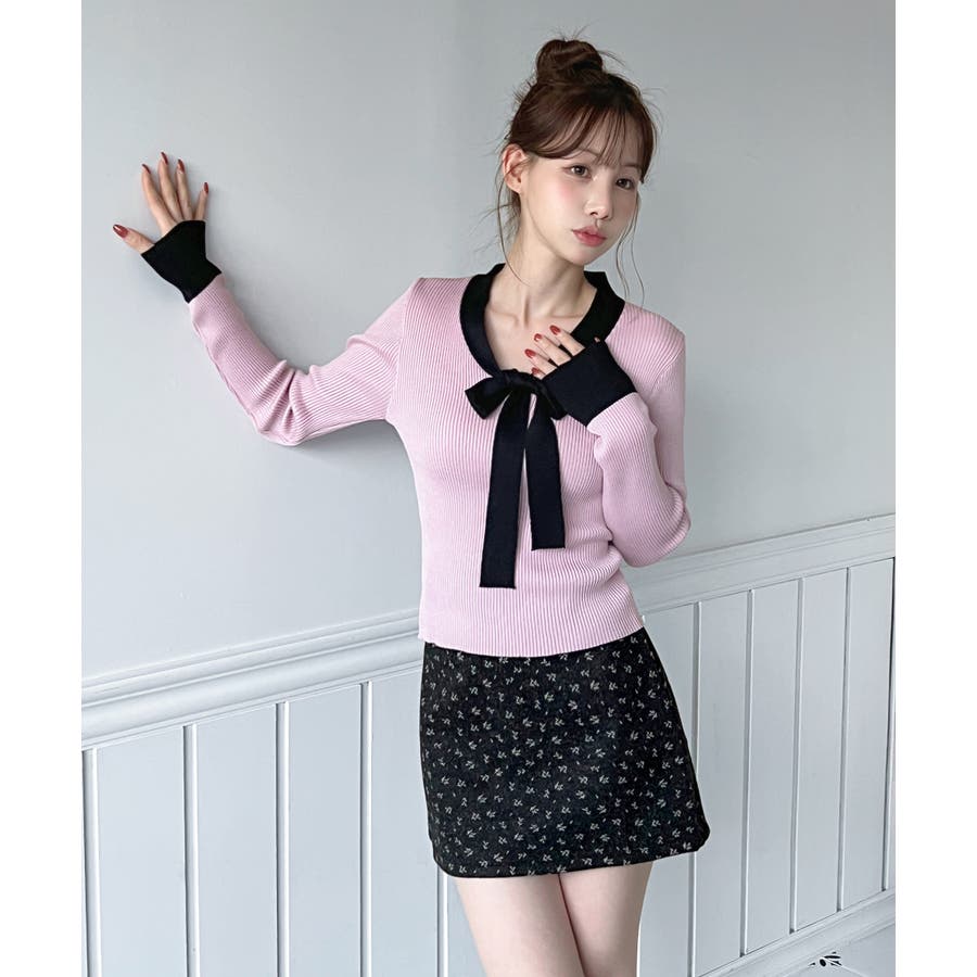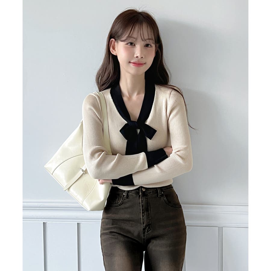 【2WAY】リボンタイ配色リブニット/2026 SS COLLECTION