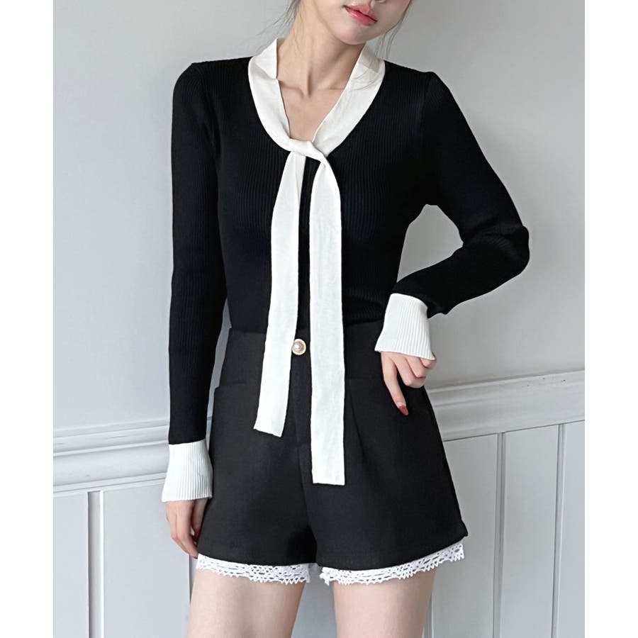【2WAY】リボンタイ配色リブニット