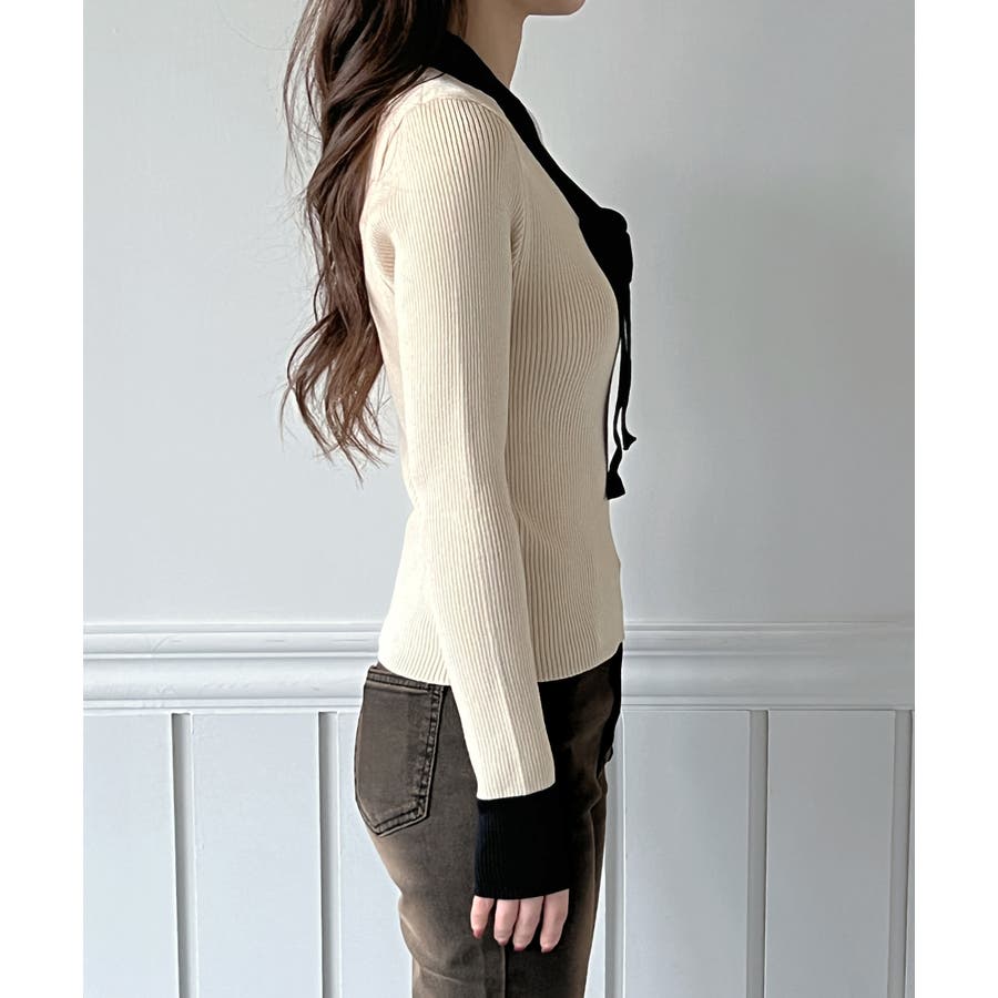 【2WAY】RIBBON TIE CONTRAST RIBBES KNIT