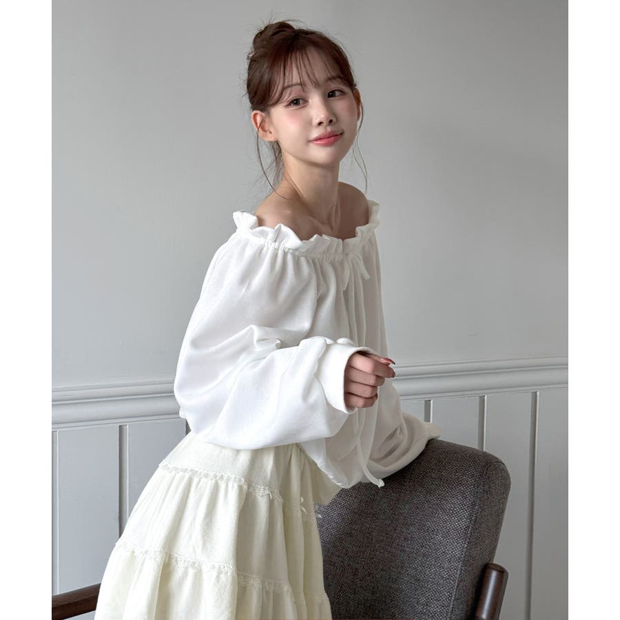 オフショルダーで着用すれば、フェミニンで華奢なムードを演出し、
