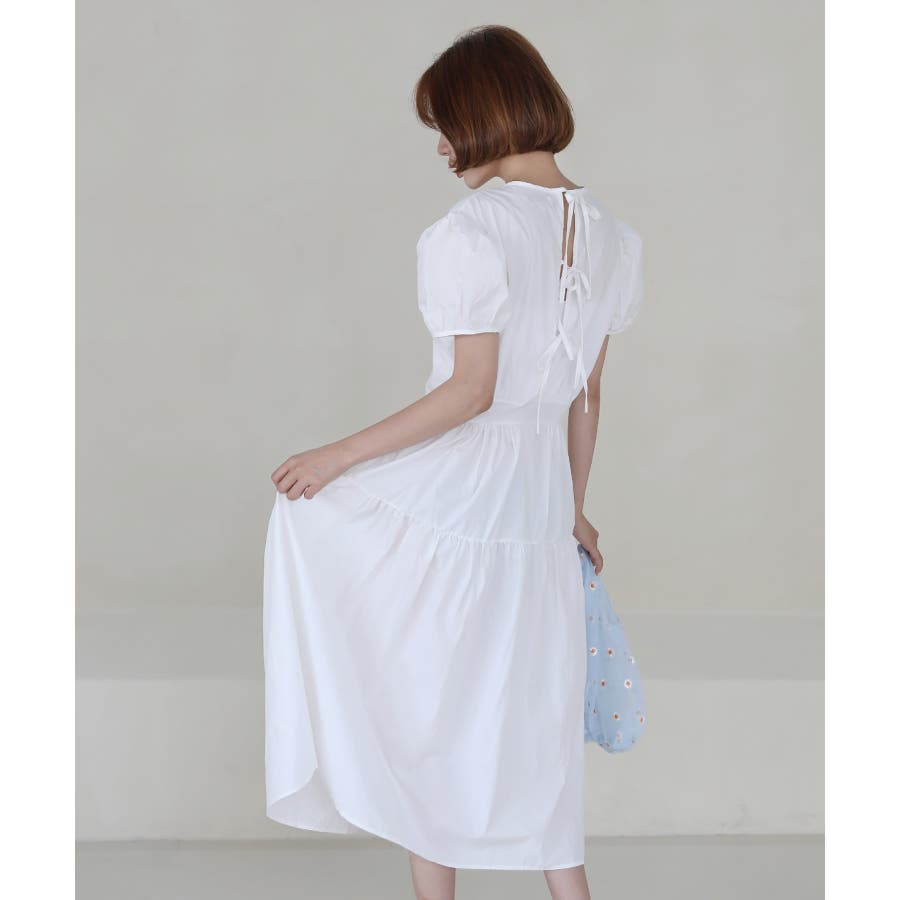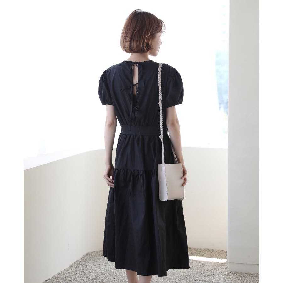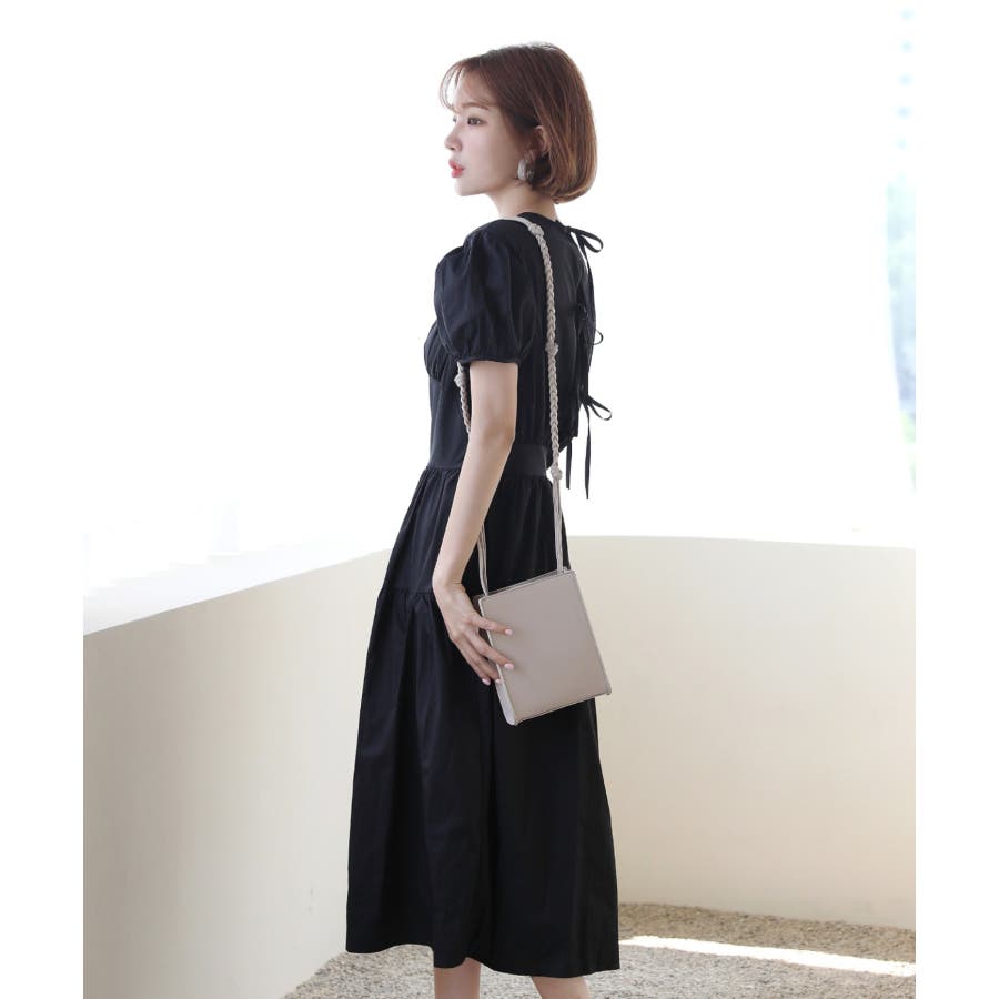 パフシャーリング リボンロングワンピース/バックポイントリボンフレアワンピース