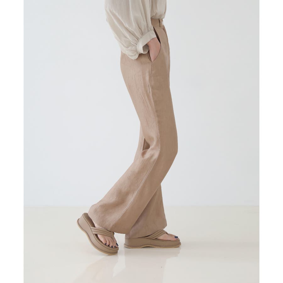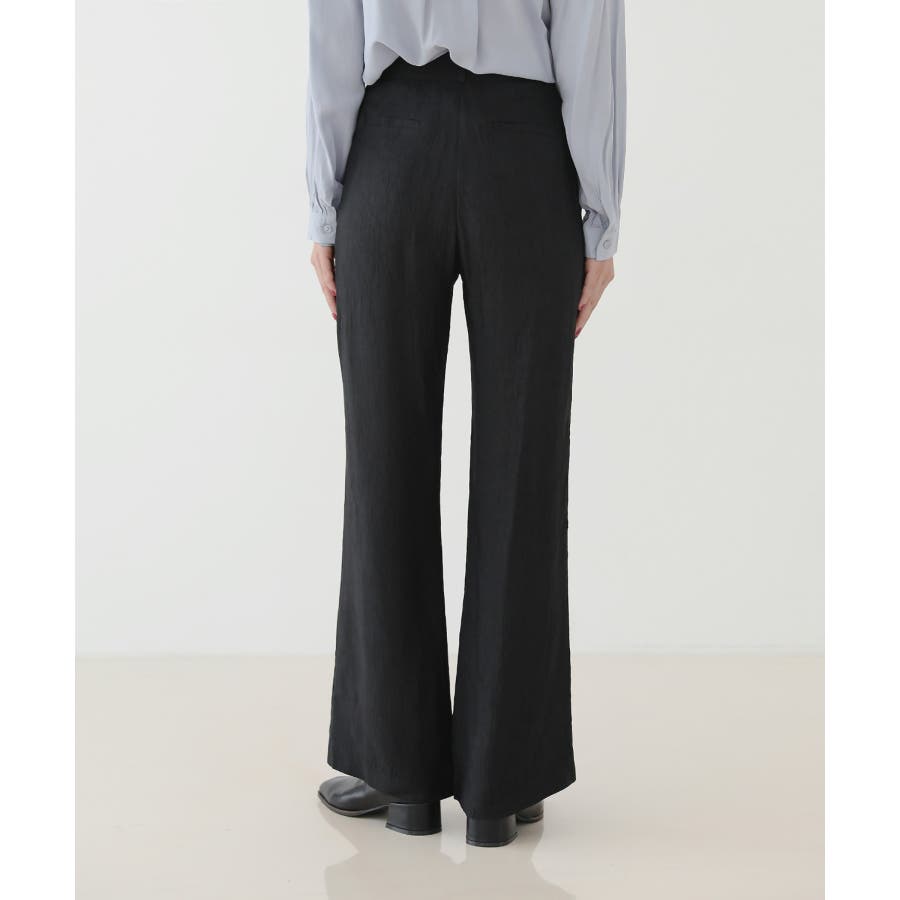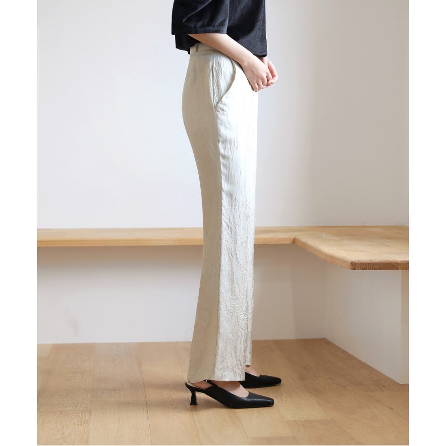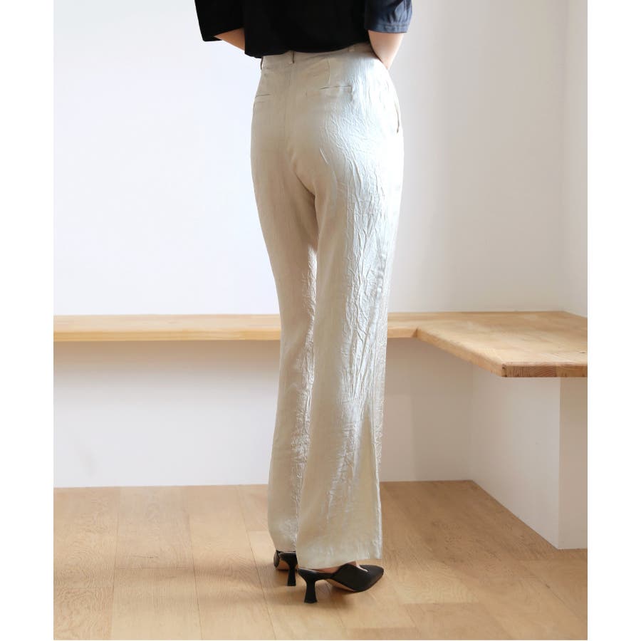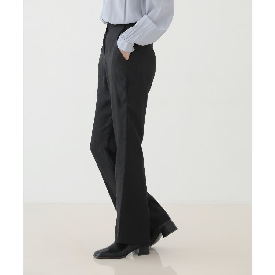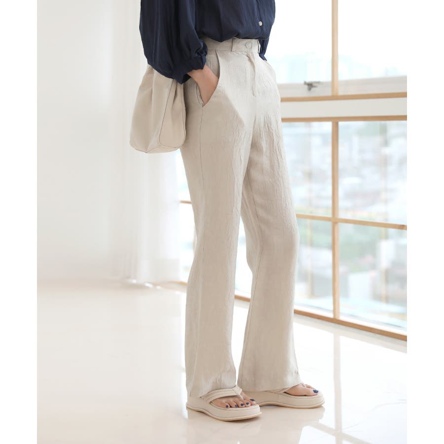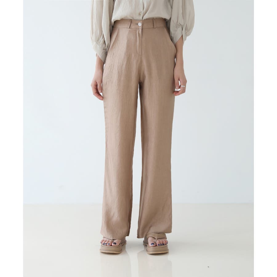 美脚パステルロングスラックス/しわ加工サテンフレアパンツ