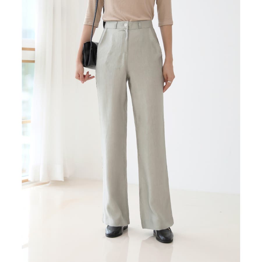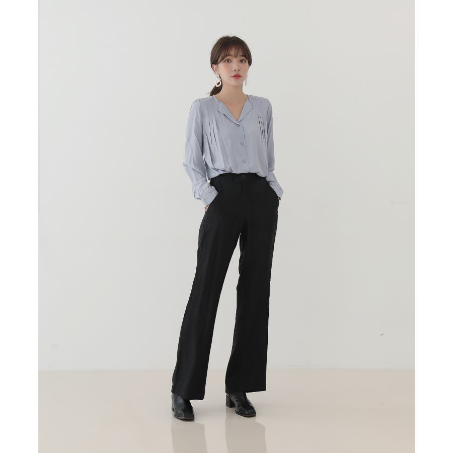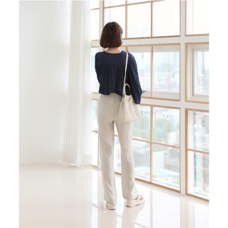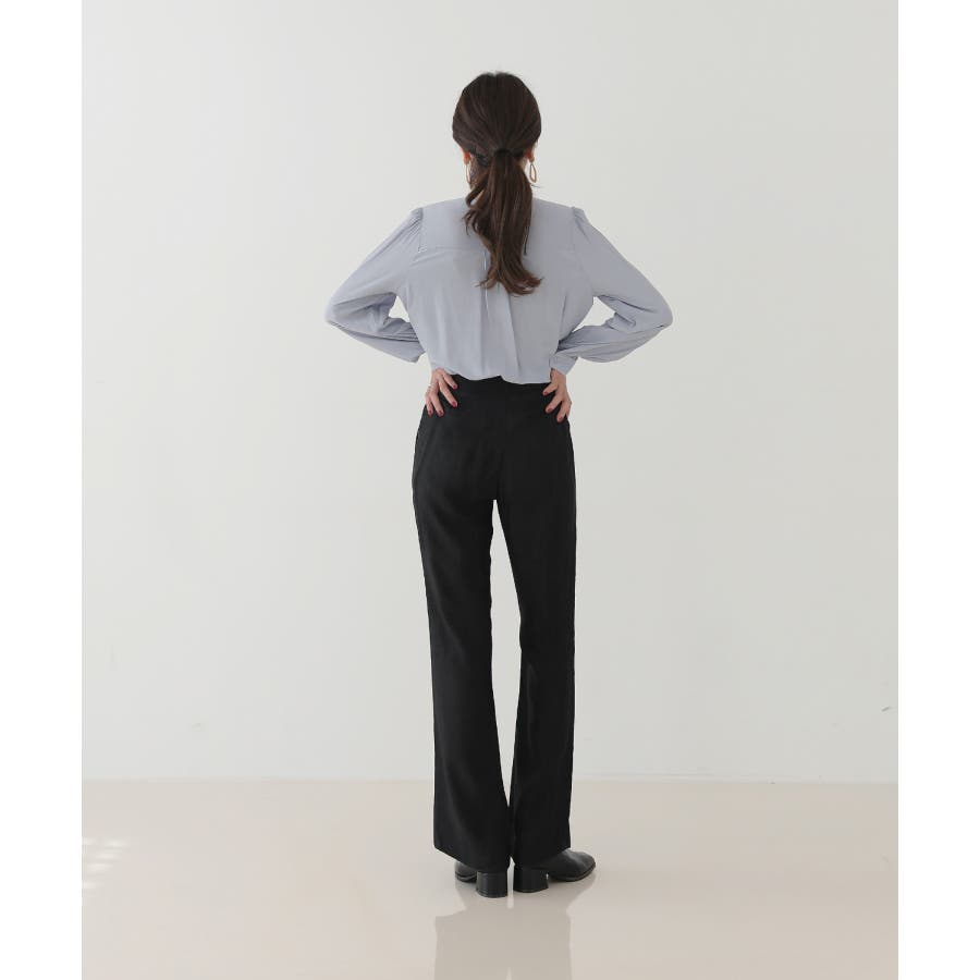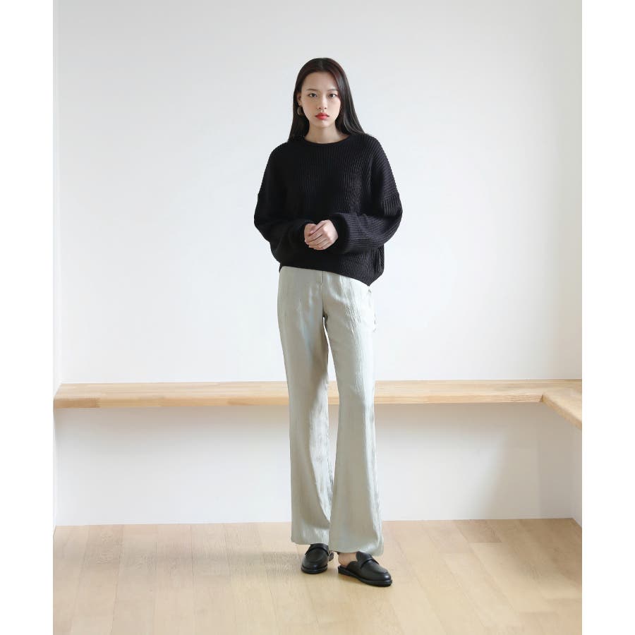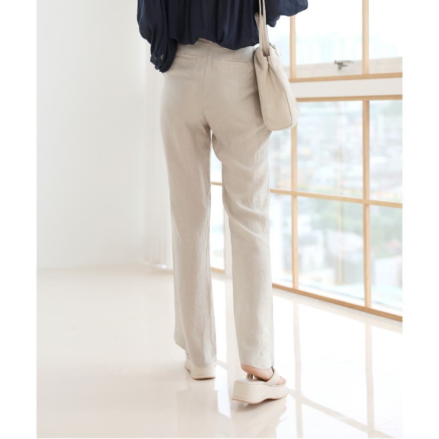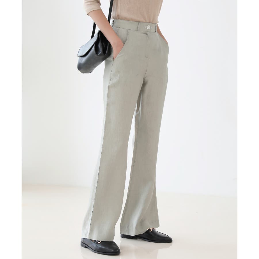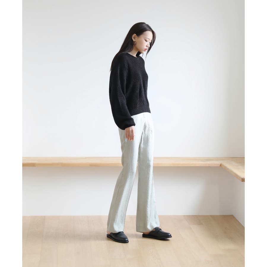 美脚パステルロングスラックス/しわ加工サテンフレアパンツ
