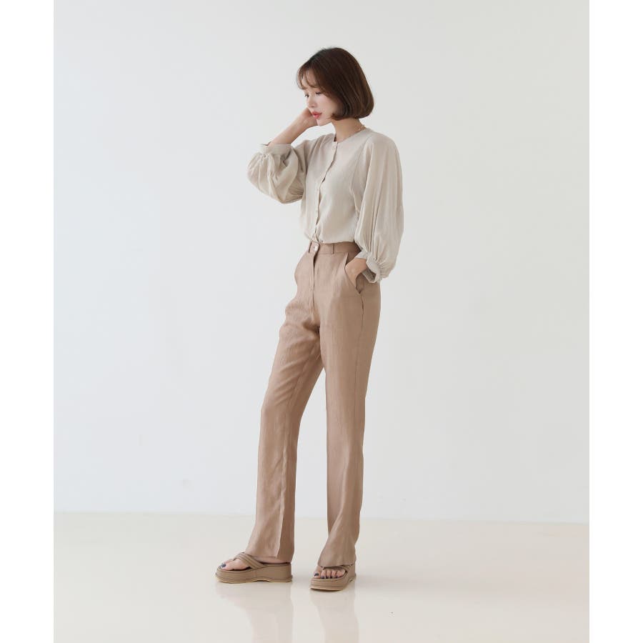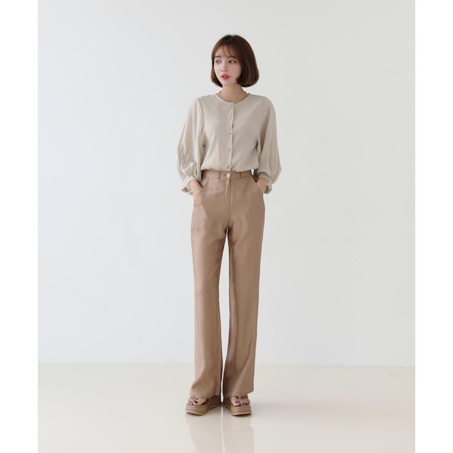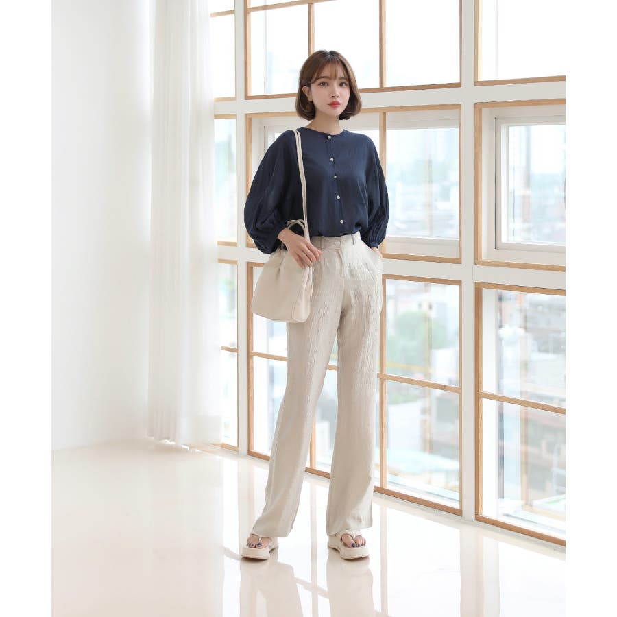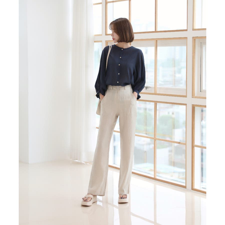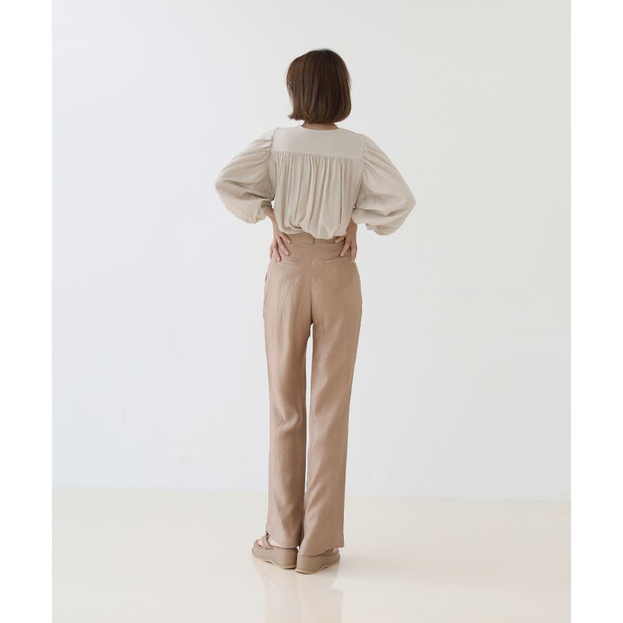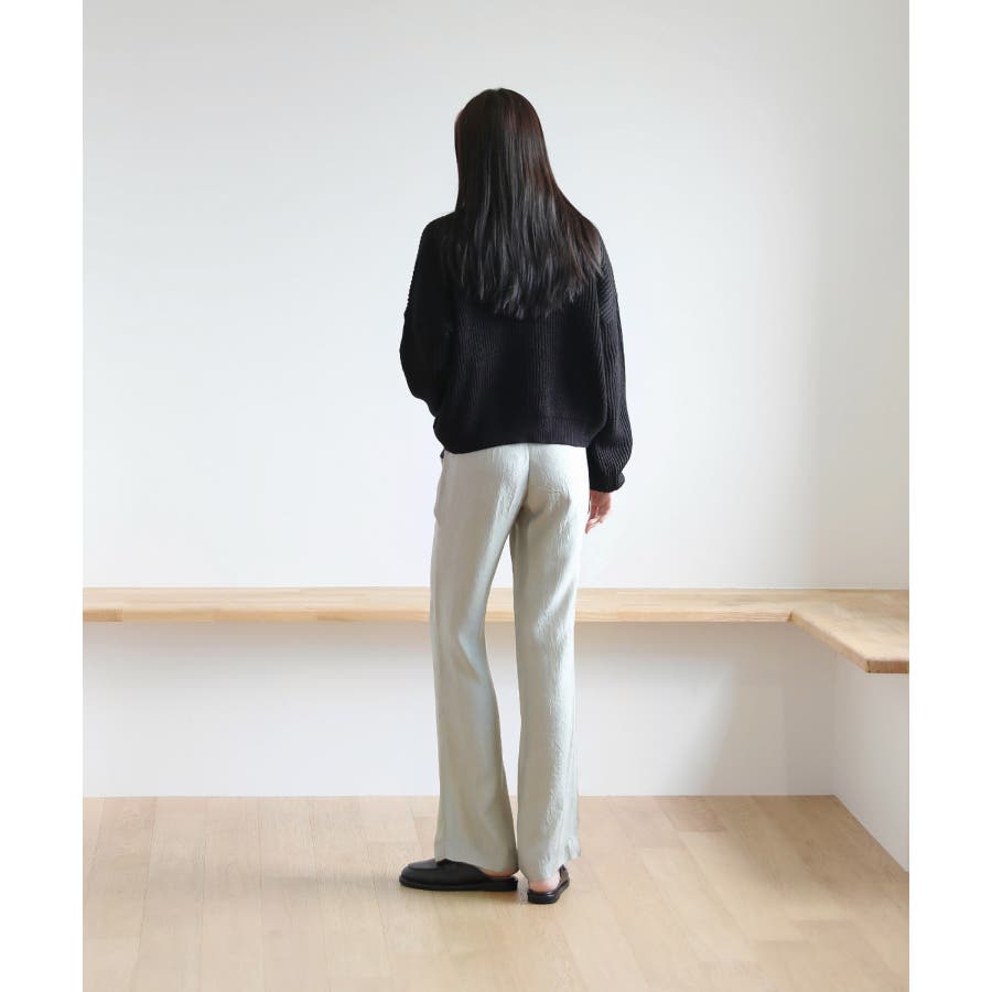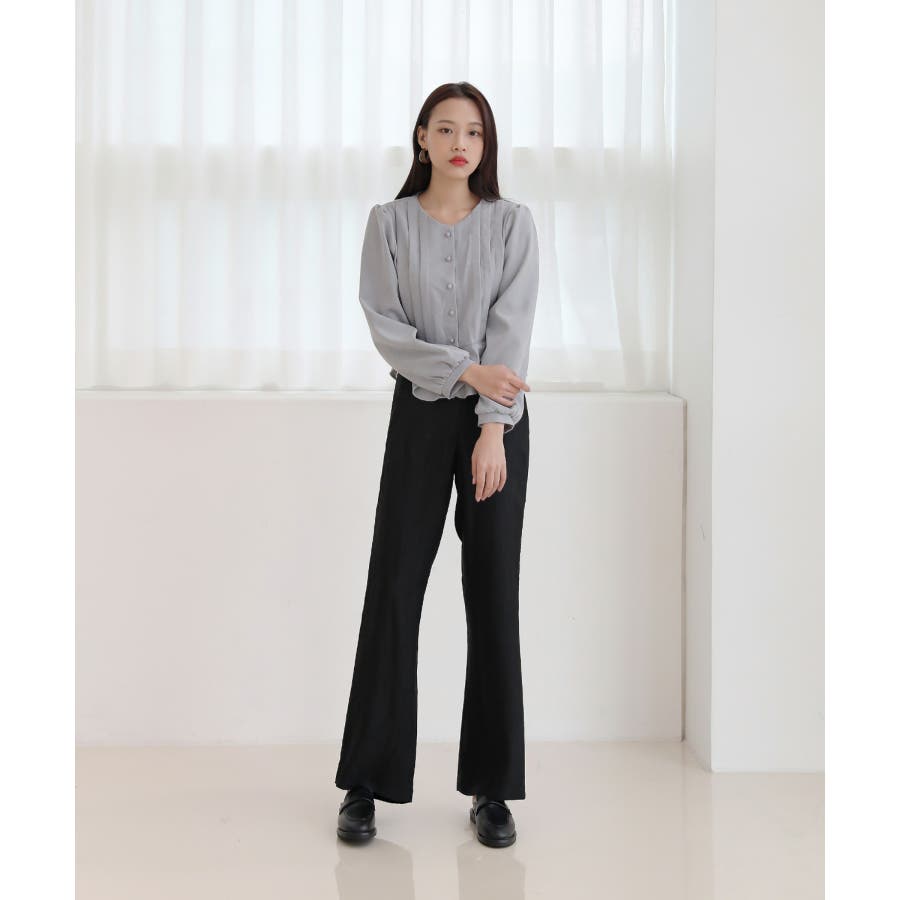 美脚パステルロングスラックス/しわ加工サテンフレアパンツ