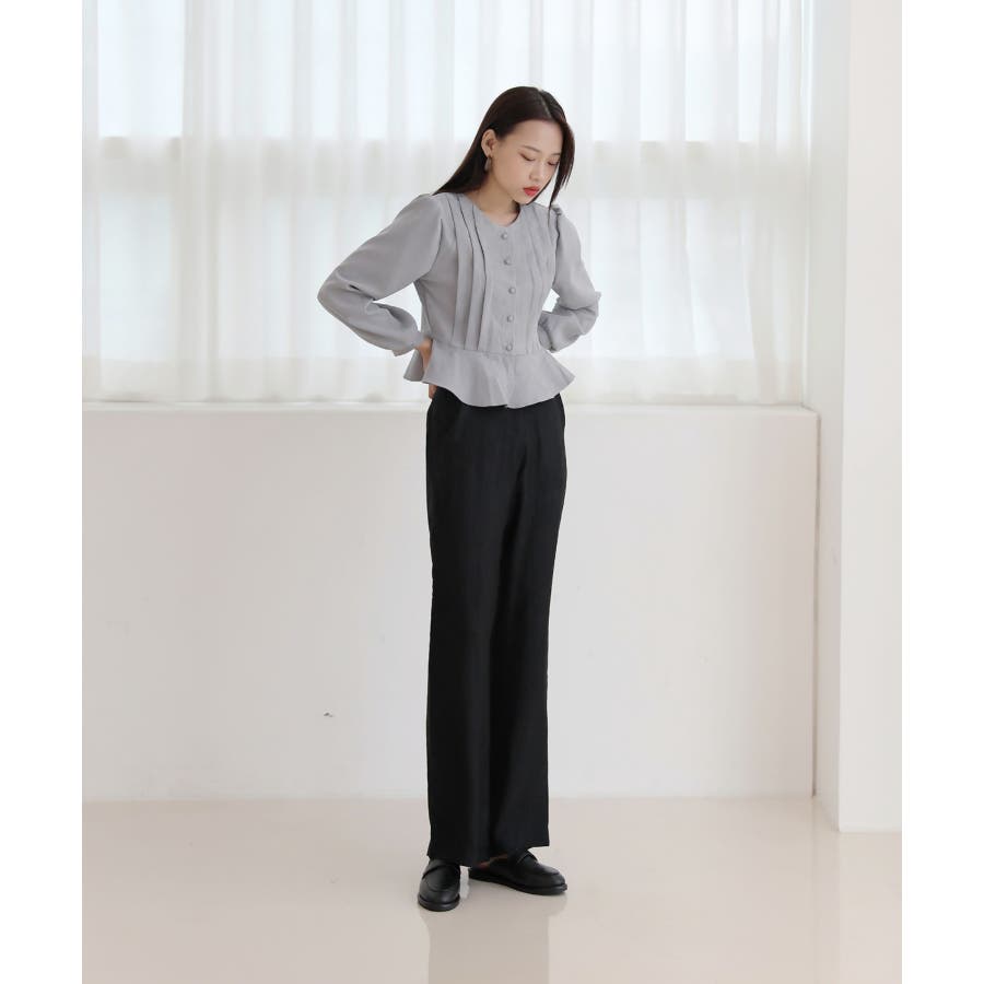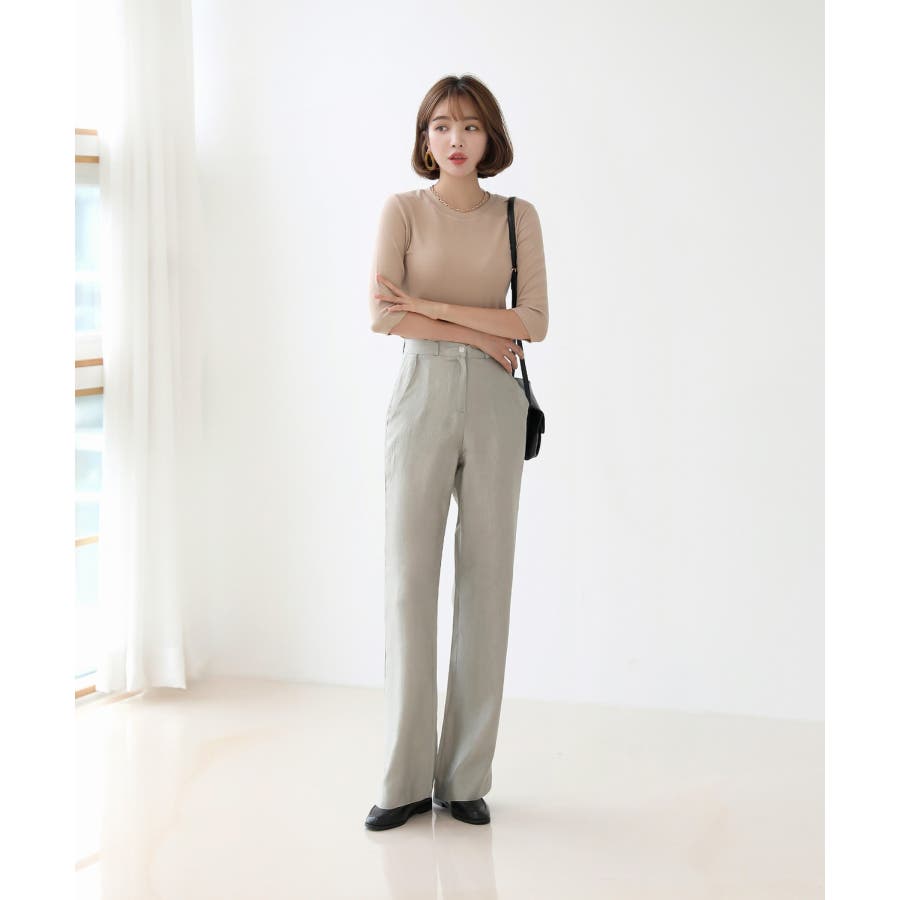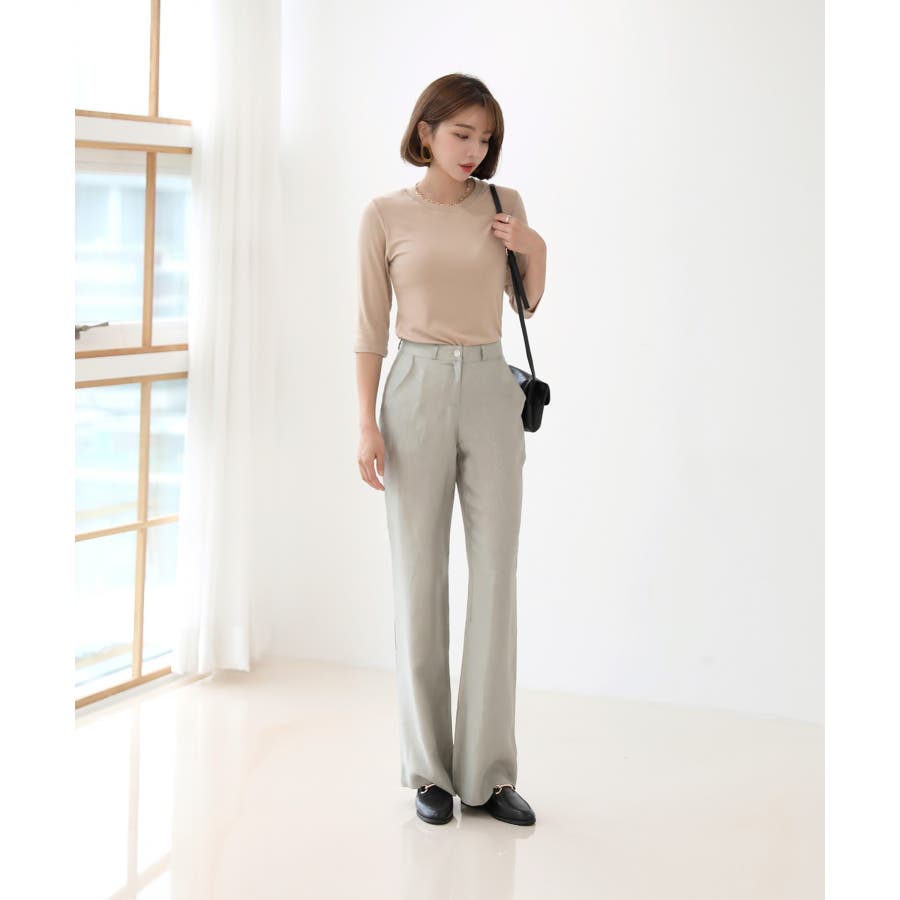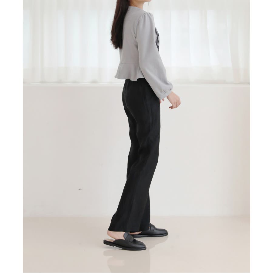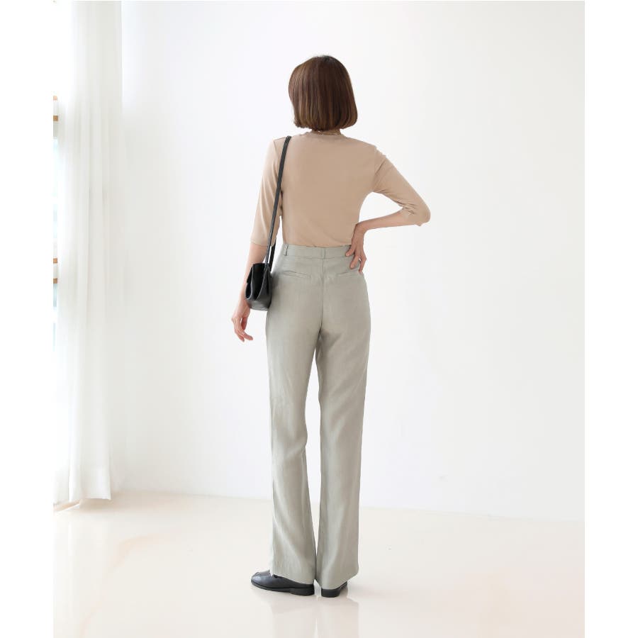 人気スラックスと同じ丈感とシルエットで足が長く見え、