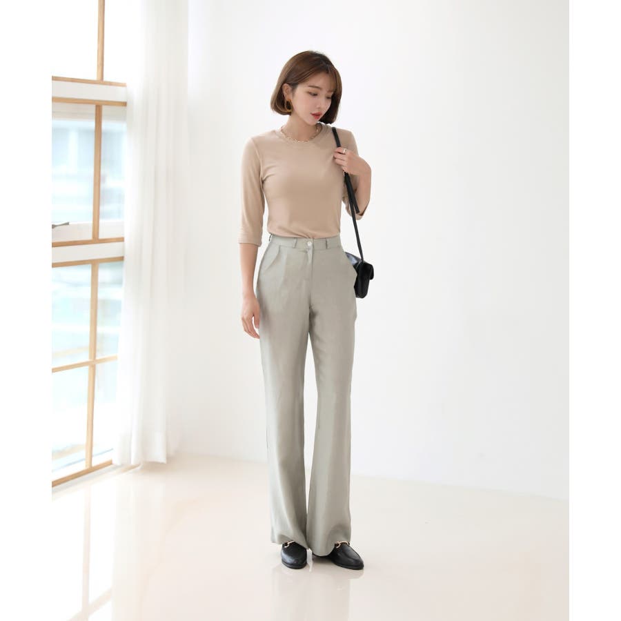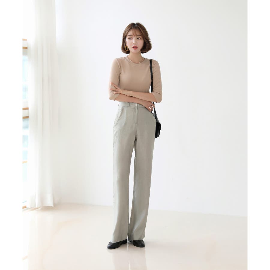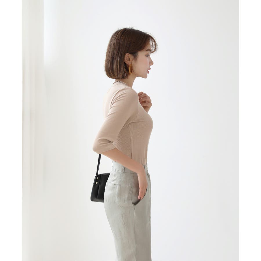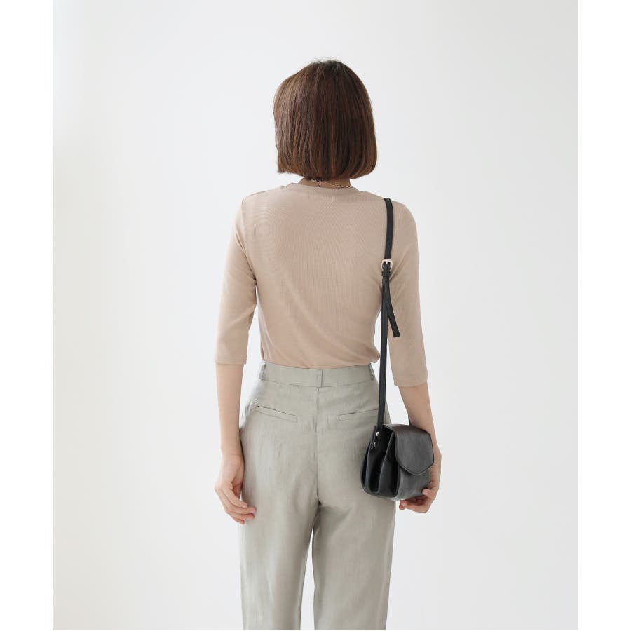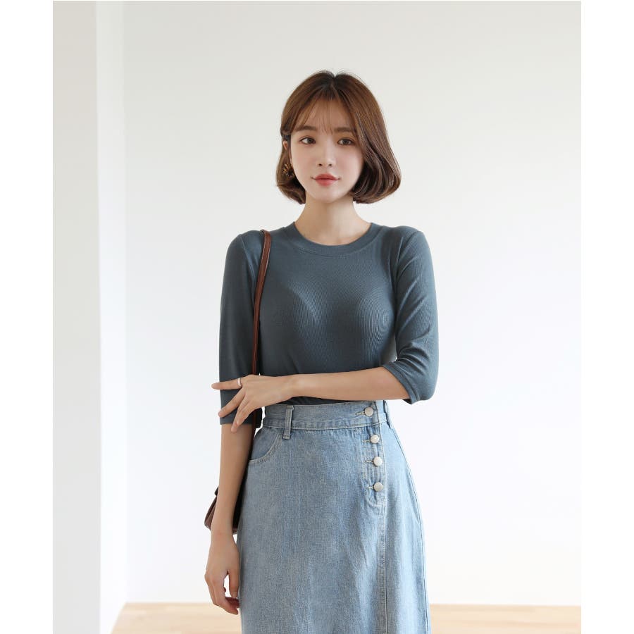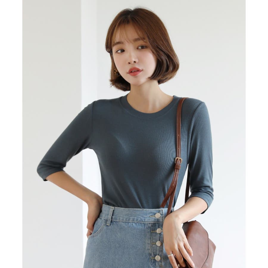 ラウンドネック スリムライン ソフトリブ 7分丈 Tシャツ