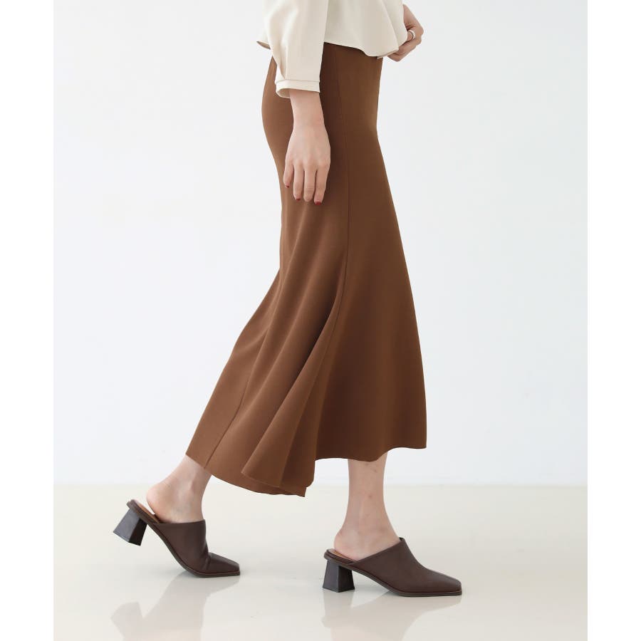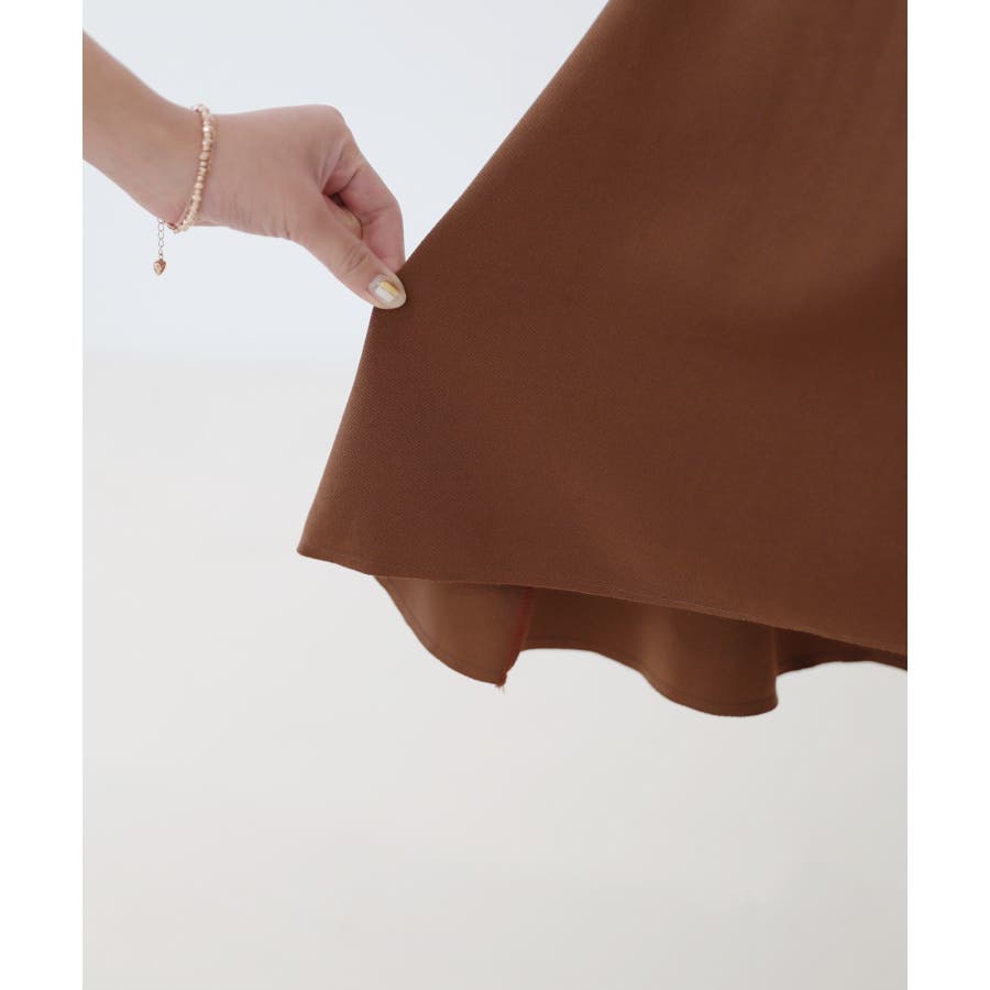 女性らしいなめらかなAラインのシルエットで裾にかけてフレアになり、