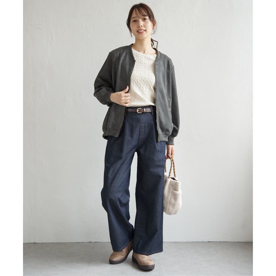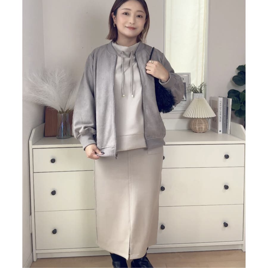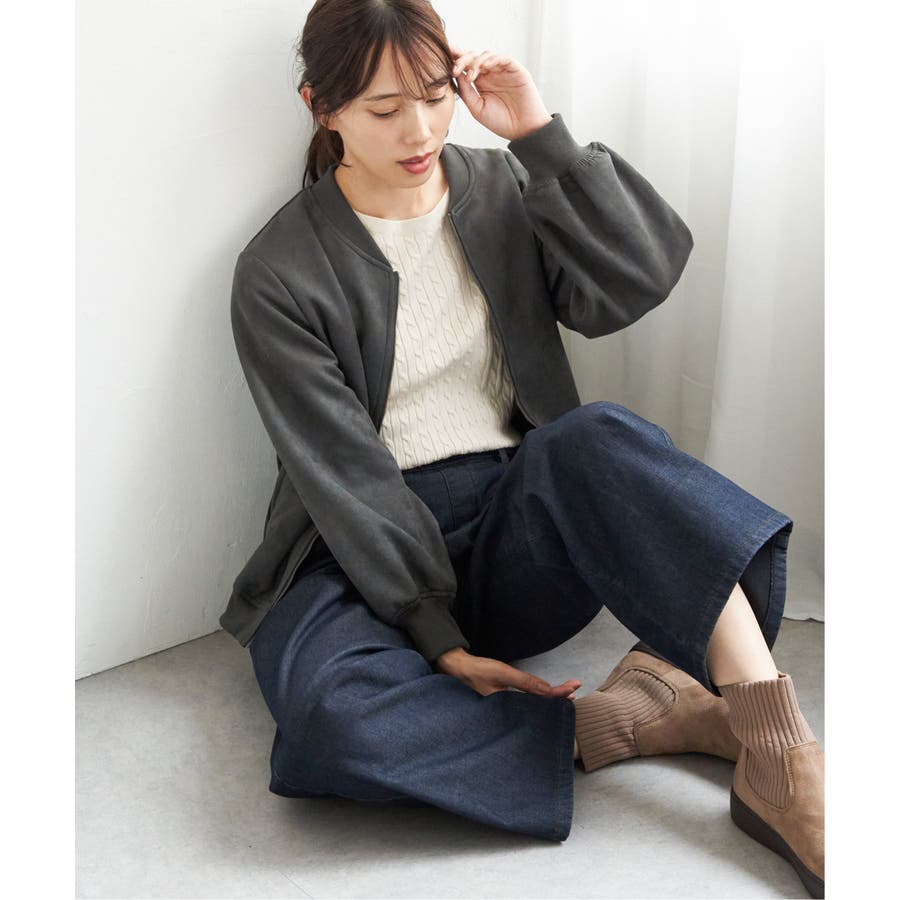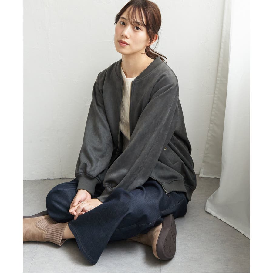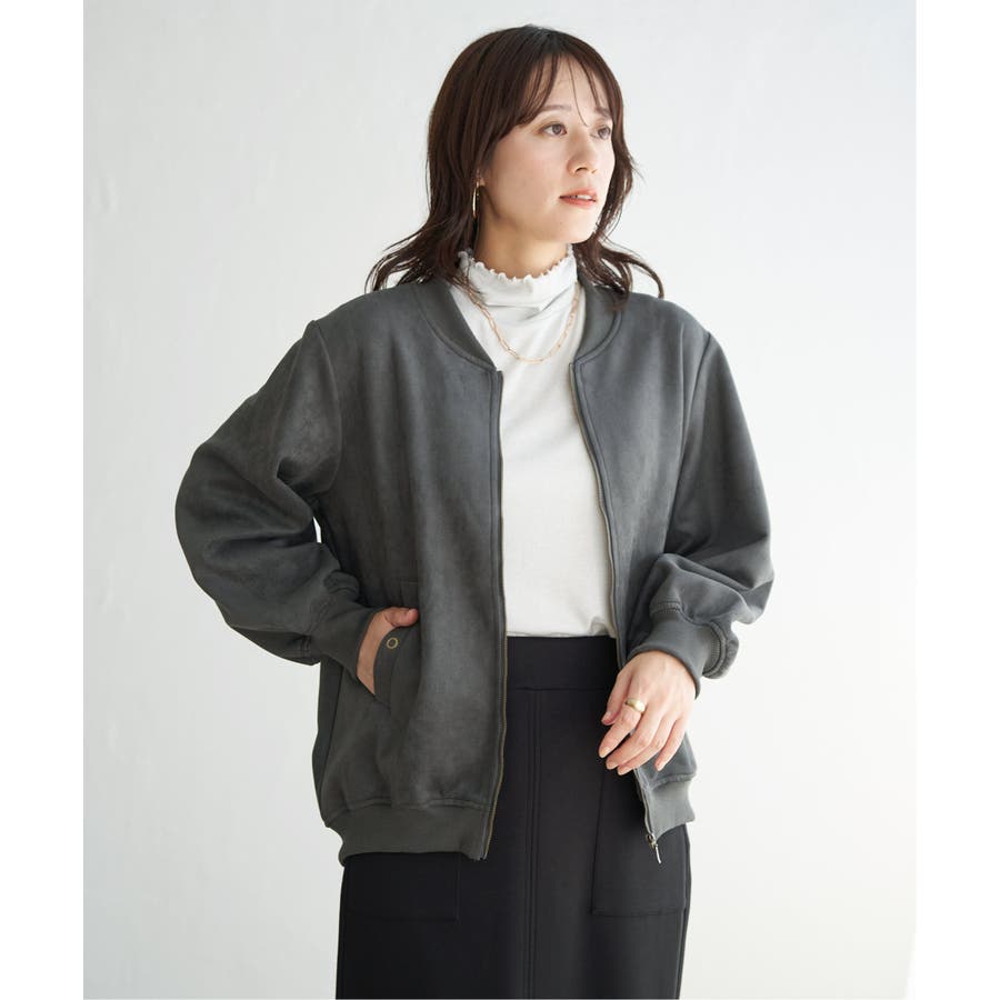 ・ソフトな印象で女性にも着やすいスエード調のブルゾン