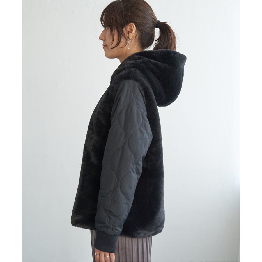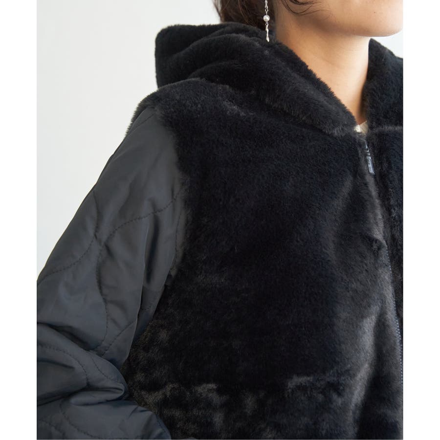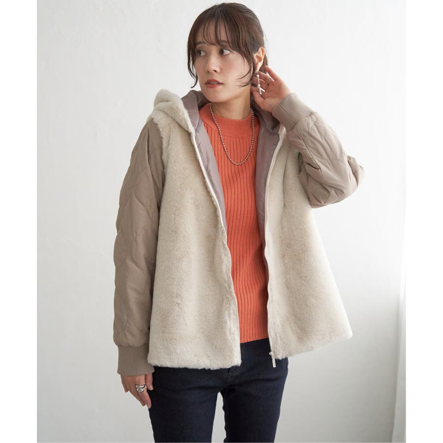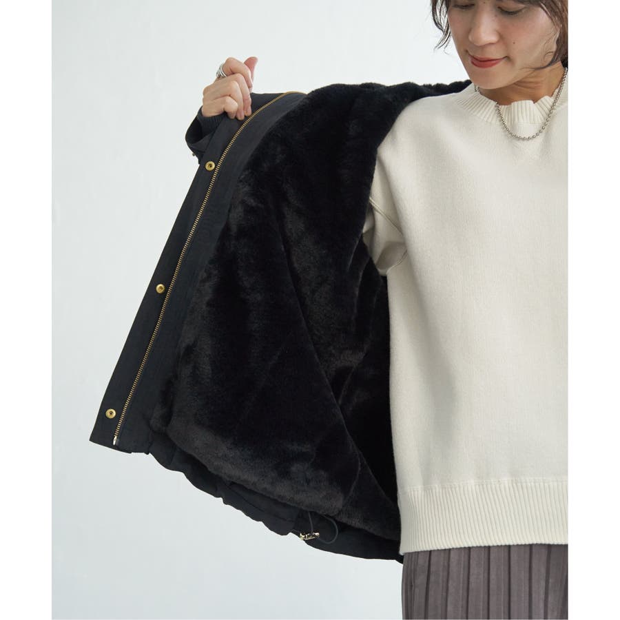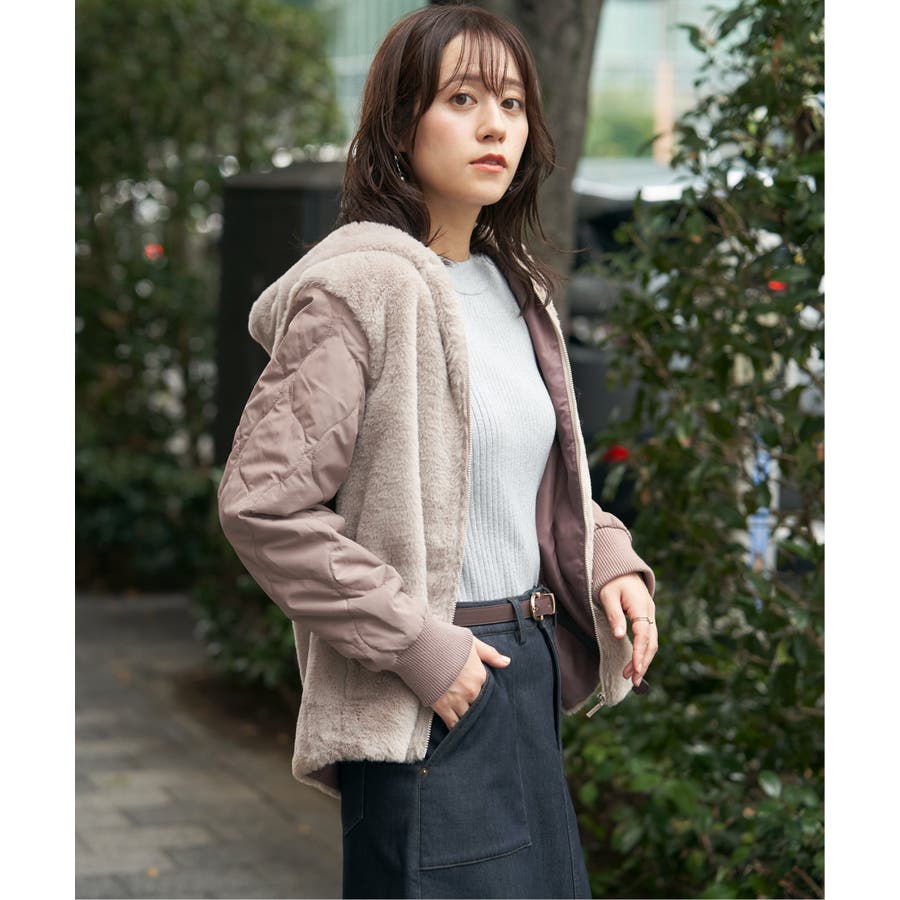 ライナーはフェイクファーと中綿キルトの切り替えデザインで、着心地も見た目もあたたか。