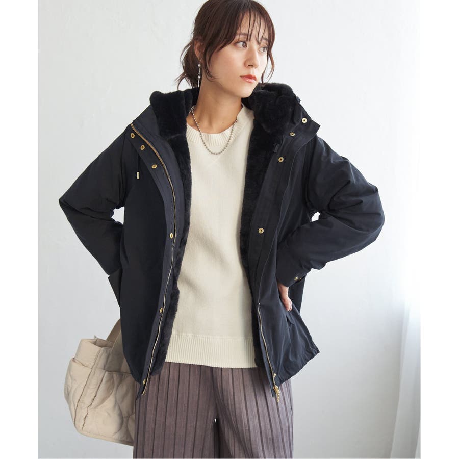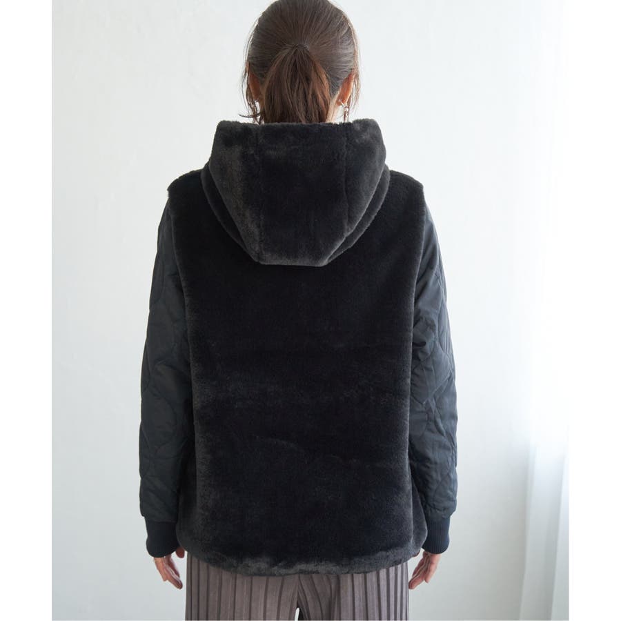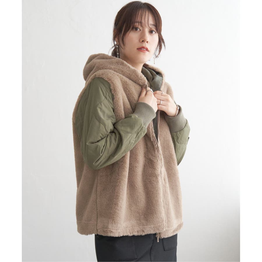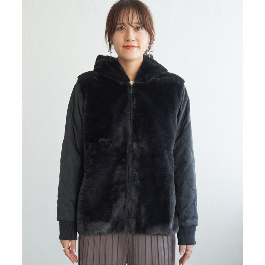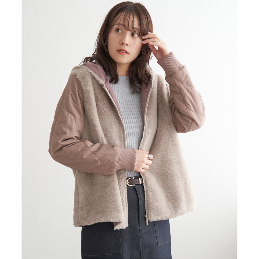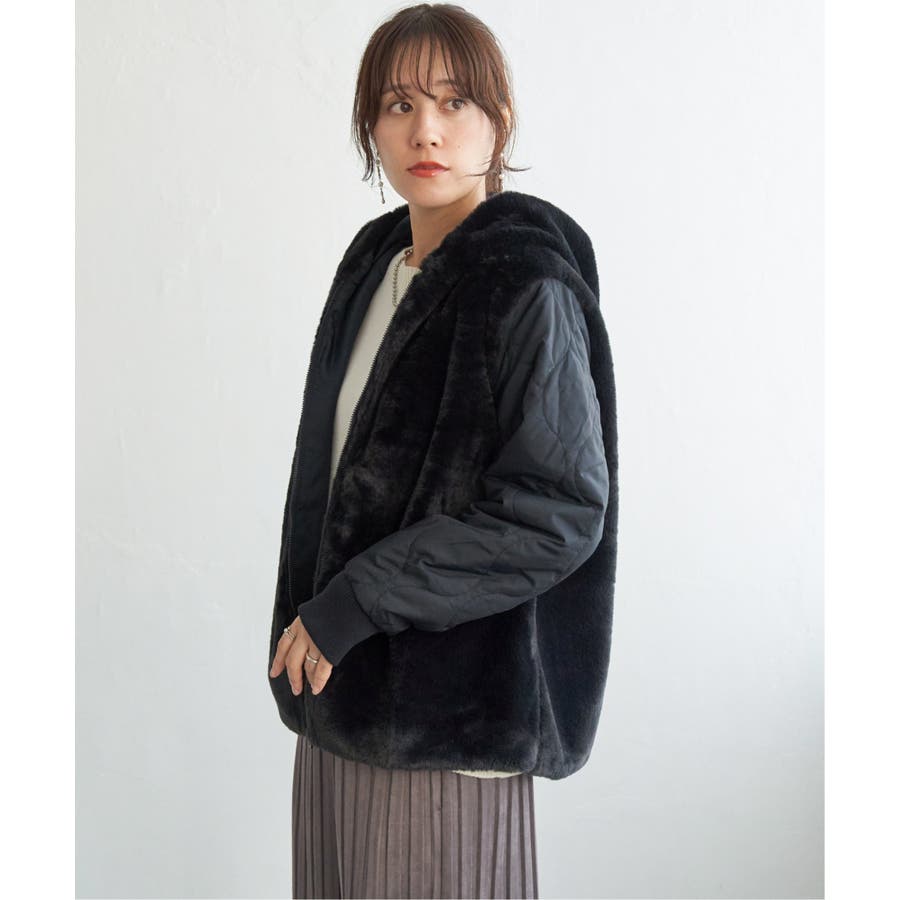 ライナーはフェイクファーと中綿キルトの切り替えデザインで、着心地も見た目もあたたか。