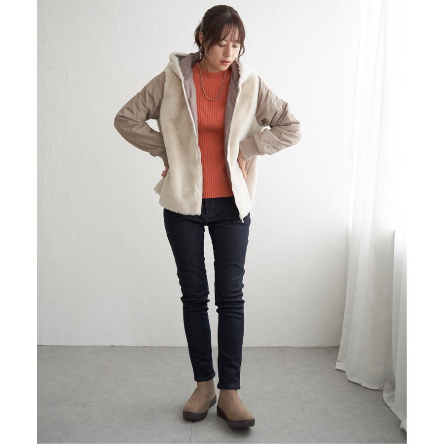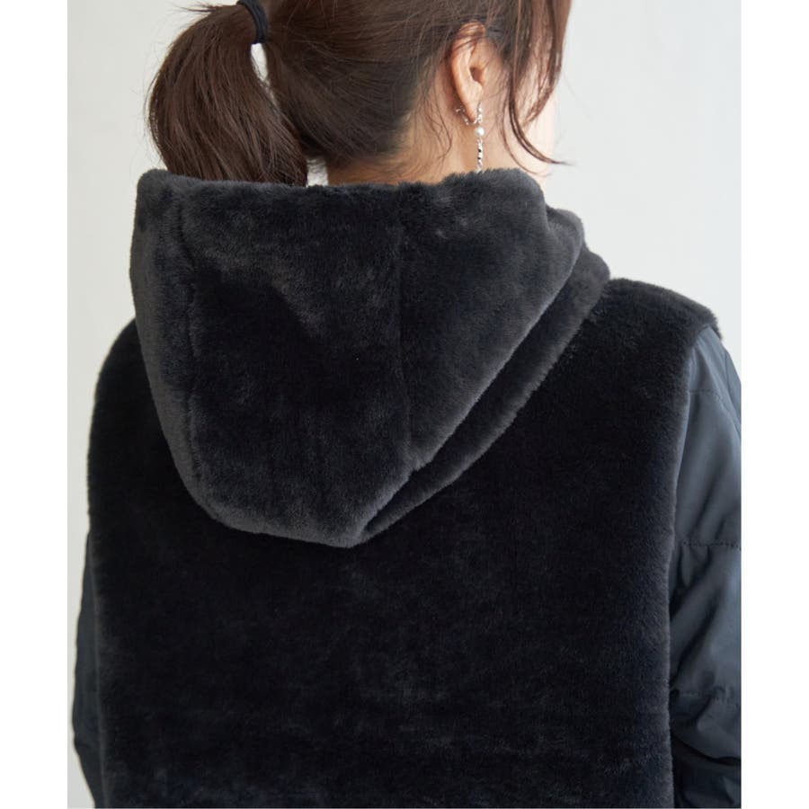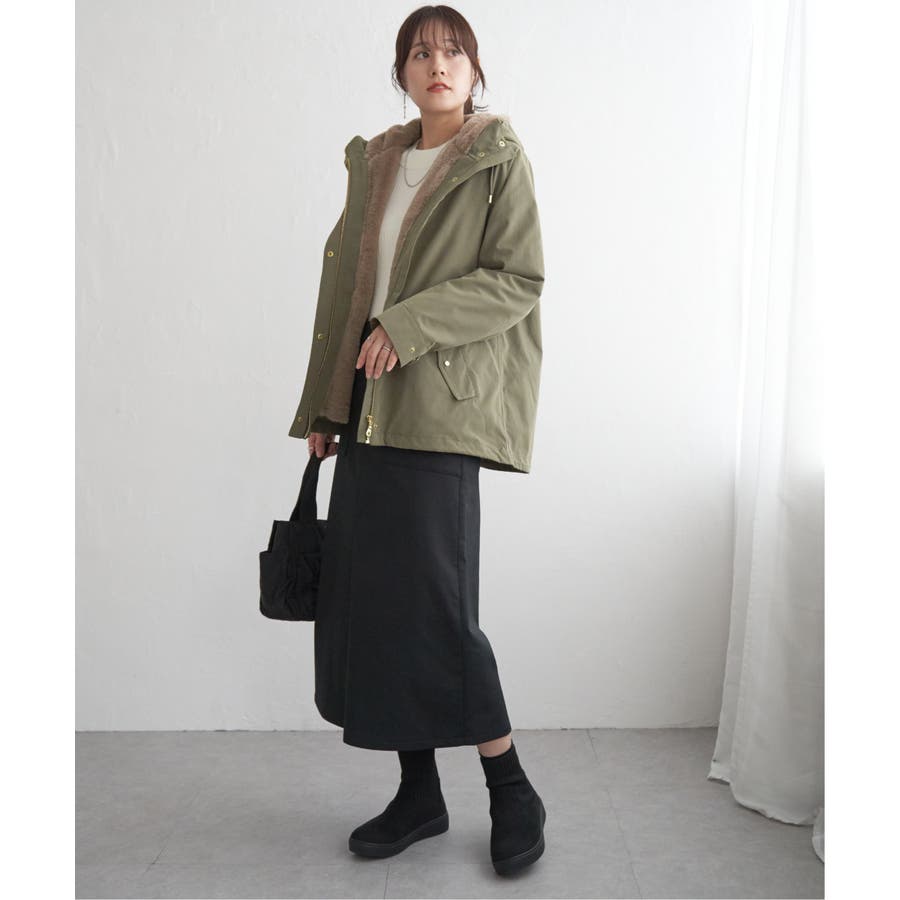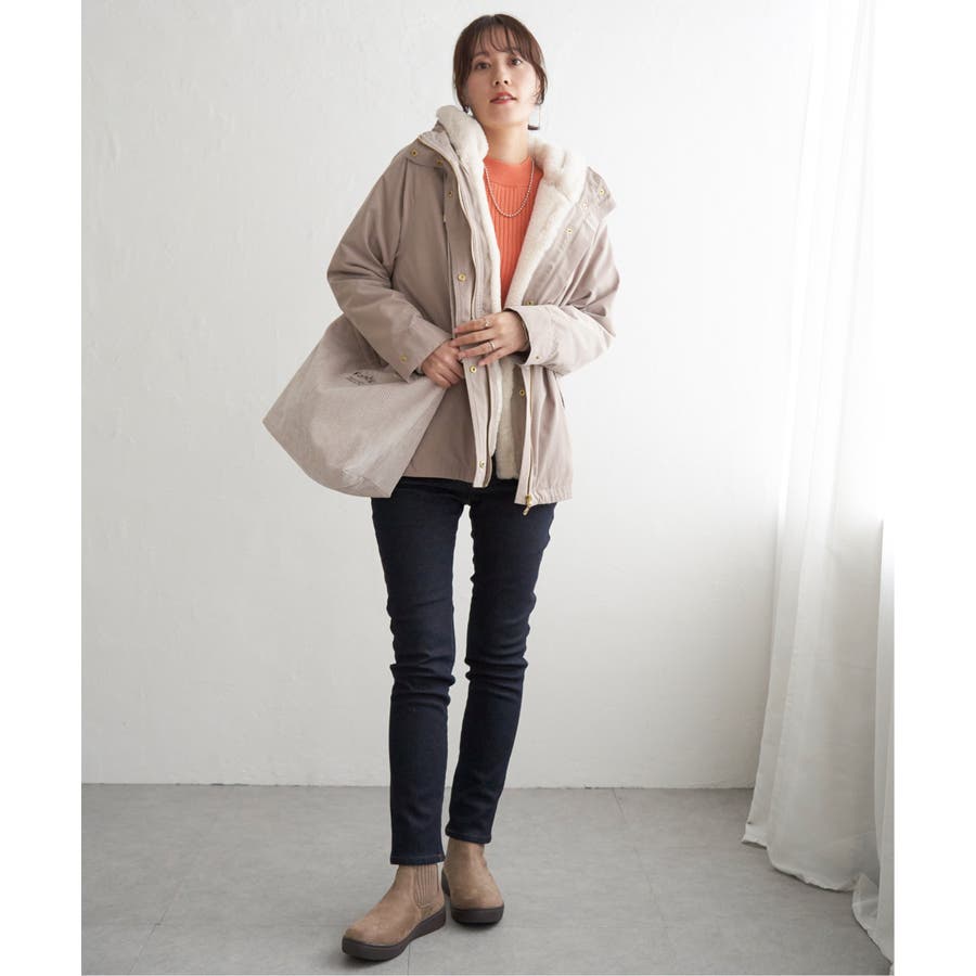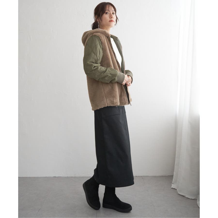 ライナーはフェイクファーと中綿キルトの切り替えデザインで、着心地も見た目もあたたか。