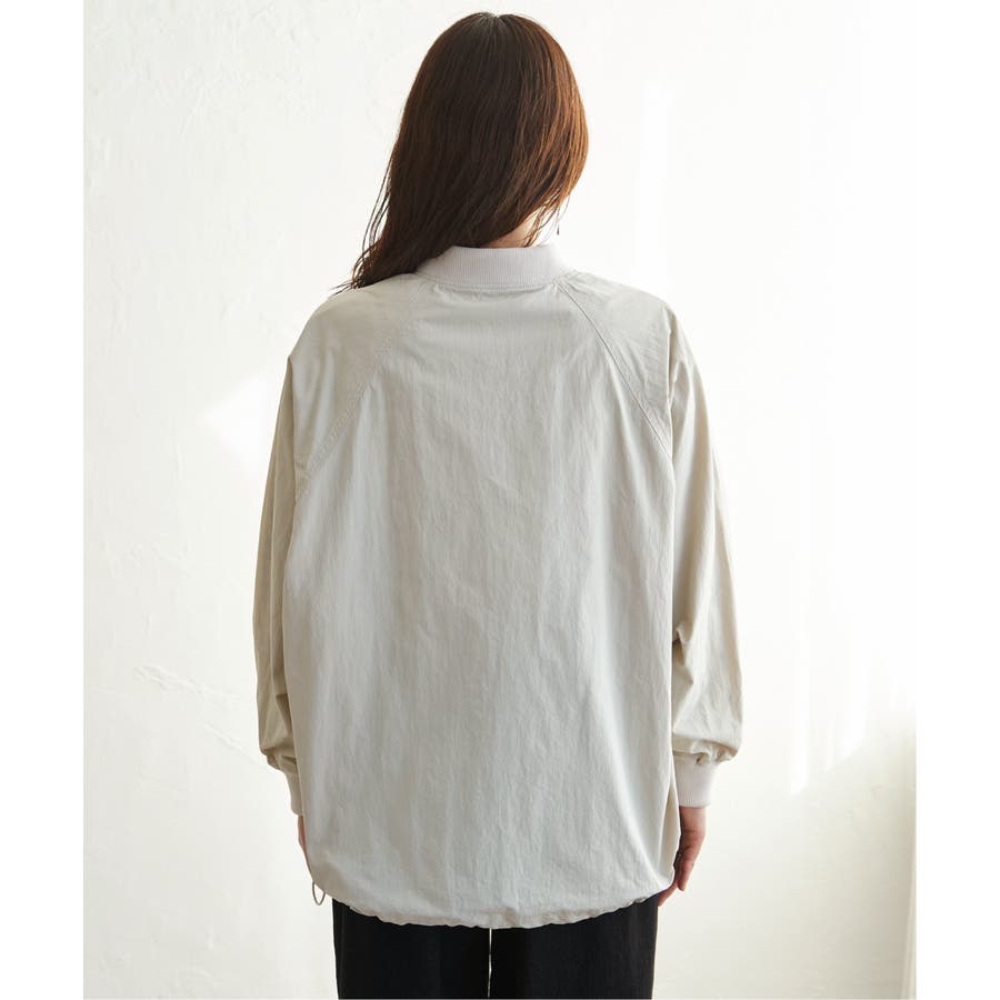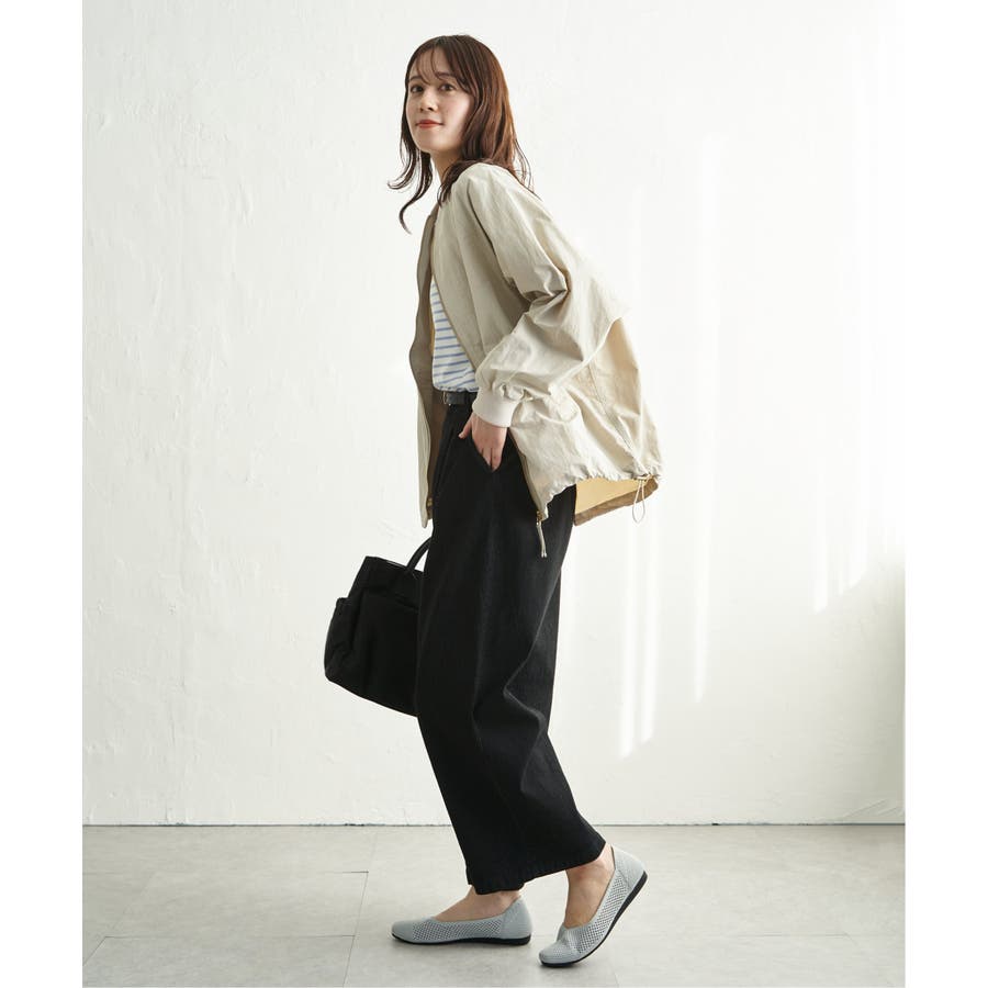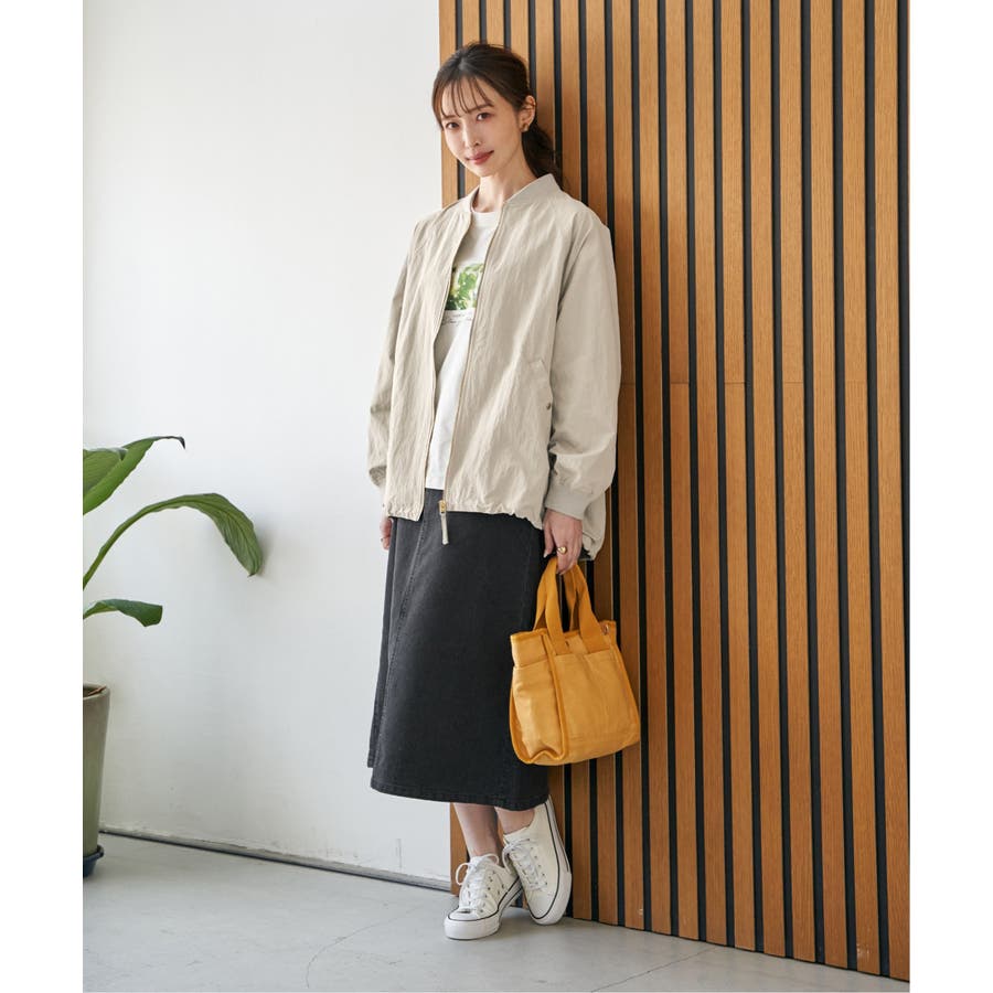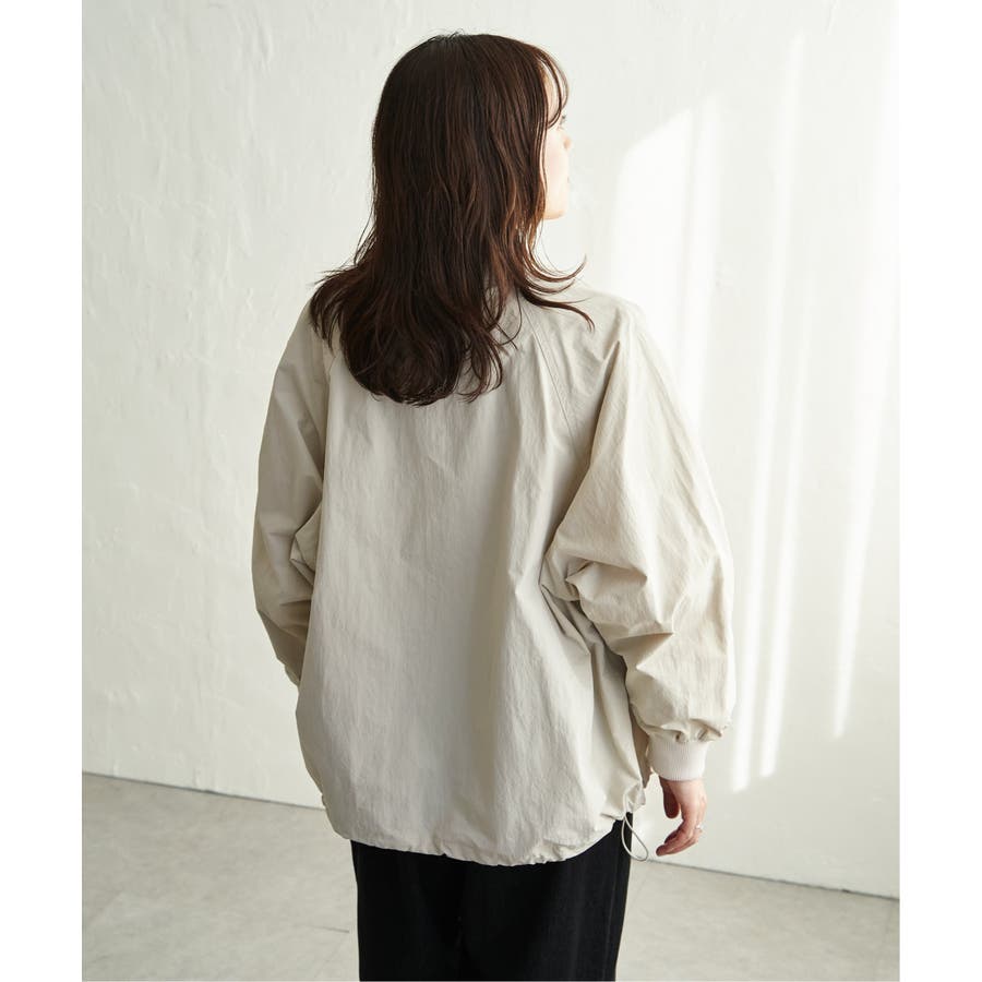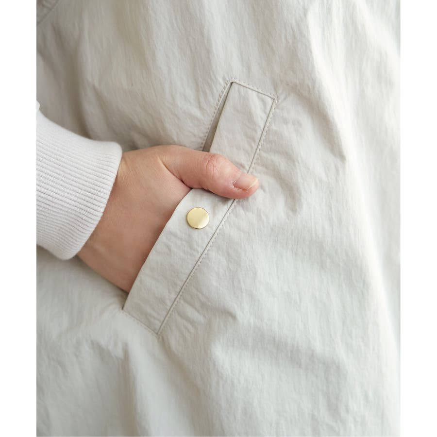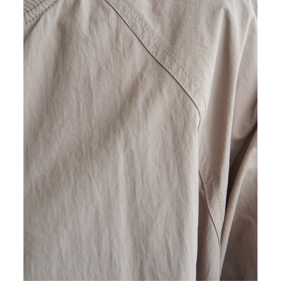 ハリ感のある合繊素材を採用し、カジュアルながらも品の良い仕上がりが魅力です。