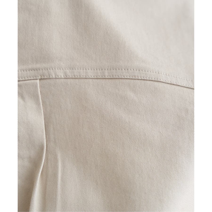 定番Gジャンをベースに、ノーカラーとシャツテールで軽さのある印象に仕上げました。
