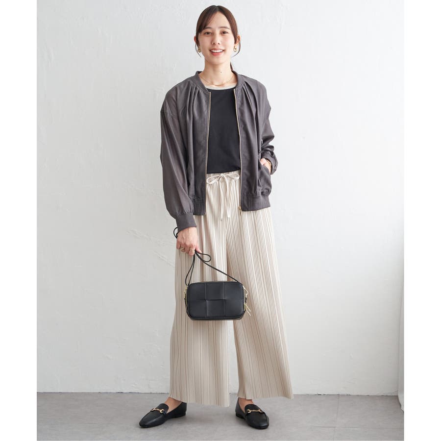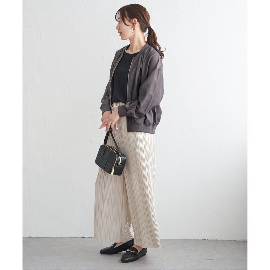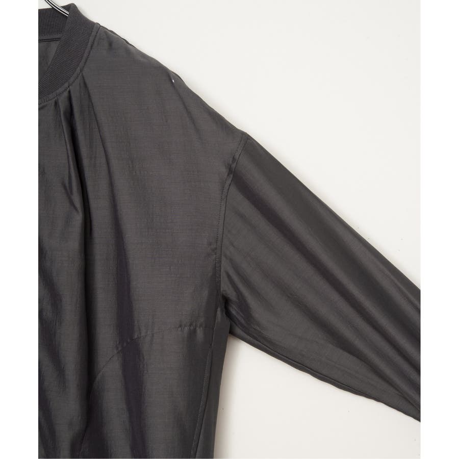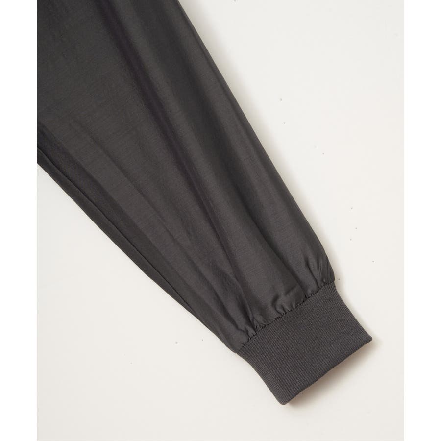 きれいめな光沢とシアー感のあるライトな素材と、袖口にリブを使用。
