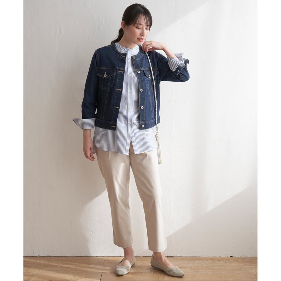 ノーカラーなので、襟があるシャツやTシャツなどインナーを選びません。