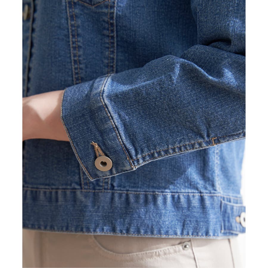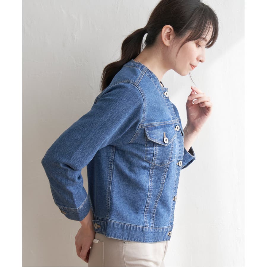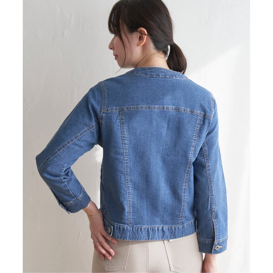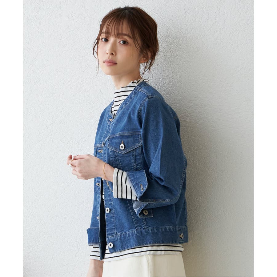 ノーカラー&コンパクトなシルエットで、きれいめに着ていただけるGジャンです。