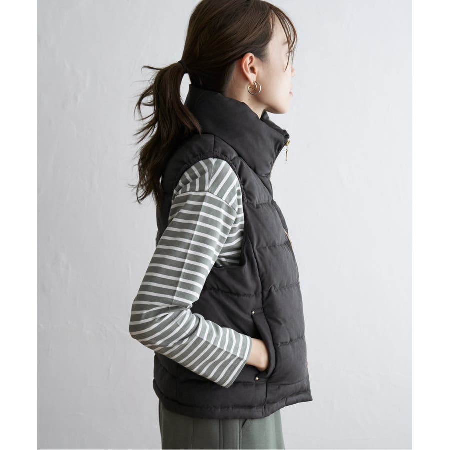 襟元にボリュームがあるダウンステッチ入りのベストです。