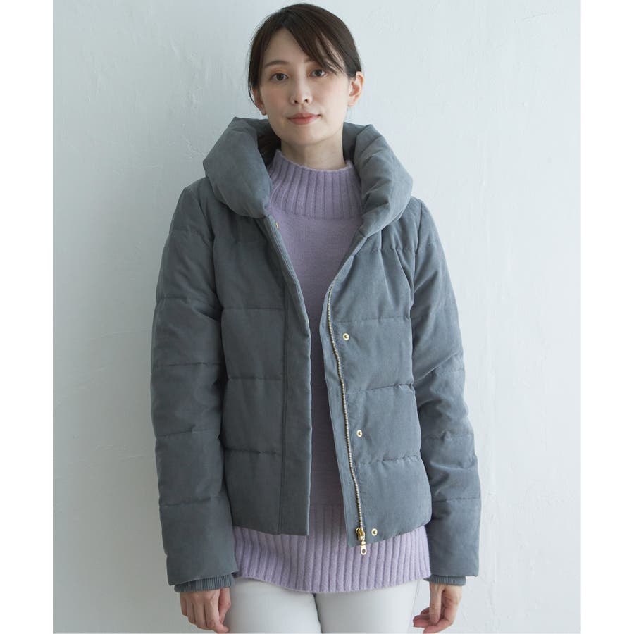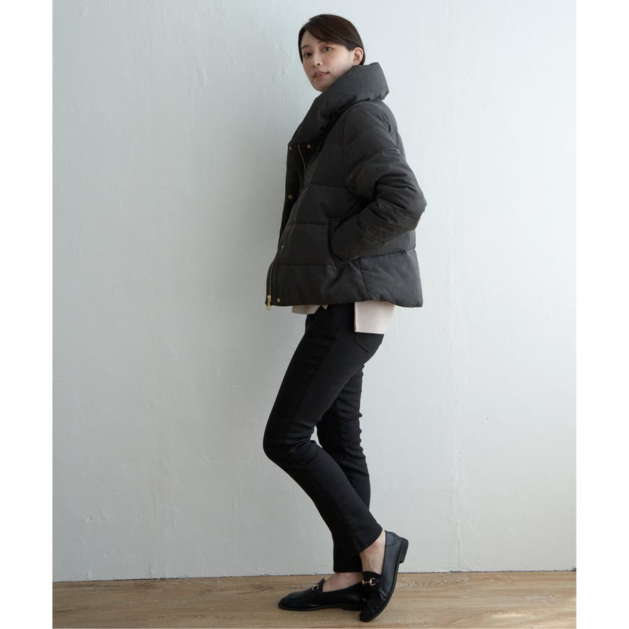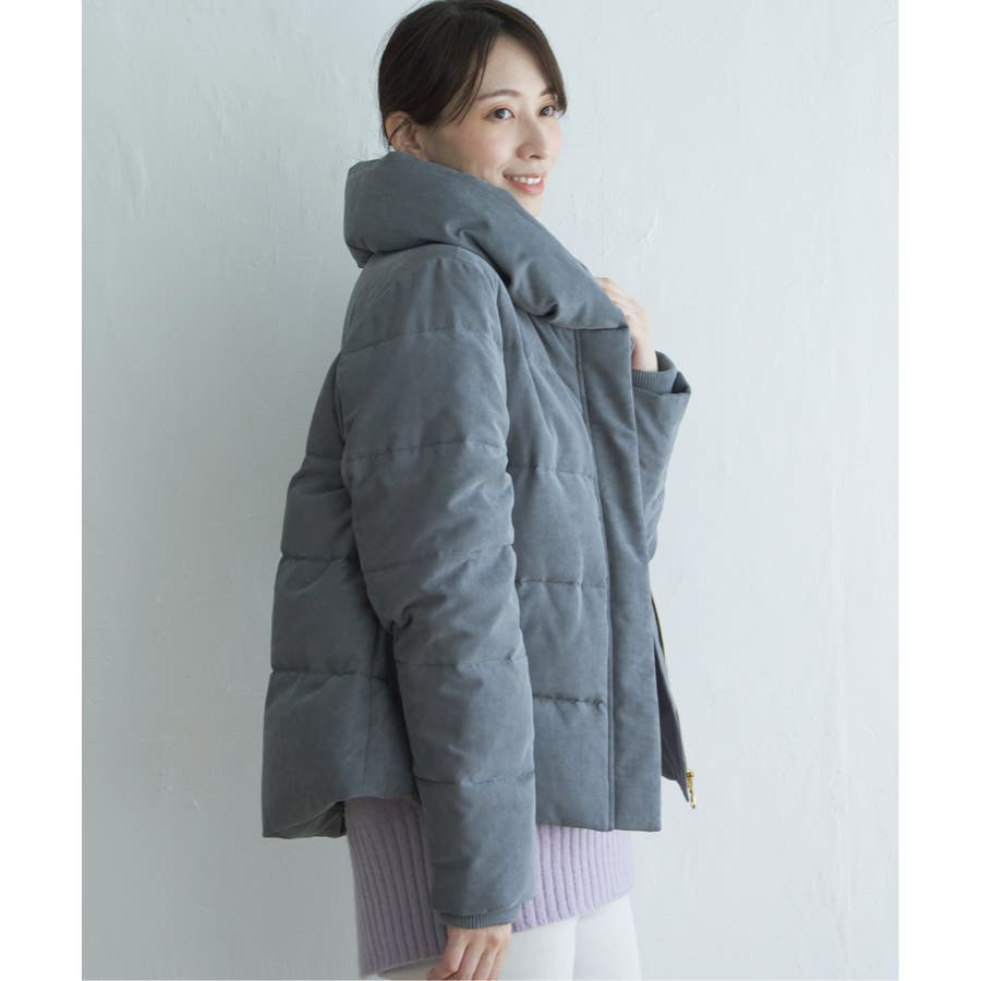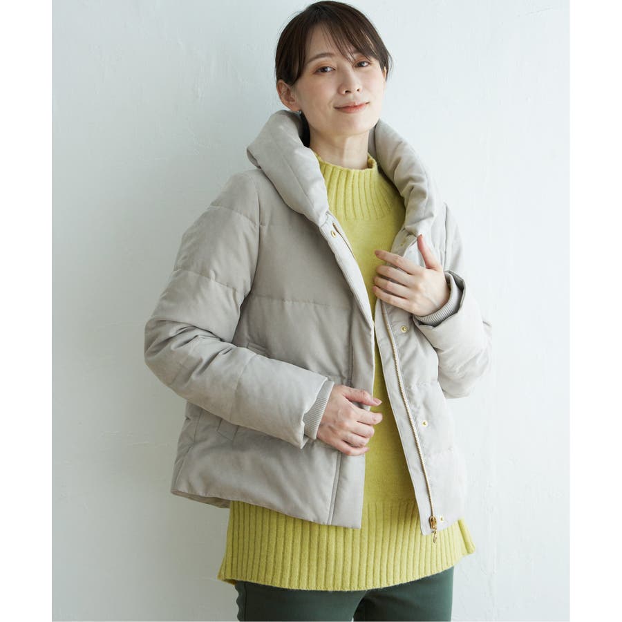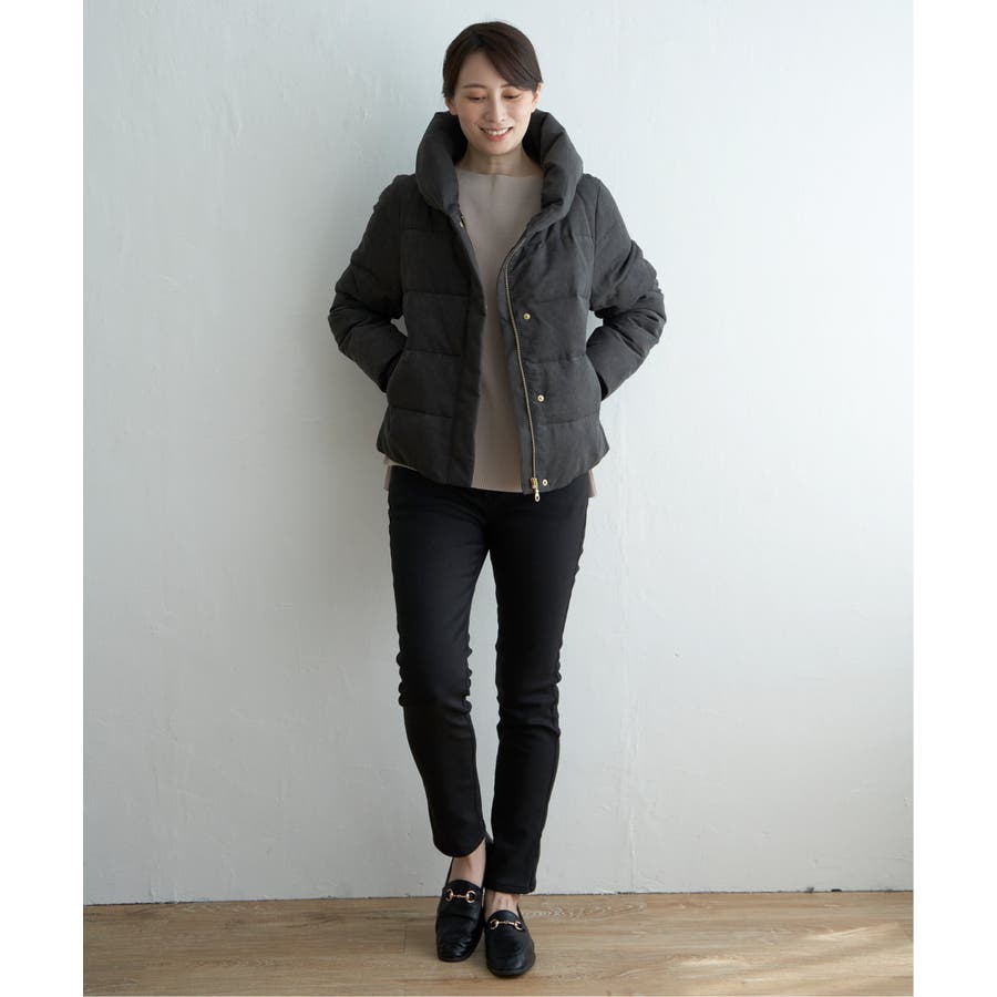 襟元にボリュームがあるショート丈ダウン。