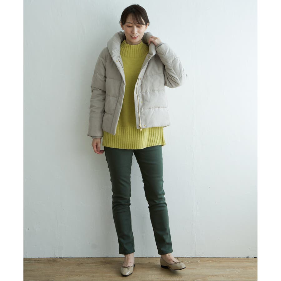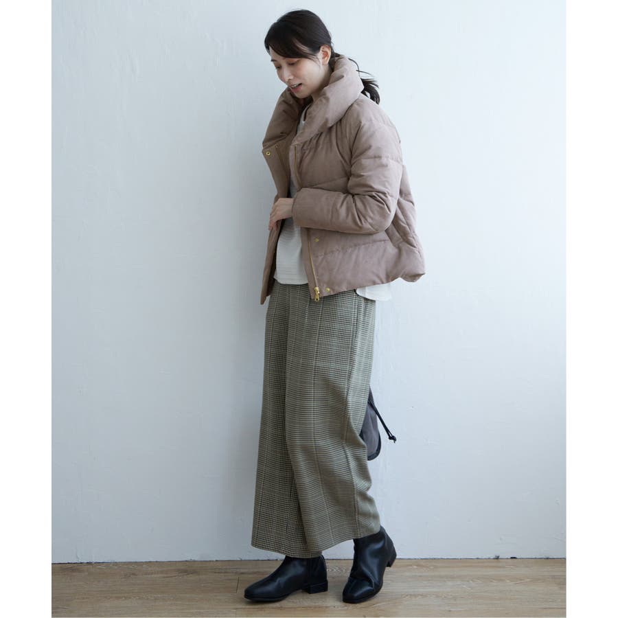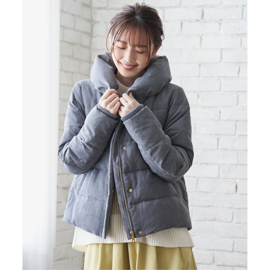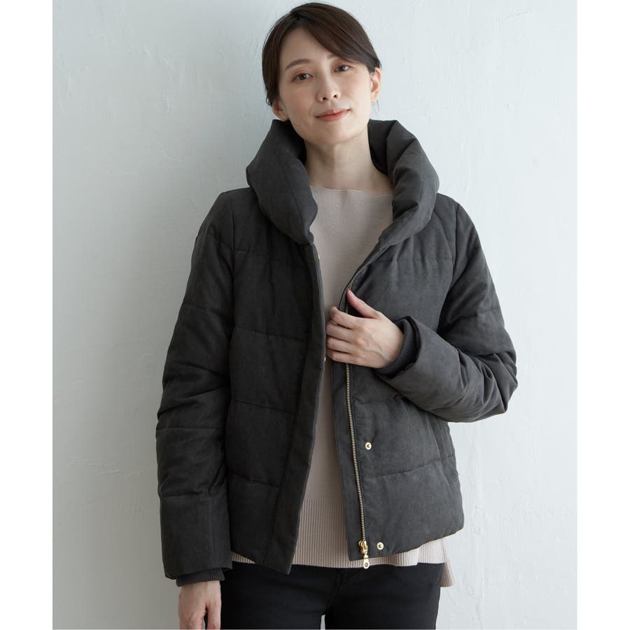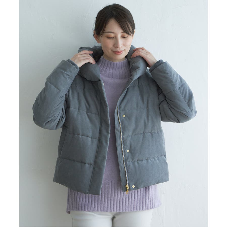 襟元にボリュームがあるショート丈ダウン。
