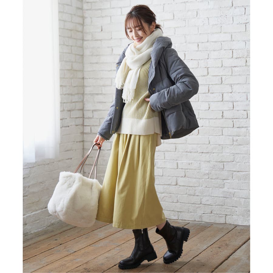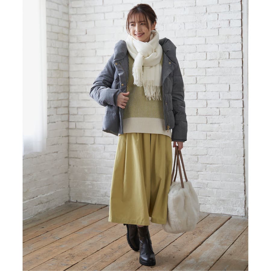 襟元のボリュームで首元をしっかり防寒します。