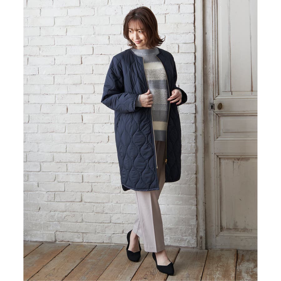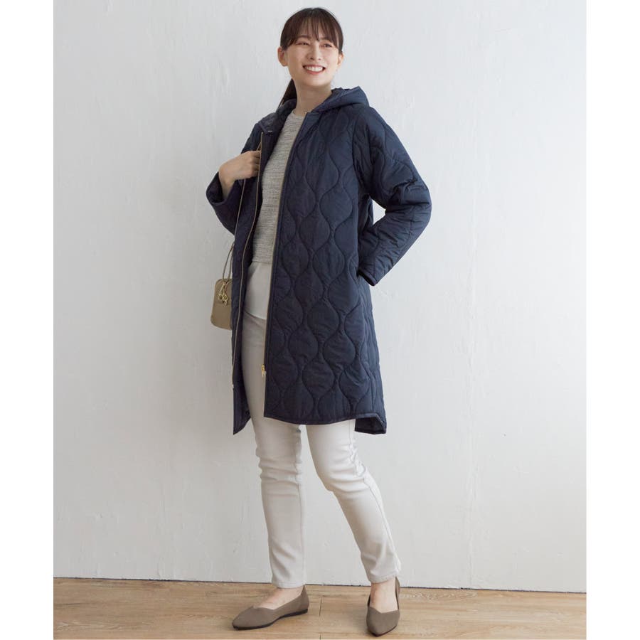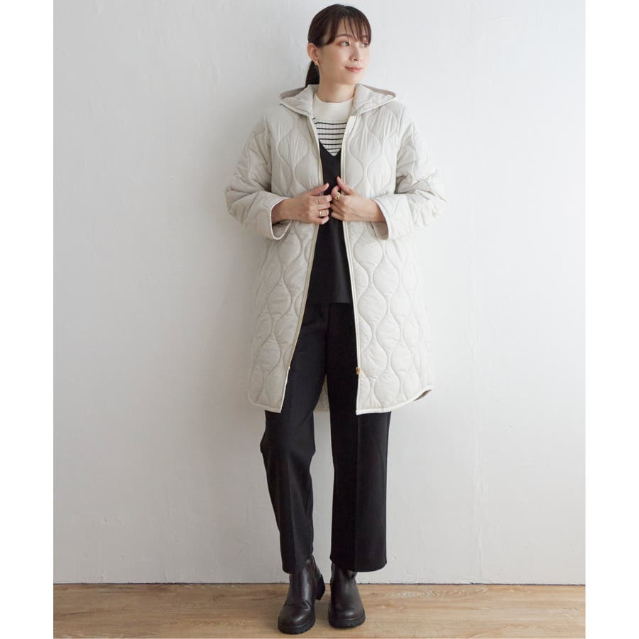大人でも着やすいひょうたんキルトで、キレイめにもカジュアルも着られる中綿入りのコート。