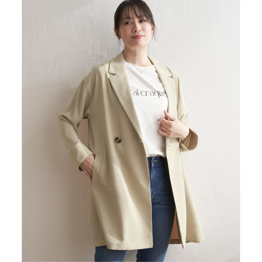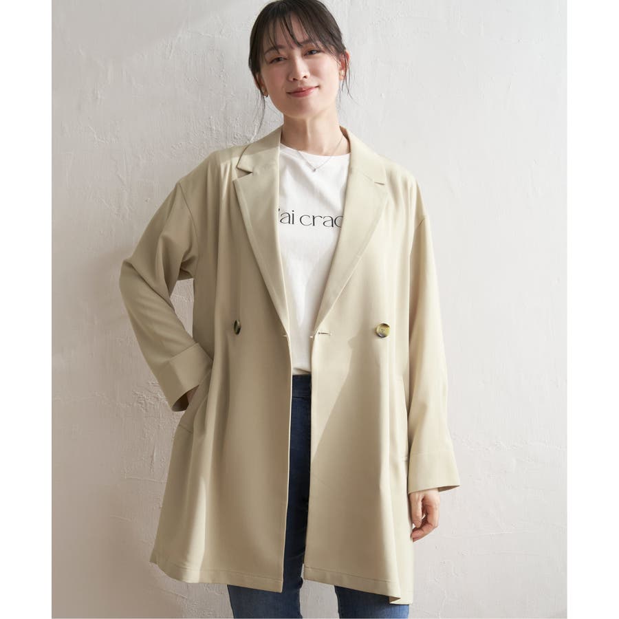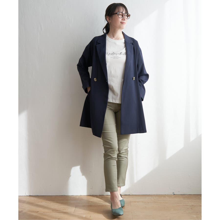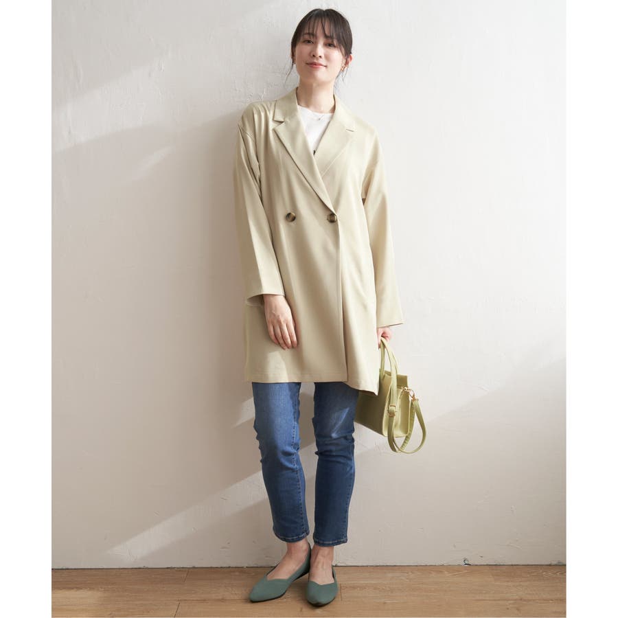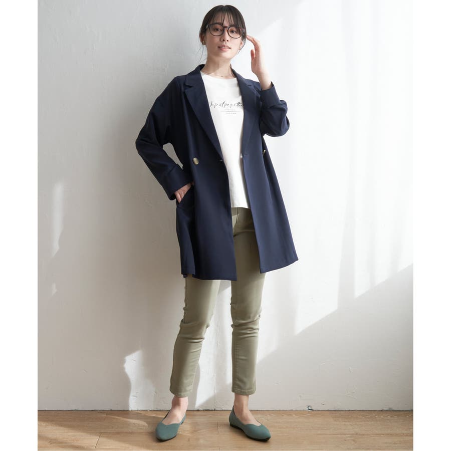 テーラードジャケットのデザインを採用し、ゆるくカジュアルでも使えるコート丈。