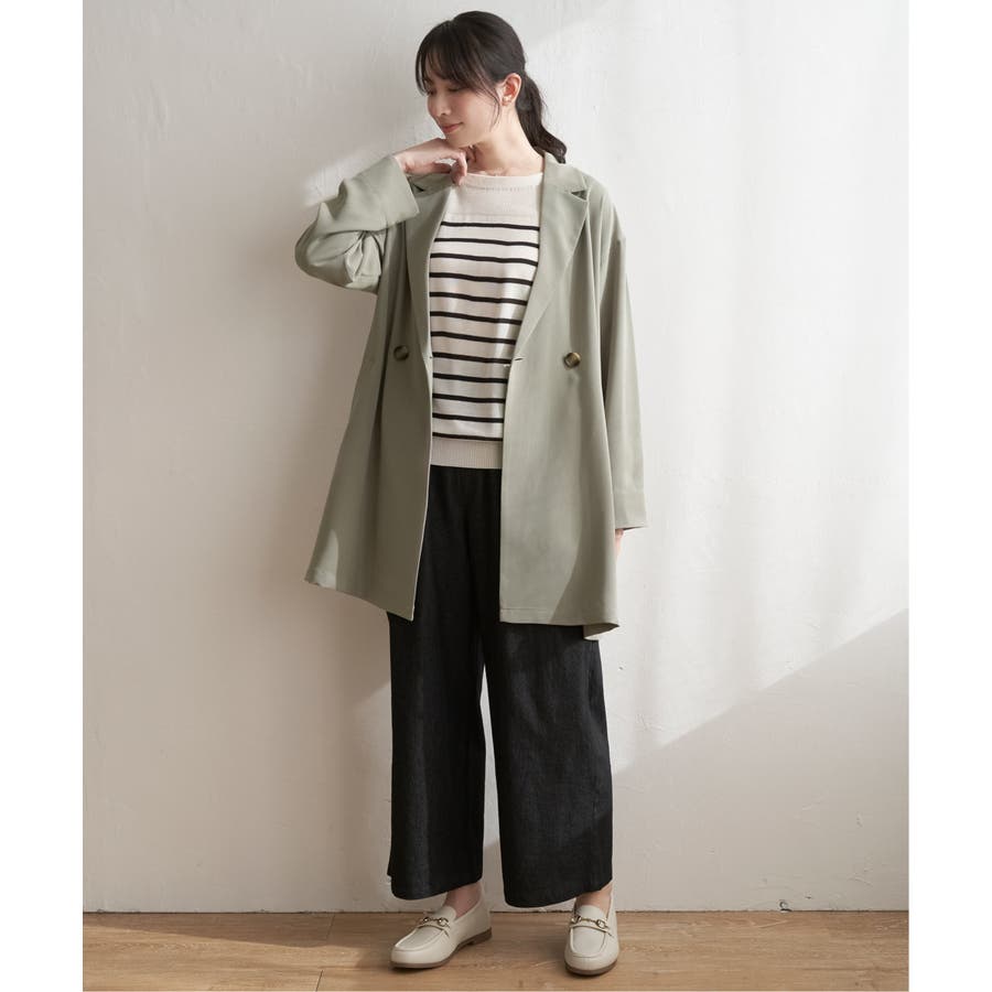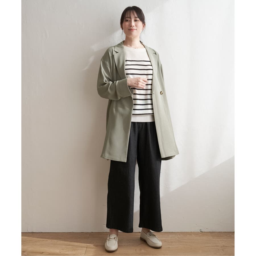テーラードジャケットのきちんと感と、ゆるっとしたシルエットのバランスがちょうど良いライトアウター。