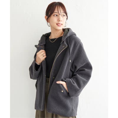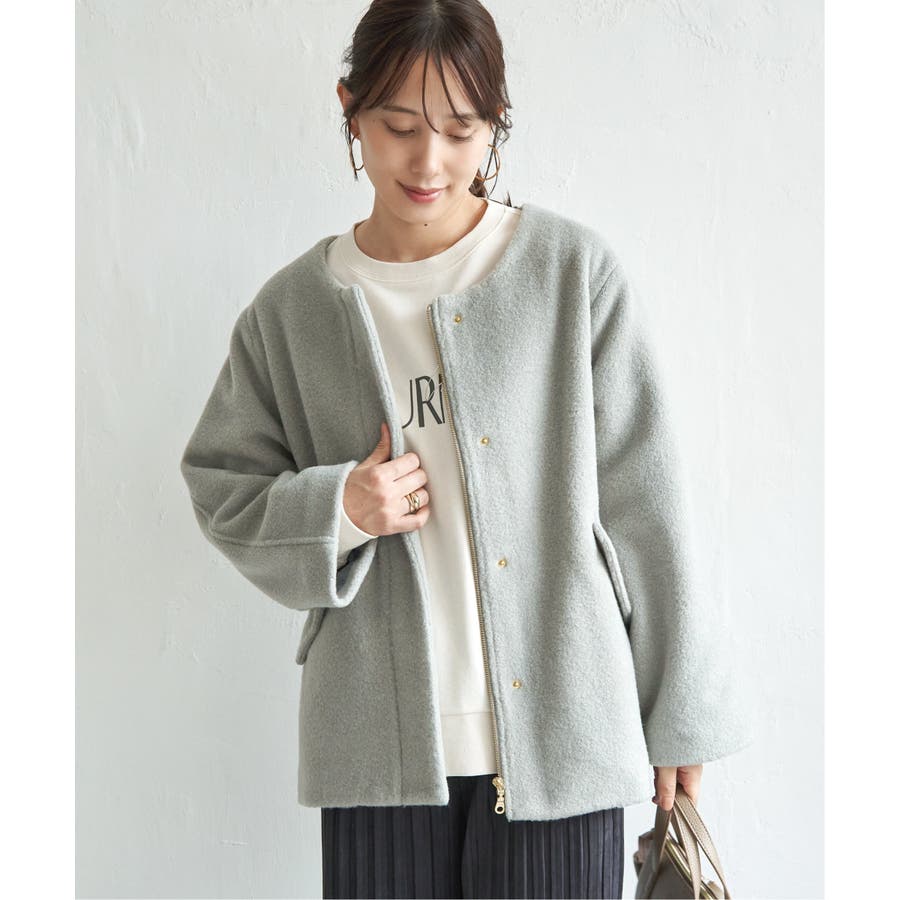 もこもことした表情が魅力のブークレー素材を使用したミドル丈の2WAYコート。