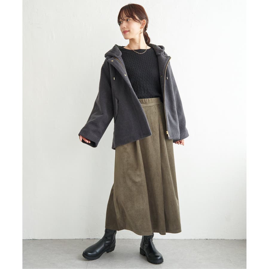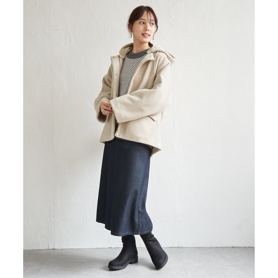・ミドル丈のコートで軽い印象。腰まわりはカバーできあたたか