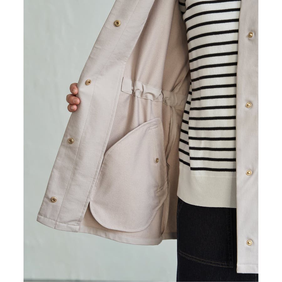 撥水加工に加え、花粉が付きにくく落としやすい花粉リリース加工を施したアウター。