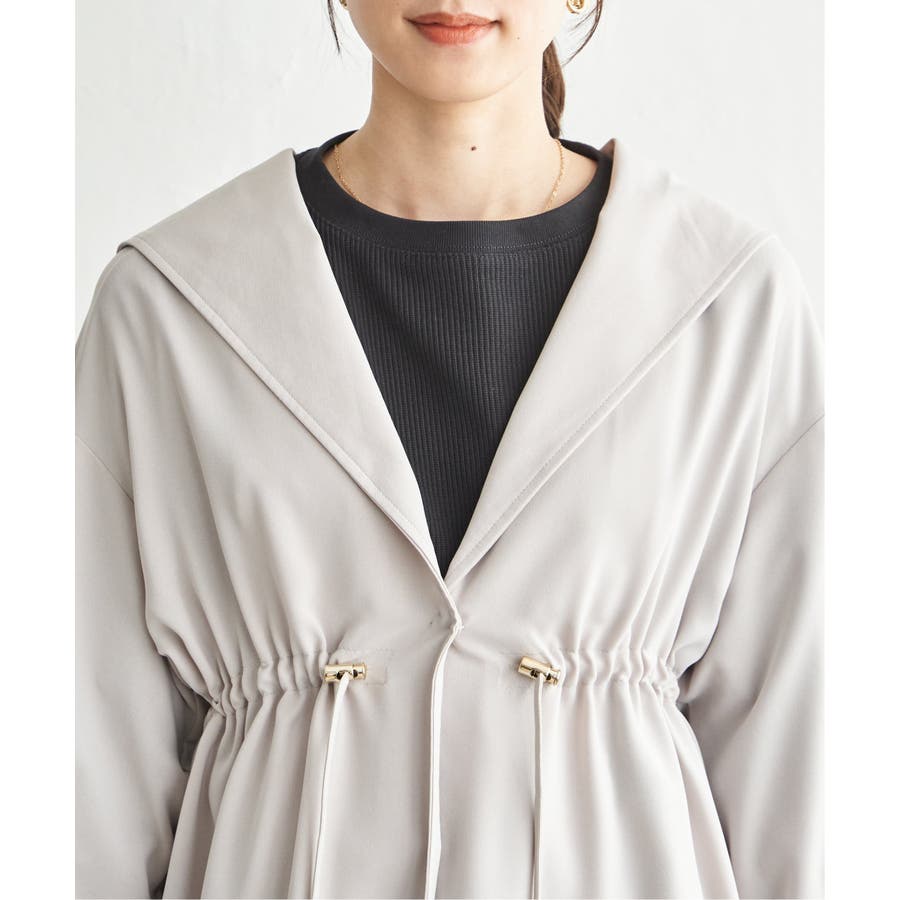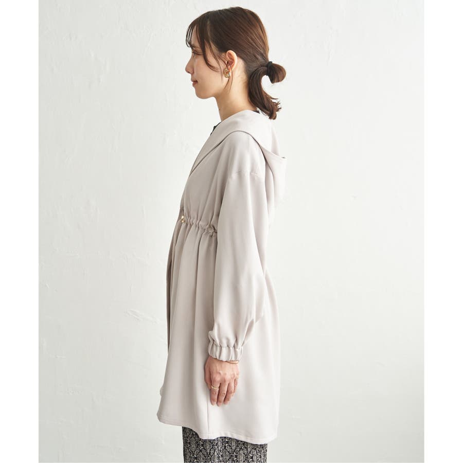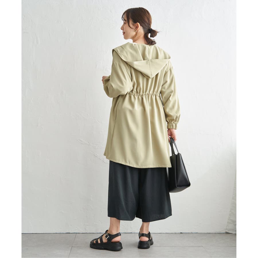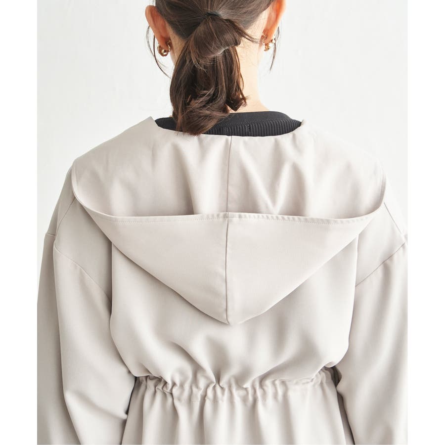 フード付きデザインがほどよいカジュアル感を添え、日常のスタイリングに取り入れやすい仕上がりです。