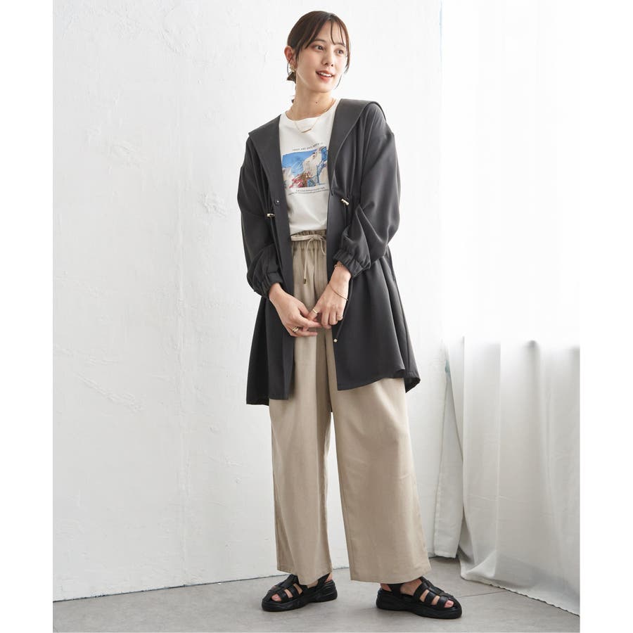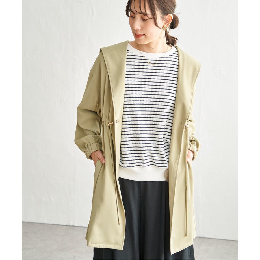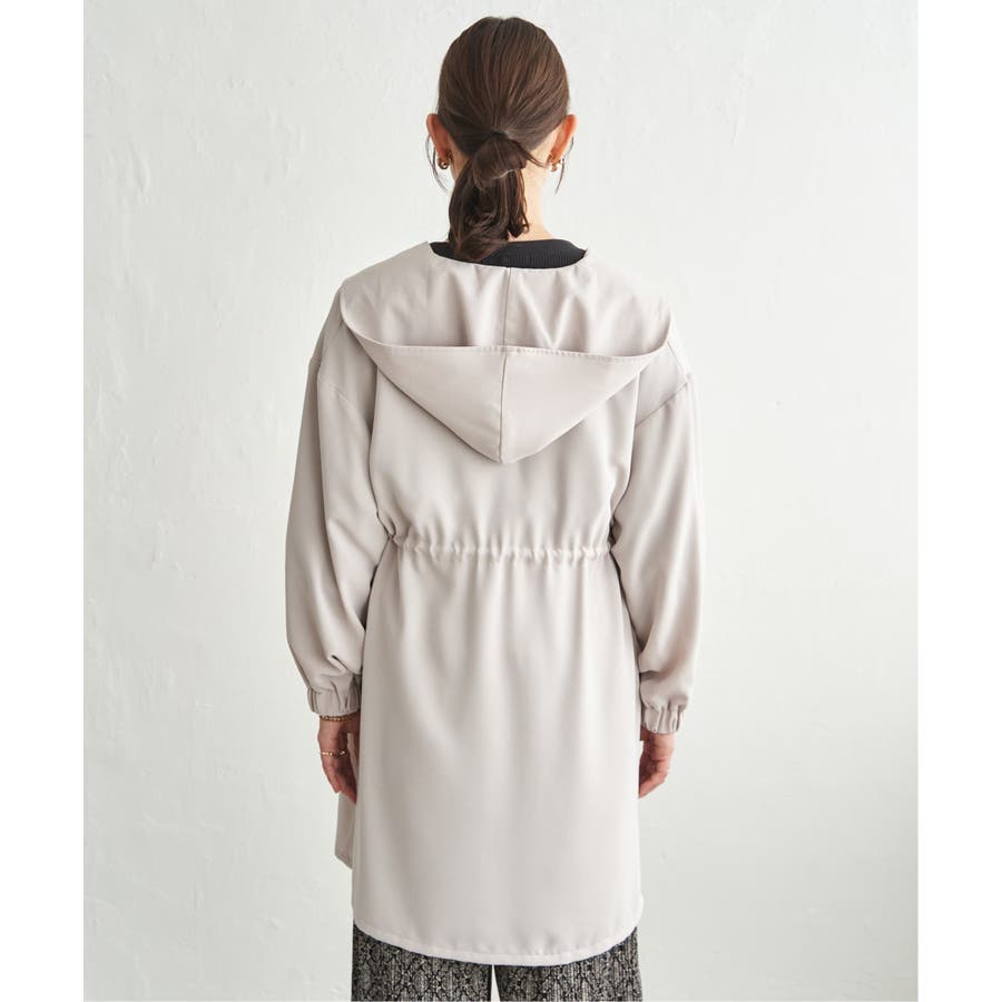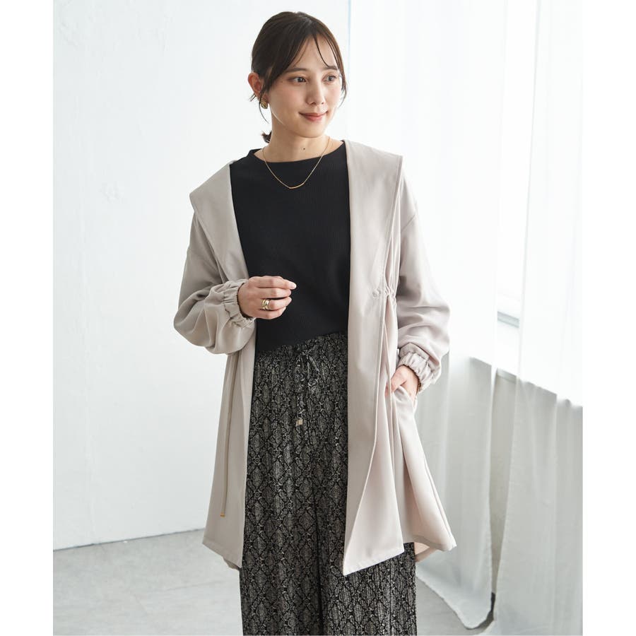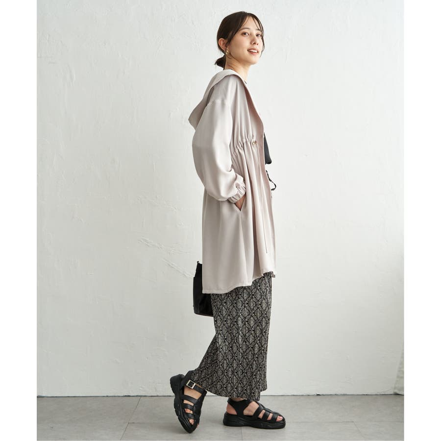 フード付きデザインがほどよいカジュアル感を添え、日常のスタイリングに取り入れやすい仕上がりです。