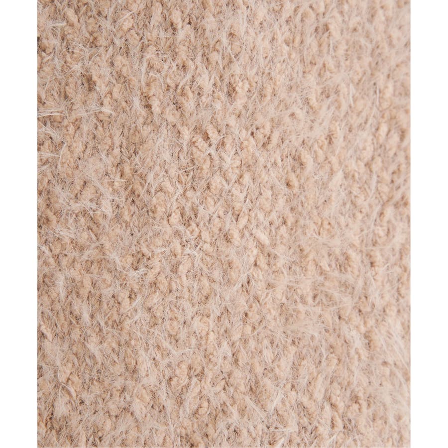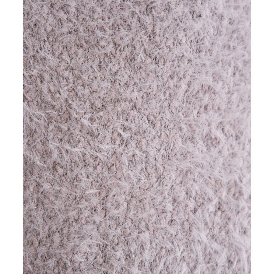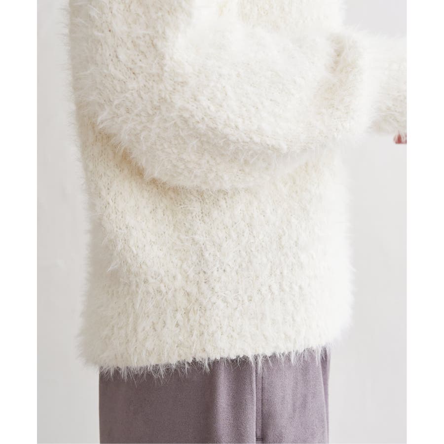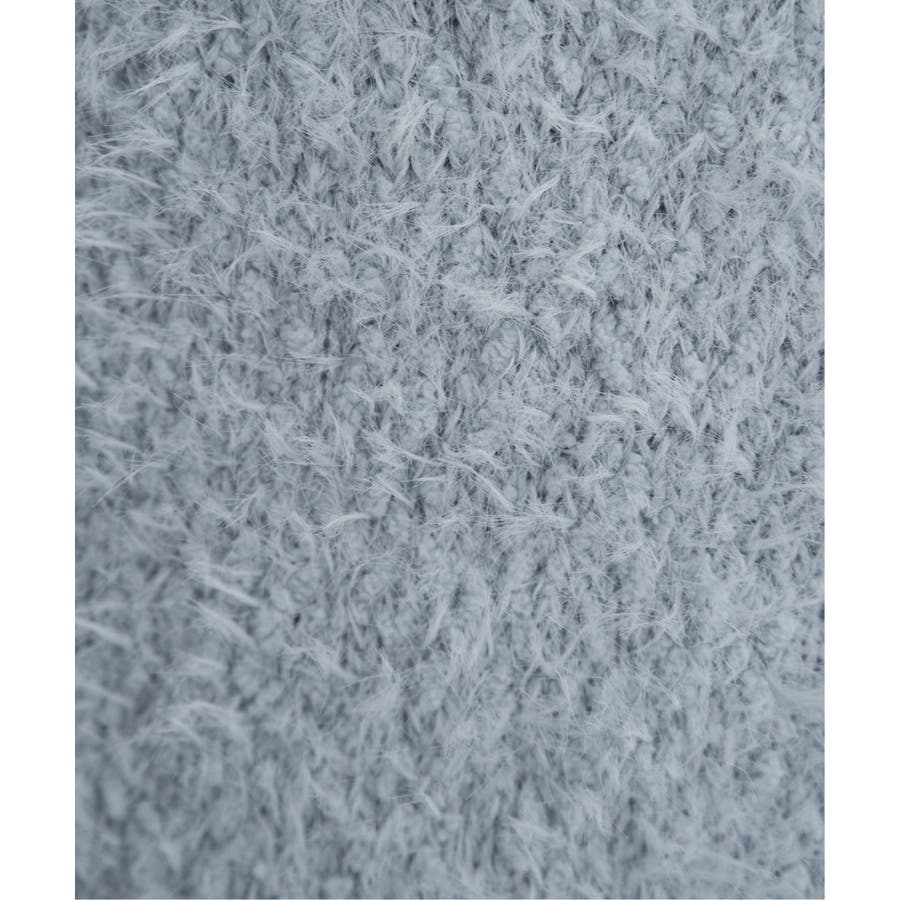 ぽこぽこしたポップコーン糸と、毛足の長いフェザーヤーンをMIXした、立体感のある風合いが自慢のニット。