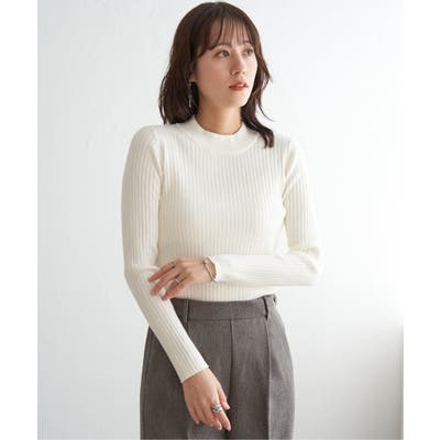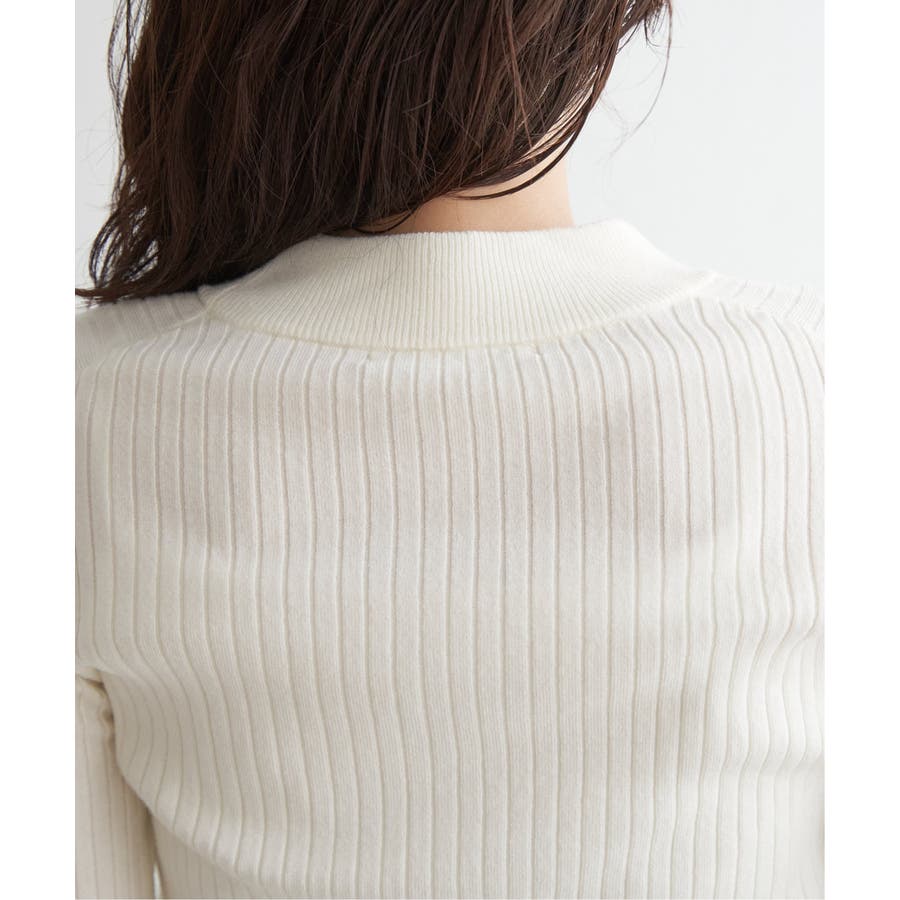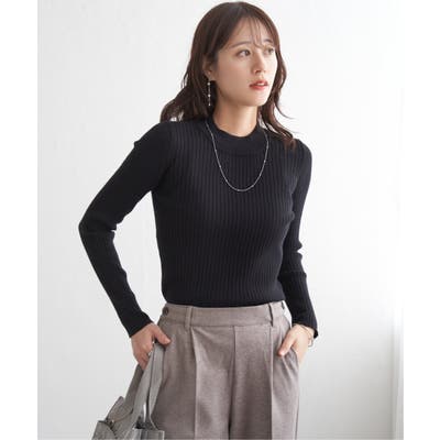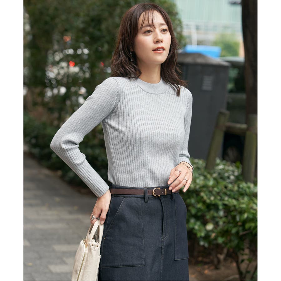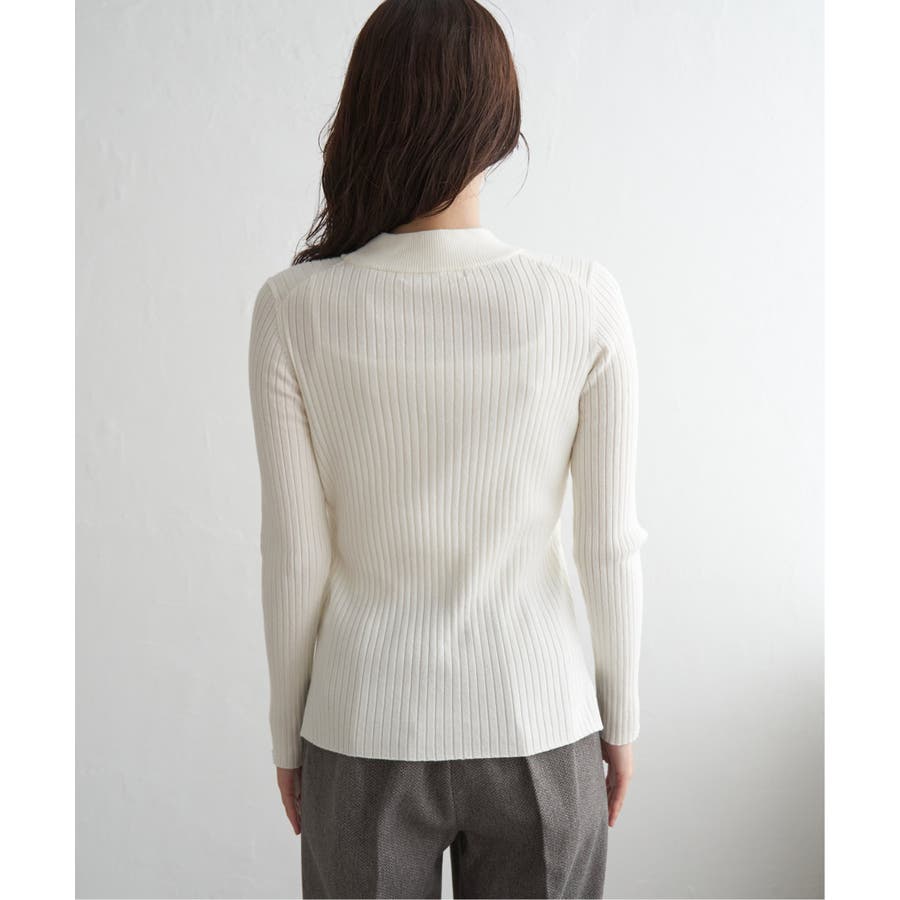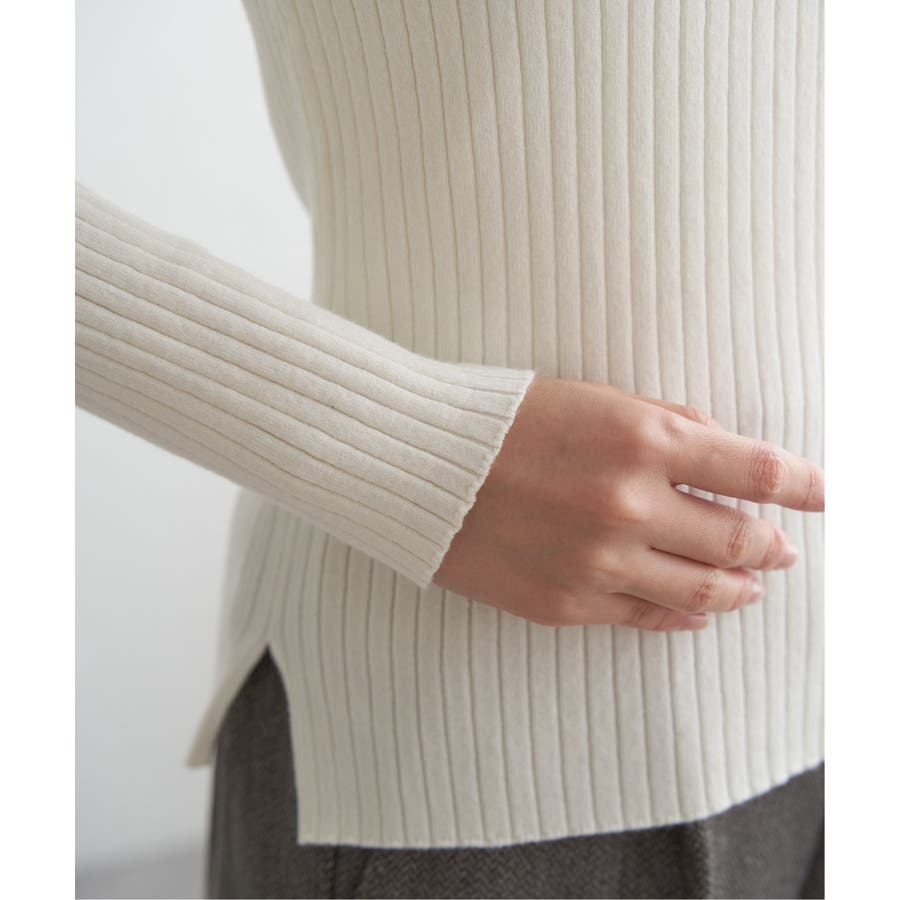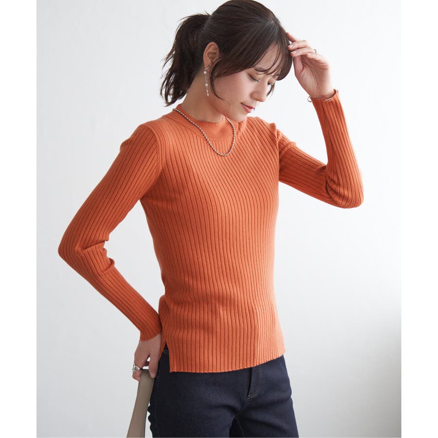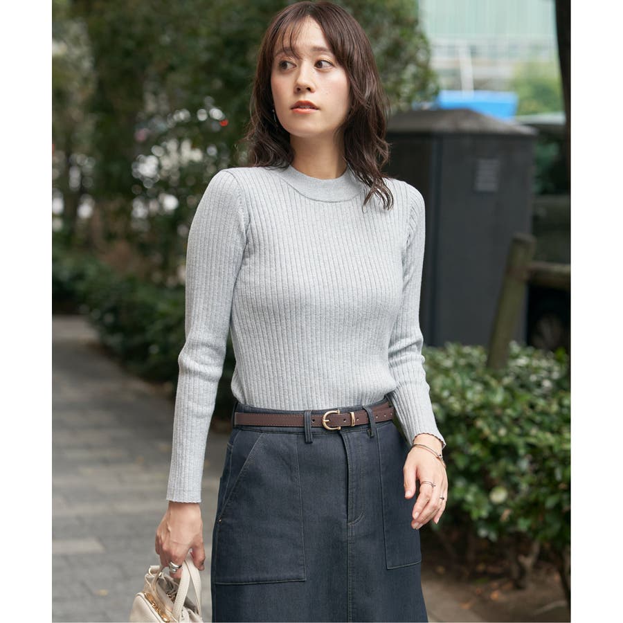首元をあたたかく包むモックネック襟、インナーに適したコンパクトなサイズ感のリブニットです。